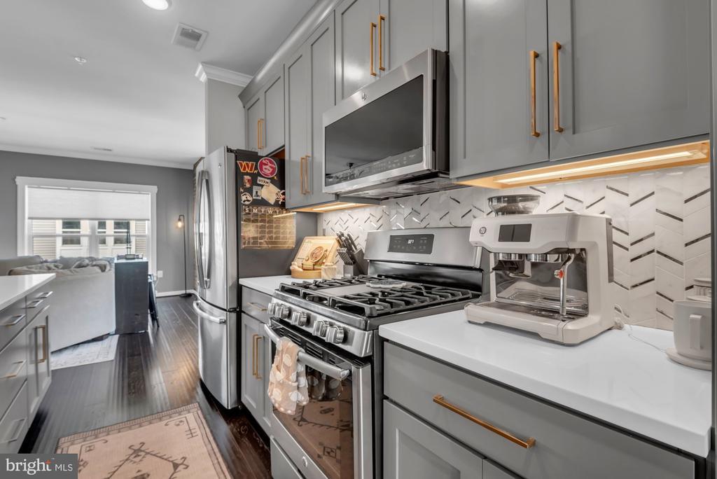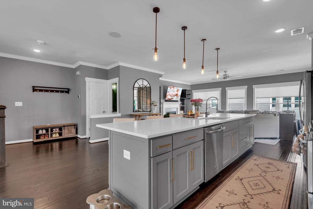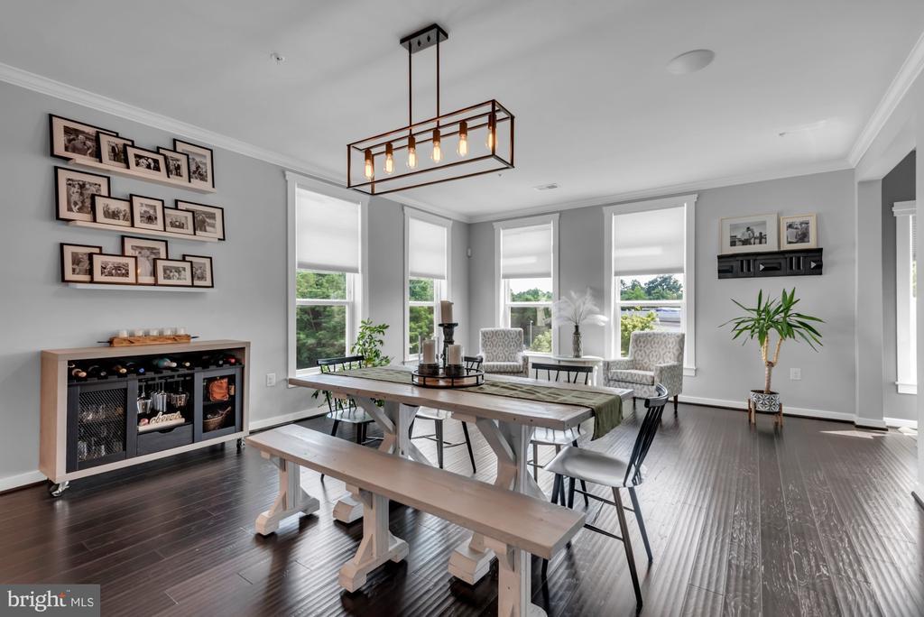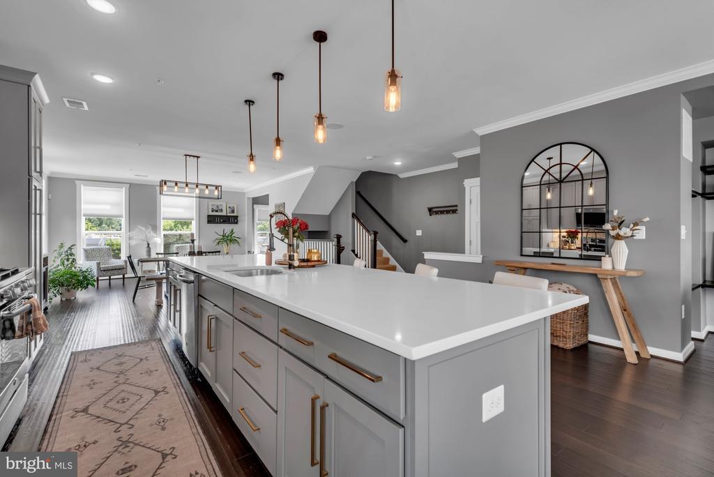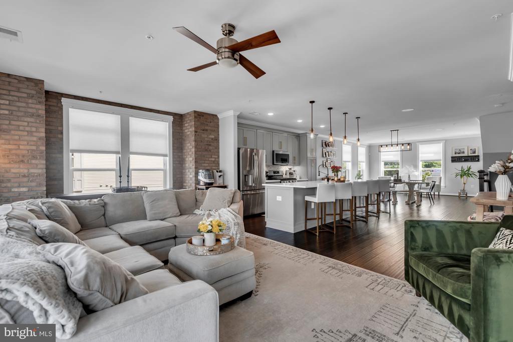 PRiCE IMPROVEMENT! COSMOPOLITAN ANNAPOLIS TOWNHOME BOASTING SKYLINE ROOFTOP DECK! ADMIRALS SQUARE DUAL ASPECT CORNER UNIT offering 2 levels of living with upscale detailing and finishes! 9-Foot ceilings, terrace-like walls of windows, a turnkey urban neutral palette, brick accent walls, and upgraded flooring to enhance any décor. The entry staircase will take you into an open concept Dining area and chef’s choice restaurant-inspired dining bar Kitchen showcasing sleek quartz & stainless steel surfaces. Adjoining the kitchen is a glass-encased living room with a gas fireplace to further enhance ambiance. Upstairs you’ll find a Generous Primary Bedroom Suite with 2-sided walk-in closet w/organizers & luxe spa Bath! The upper level also has two Additional bright ‘n’ airy Bedrooms (flexible use spaces) and a Full Bath with a double vanity. Stairs ascend to a PANORAMIC ROOFTOP VIEW DECK for alfresco dining and entertaining beneath sun & stars! Extended, rear access parking pad & 1-car garage. Minutes to Downtown City Dock harbor, the USNA, Westfield/Towne Centre Malls, eclectic restaurants & crab cake eateries, marinas/boating, and commuter RTs 50/97/2. NYC SOPHISTICATION IN TANDEM WITH RELAXED BAY LIVING!