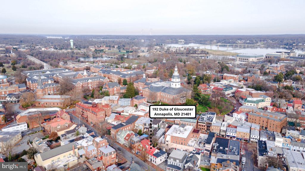 Price Improvement! 100k Reduction. Welcome to the Thomas Hyde House – a rare opportunity to own a piece of Annapolis history in the heart of downtown. Built in 1769, this impeccably restored Federal- style property blends 18th-century charm with modern luxury. Perfectly situated on sought- after Duke of Gloucester Street, this vibrant and colorful home offers stunning views of the Maryland State House and extremely rare off-street parking for 6+ vehicles. Originally configured as office space, the residence has been reimagined into six spacious bedrooms and four full baths across two beautifully remodeled levels, with the potential for third floor updating plus a large basement with ample storage and updating space. The first floor offers true single level living with a primary suite and second bedroom, while the second level features four additional bedrooms and a convenient laundry area. No detail has been overlooked – from new appliances, countertops, and cabinetry to frameless glass showers, ceramics, extensive trim and molding, recessed lighting, fresh interior and exterior paint, new plumbing/electric and sprinkler system, updated flooring, freshly painted standing seam roof/front dormers and more. The result is a turnkey home where historic character meets modern sophistication & luxury. The property is offered with negotiable furnishings, electronics and art, The Thomas Hyde House is as versatile as it is fun and captivating. Just steps from downtown Annapolis shopping, dining, yacht clubs, local marinas & major commuter routes. Whether as a primary residence, investment property, or distinctive downtown retreat, this is an Annapolis treasure ready for its next chapter.