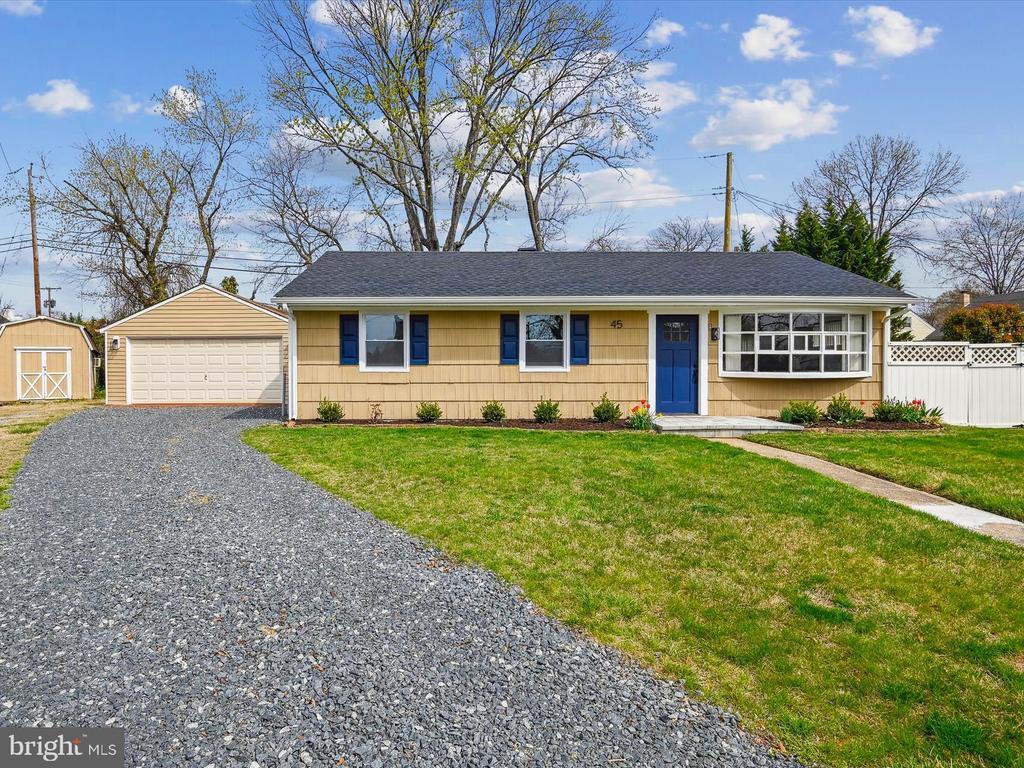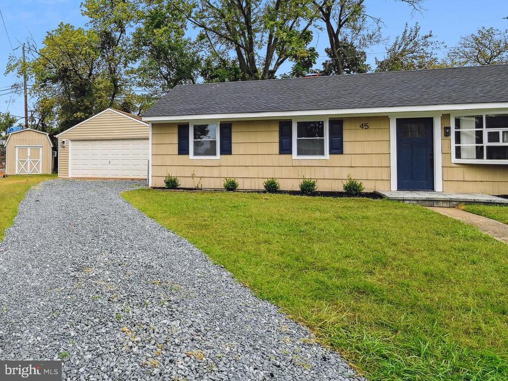 One-Level Living with 2 Car garage. NEW ROOF 2025. Upgraded Kitchen and Bathrooms. 42-inch soft-close cabinets. Quartz countertop and backsplash. New stainless-steel appliances, including a range hood, gas stove, dishwasher, and microwave drawer. Breakfast bar and table space. Central Air Conditioning. Upgraded electric panels. Luxury plank flooring. Laundry room with washer & dryer. Rear addition with 2nd family room. Garage with electric door openers and A/C window unit. Shed/Barn measuring 10x20 with electric and A/C window unit. Home Warranty included.