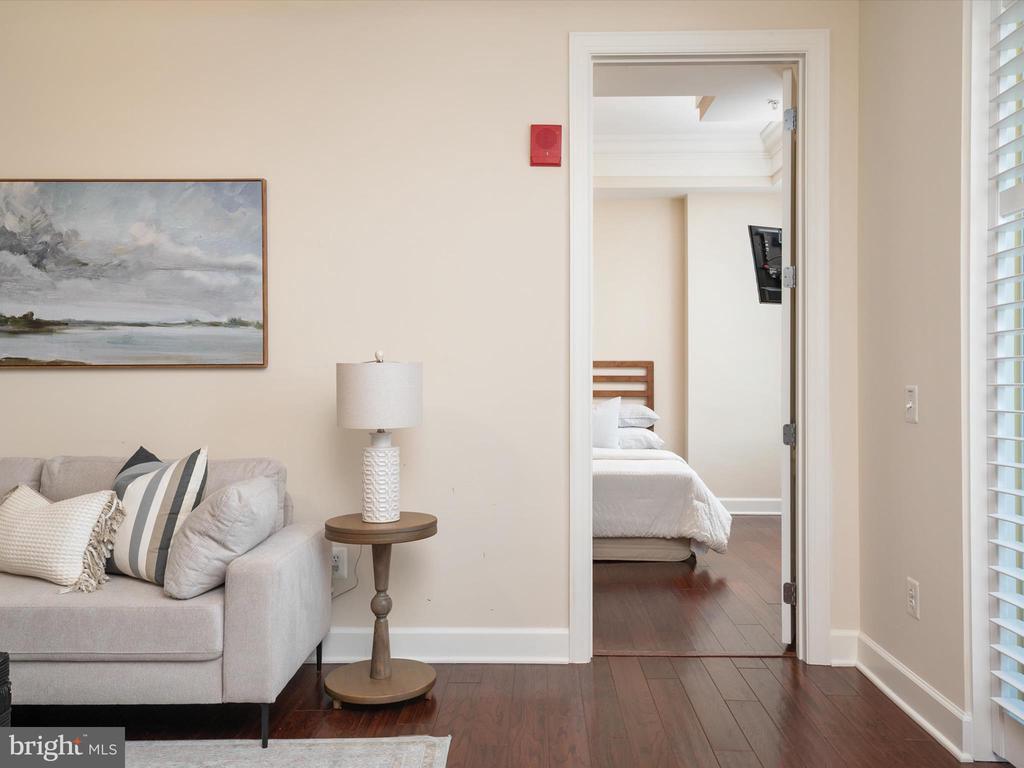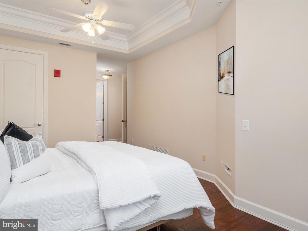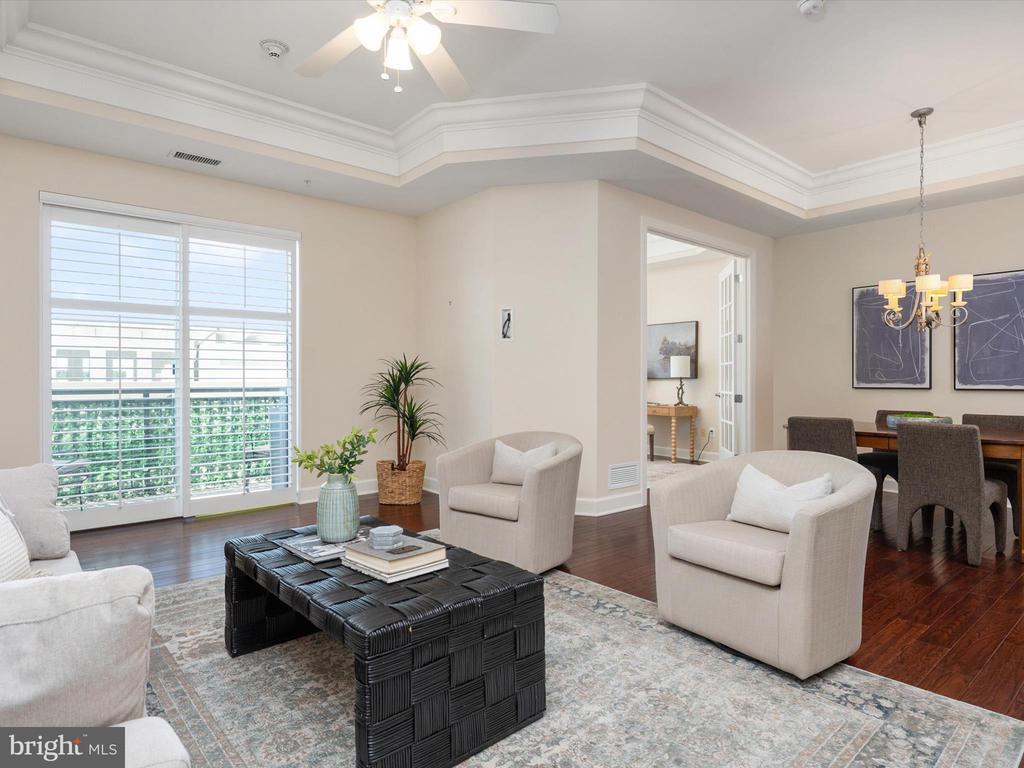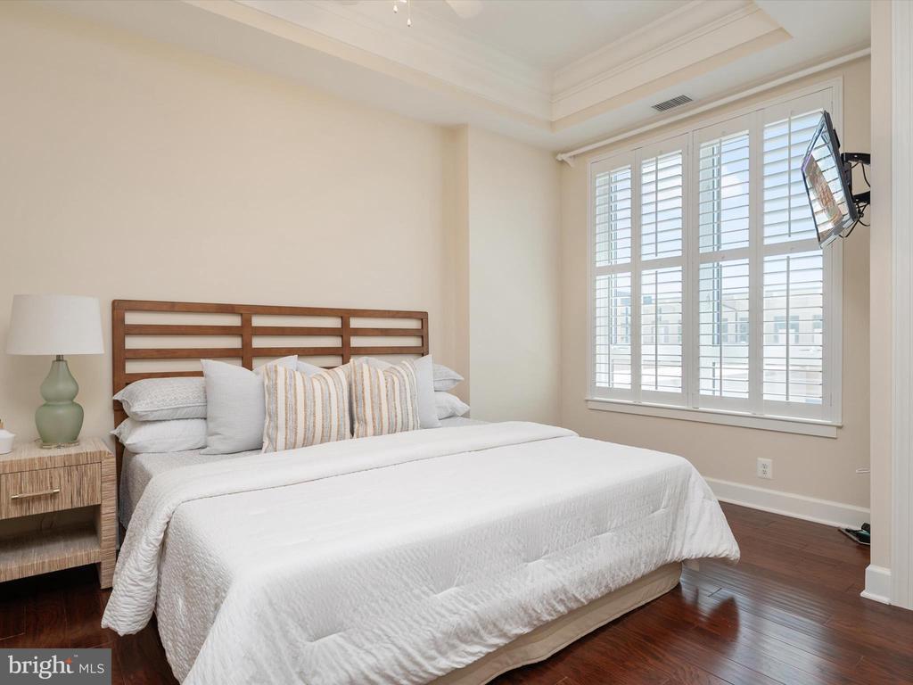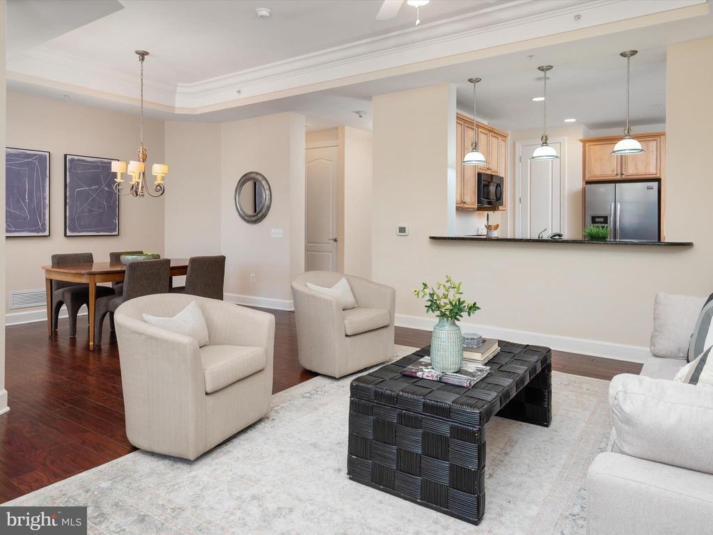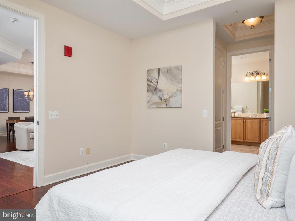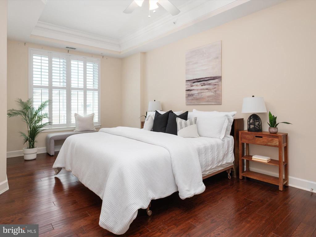 This impeccably maintained 2-bedroom, 2.5-bath Everest floor plan offers high-end living, privacy, and a prime location. Enjoy a professionally managed building with secure entry, welcoming staff, and exceptional amenities. Boasting rich hardwood floors and 10' recessed ceilings finished with fine crown trim, the home is filled with natural light from oversized windows with plantation shutters. The open-concept living and dining areas flow into a gourmet kitchen with granite countertops, ample storage, and custom "pull-out" cabinetry. Two spacious bedroom suites, each with walk-in California Closets and spa-like baths with dual vanities, are positioned for privacy. A well-placed half bath is convenient for guests and enhances everyday functionality. Additional features include an in-unit laundry room, a separate office, and a private balcony for sunset views. Amenities include a rooftop pool, hot tub, grill area, and outdoor dining with panoramic views of Annapolis — one of the rarest offerings in the area. Two assigned garage spaces (one conveniently close to the elevator) provide unmatched convenience. Located on the quiet side of the building, you’re still moments from Whole Foods, Target, Lifetime Fitness, Rise Up Coffee, dining, shopping, and seasonal events. Easy access to Routes 50, 97, and 2 puts downtown Annapolis, the Naval Academy, marinas, and medical facilities just minutes away. Unit 301 offers the serene, convenient, and luxurious lifestyle you’ve been searching for.