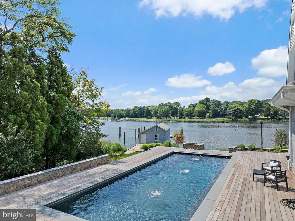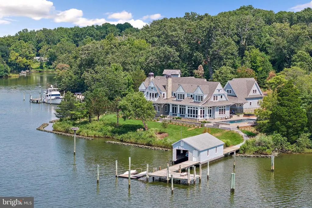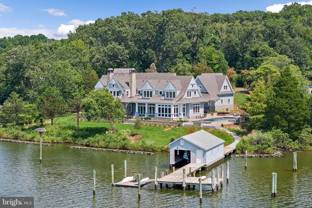 Incredible value for this newly completed waterfront estate — now offered at $10,250,000. This brand-new, never-lived-in residence offers an exceptional opportunity to own a luxury home on 1.04 acres along the protected waters of Aberdeen Creek, just ten minutes from Annapolis City Dock. Designed by Hammond Wilson Architects and built by award-winning Pyramid Builders, the home was created to embrace its remarkable setting and showcase the best of waterfront living in Annapolis. With nearly 380 feet of shoreline, the property features a 125-foot private pier with 6' MLW at mid-dock and 10' at the end, three boat slips with water, electric, and lighting, plus a floating dock and a rare boathouse with traveler hoist and lift—amenities seldom found today. The approach is along a private road adjacent to Great Frogs Winery, offering immediate privacy and exclusivity. The grounds, designed by Campion Hruby Landscape Architects, blend natural beauty with refined design, including stonework, and thoughtful plantings that frame views of the creek. Outdoor living spaces are designed for effortless enjoyment of the water and include a heated saltwater pool with Ipe decking, fountains, and counter-current swim jets. A bluestone patio with gas fire pit, hot tub, and screened porch with retractable NanaWall doors extends the living space outdoors, while a full outdoor kitchen makes entertaining simple and sophisticated. Inside, interiors by Erin Page Pitts reflect light, warmth, and balance. English white oak floors, expansive windows, and an open layout ensure the water remains a focal point. The chef’s kitchen features Wolf appliances, custom cabinetry, dual islands, and a catering pantry, complemented by a 1,200-bottle wine cellar. The upper level includes four spacious ensuite bedrooms, each with a private bath and custom finishes. The primary suite features expansive water views, a private balcony and fireplace, a spa-inspired bath, and ample closet space. Flexible room space throughout the home accommodates offices, studios, or fitness areas. Modern technology and quality are at the core of the design, including Ketra lighting, Sonos surround sound, custom AV, geothermal heating and cooling, NuCedar siding, and a 50-year architectural roof. Garage space for at least five vehicles includes a two-car attached garage with climate-controlled storage and a detached three-car garage with half bath and flexible space. This never-occupied estate represents a rare opportunity to own a thoughtfully designed and impeccably built waterfront home in Annapolis—where architecture, craftsmanship, and natural beauty converge. Please do not drive down the private road without an appointment.