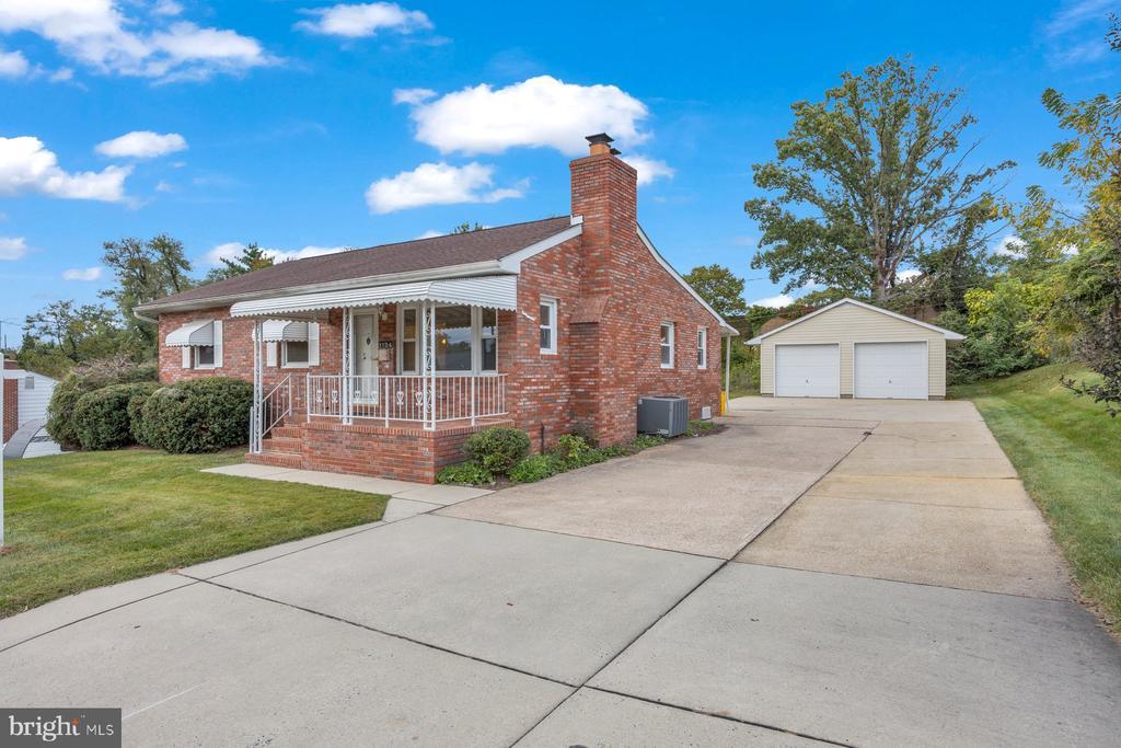 Beautifully maintained 4BR/2BA expanded brick Rancher with a detached two-car garage located on a spacious lot in the desirable neighborhood of Arundel Hills. Make your way to the covered front porch as you pass by a lush green lawn and landscaping, and open the door into your forever home. The main floor living space offers an open floor plan with tons of natural light, and a soft color palette with crown, chair and picture frame moldings. The large living room features a fireplace with a wood mantel and is open to the spacious dining room. The kitchen offers tons of cabinet and counter space, a double stainless sink, and room for a cozy breakfast table. Down the hall are two sizable secondary bedrooms, a primary sized bedroom, an additional oversized primary bedroom with three closets, and a full bath. The lower level is finished, boasting a large family room with a custom built dry bar, a brick hearth ready for a pellet or wood burning stove, storage, and laundry. From the main floor step outside to a covered patio in the beautifully manicured yard and access to the two car garage. This home is ideal for any new homeowner and features hardwood flooring under carpeting with so much potential! The HVAC unit was replaced in 2018 and roof replaced in 2019. Imagine all this and located in close proximity to shopping, restaurants, and commuter routes.