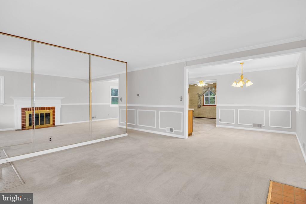 Bar, Tub Shower, Carpet, Chair Railing, Crown Molding, Wood Floors