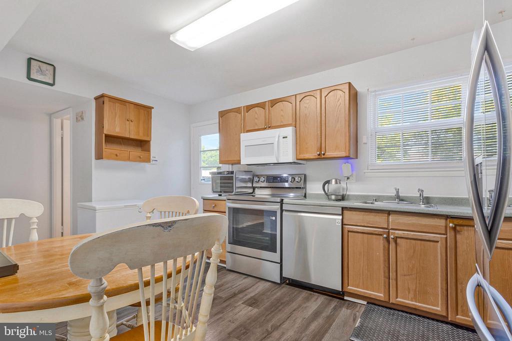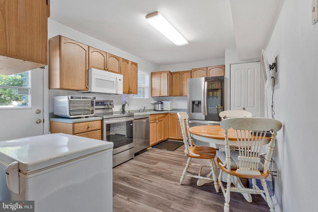 Welcome to this charming three-level Colonial-style condo in the sought-after Elvaton Towne community. The main level offers a bright living room and a spacious eat-in kitchen with stainless steel appliances, new LVP flooring, and a convenient half bath. Upstairs, you’ll find three comfortable bedrooms with custom closet systems and a full hall bath. The lower level adds even more living space with a cozy family room featuring rustic wood beams, a workshop area, and a walkout to the fenced back patio, perfect for outdoor gatherings. Enjoy community amenities including a swimming pool, basketball courts, playground, and tot lots. With easy access to major commuter routes, shopping, and dining, this home combines comfort and convenience in one inviting package.