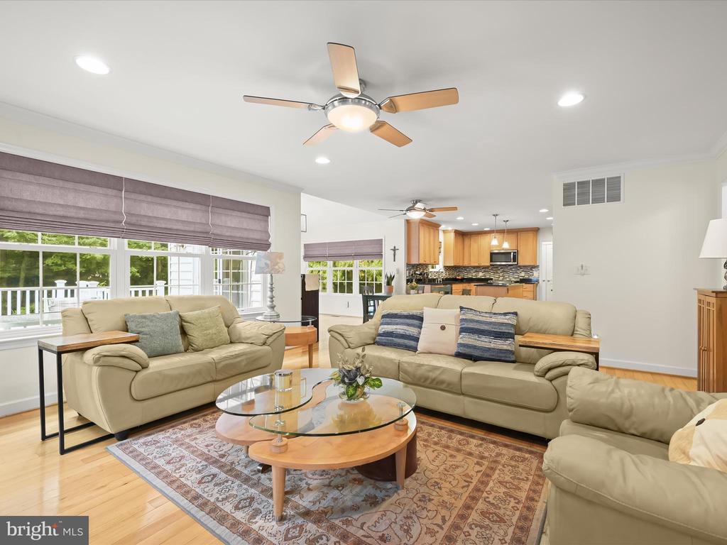 Nestled in the heart of Severna Park, this classic Colonial, lovingly maintained by its original owners, offers a seamless blend of traditional charm and modern comfort. The home backs to a serene conservation area, providing a peaceful backdrop for daily life, while the covered front porch and mature landscaping create a welcoming first impression. Step inside to discover gleaming hardwood floors that flow effortlessly throughout the main level. To the left of the front door, the formal dining room sets the stage for elegant gatherings, while further in, the family room impresses with crown molding and a gas fireplace, creating a cozy yet sophisticated retreat. The family room opens directly to a thoughtfully designed kitchen, complete with 42-inch cabinetry, granite countertops, recently replaced stainless steel appliances, a stylish tile backsplash, plus a casual dining area for everyday meals. A sunroom at the rear of the home features a cathedral ceiling, sliding glass door, and walls of windows that frame serene views of the backyard, creating a light-filled space perfect for relaxation or entertaining. Step outside to the Trex deck with awning, completed in 2020, offering an ideal spot for outdoor dining and leisure. The main level also includes a convenient half bath and direct access to the garage. Upstairs, the primary bedroom is a true sanctuary, boasting a cathedral ceiling, an accent feature wall, a spacious walk-in closet, and an en-suite bath with a double sink vanity, tiled shower, and soaking tub. Three additional bedrooms, a full bath with a double sink vanity, and a laundry closet complete the upper level. The unfinished lower level features a rough-in for future expansion and provides versatile space for recreation, exercise, hobbies, or storage, with walkout stairs to the backyard. Recent updates include a water heater replaced in 2024. With no HOA, this home sits adjacent to an elementary school and is just moments from the B&A Trail, Kinder Farm Park, Routes 97, 95, and 100, and nearby shopping and dining options, making it an ideal location for both daily convenience and leisurely escapes. This Severna Park Colonial perfectly balances space, style, and setting, offering a home where cherished memories are ready to unfold.