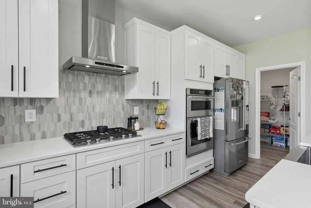 Price Reduced!! Welcome to this beautifully, nearly new (2022) Beazer home located in the charming Magnolia Creek neighborhood. Offering a flexible and thoughtfully designed floor plan, this home is filled with modern features and upscale finishes that combine comfort and style. The whole home showcases LVP flooring throughout, creating a cohesive and stylish foundation. The stunning contemporary kitchen is a true centerpiece, featuring custom oversized dual-toned cabinetry, sleek quartz countertops, a large quartz island with a breakfast bar, a custom tile backsplash, and high-end KitchenAid stainless steel appliances. The sunny dining room flows seamlessly into a spacious living room highlighted by a cozy gas fireplace—perfect for relaxing or entertaining guests. Just off the foyer, a private flex space with French doors offers the ideal setup for a home office, study, or additional lounge area. Upstairs, you'll find four generously sized bedrooms and two full bathrooms, along with a conveniently located laundry room including additional storage, making everyday chores a breeze. The primary suite is a luxurious retreat, a walk-in closet and a spa-like en-suite bath with a walk-in shower, soaking tub, and dual vanities. The fully finished lower level offers even more living space with high ceilings, an additional bedroom, a full bathroom, and plenty of storage. Enjoy your morning coffee or unwind in the evening on the Trex, rear deck, perfectly suited for entertaining family and friends. The home also includes a two-car garage with dedicated circuit for a car charger, a water softener system, Solar Panels (owned outright) and a tankless hot water heater that ensures endless hot water for you and your guests. Ideally located near major commuter routes, BWI Airport, the MARC Train, Fort Meade, and an array of shopping and recreation options, this home offers both convenience and community. Residents of Magnolia Creek also enjoy access to neighborhood amenities including a playground and picnic area. This exceptional home is move-in ready and waiting for you to make it your own.