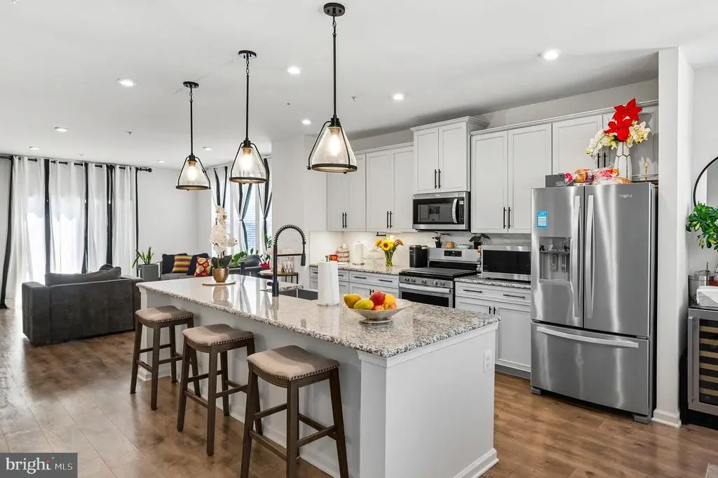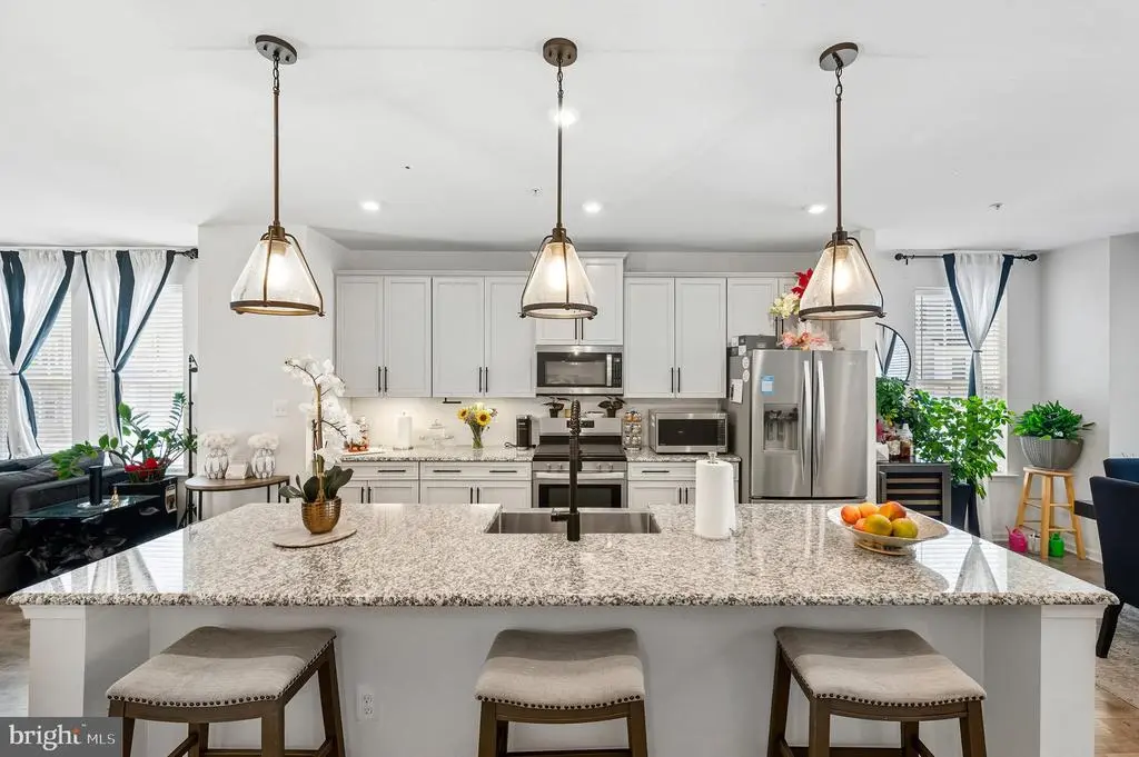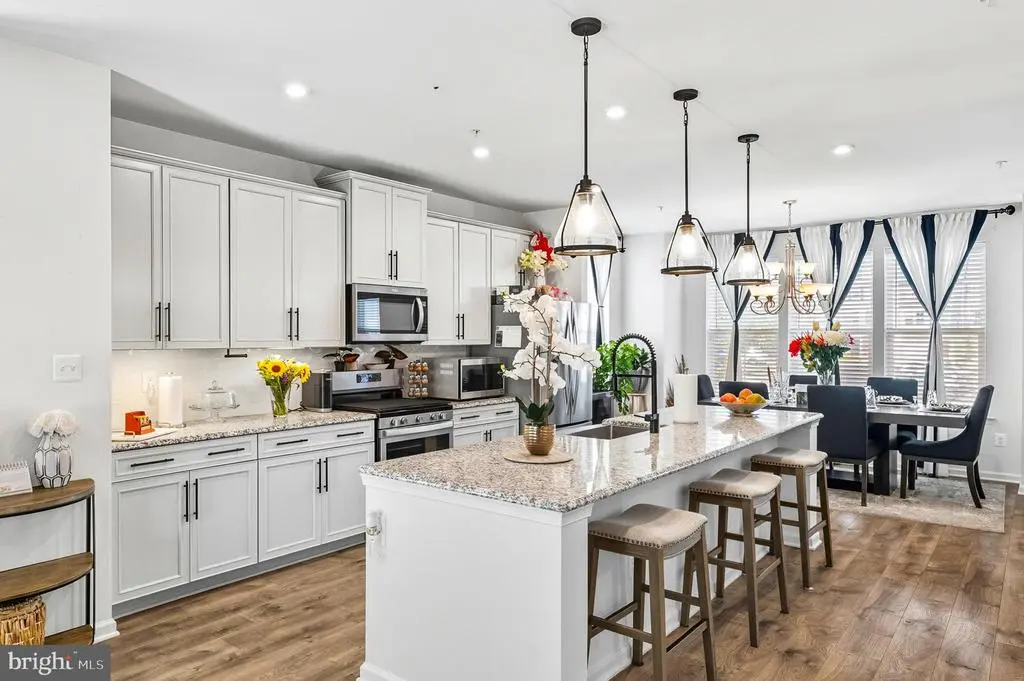 Exquisite loaded corner prime lot townhome boasting over $90k in carefully curated upgrades! Plus solar energy in the property and will saved you great $$$ per month. This luxurious abode features a spacious gourmet kitchen with a large island perfect for entertaining, custom built-in entertainment shelves, and a three-level bump-out providing additional square footage and versatile living spaces. Situated in a highly desirable community, this home serves as the ideal luxury starter home, showcasing modern finishes, oak stairs, custom paint, decks on each level, and a patio designed for comfortable living and seamless entertaining. The main level showcases hardwood floors, a bright and airy living area, and a premium kitchen package complete with granite countertops, a center island, stainless steel appliances, and ample cabinet space. The dining area effortlessly connects to a private deck, perfect for enjoying morning coffee or unwinding in the evenings. The entry level provides an additional living space with a spacious foyer, family room, hardwood floors, powder room, storage, and walkout access to a covered patio and fully fenced backyard - perfect for pets, gardening, or hosting summer gatherings. Upstairs, the primary suite offers a walk-in closet, an en-suite bath with a double vanity and tiled shower, and a deck for soaking in the sunrise and moonlight. Generously sized bedrooms with ample natural light and storage complete the upper level. Additional features include a finished one-car garage with abundant storage space. The basement fully finished with walkout, 1 full bath and 1 bedroom for guests or family visit. Secure this rare opportunity for a spacious, light-filled townhouse with premium amenities today. Conveniently located near commuter routes, shopping, and dining options.