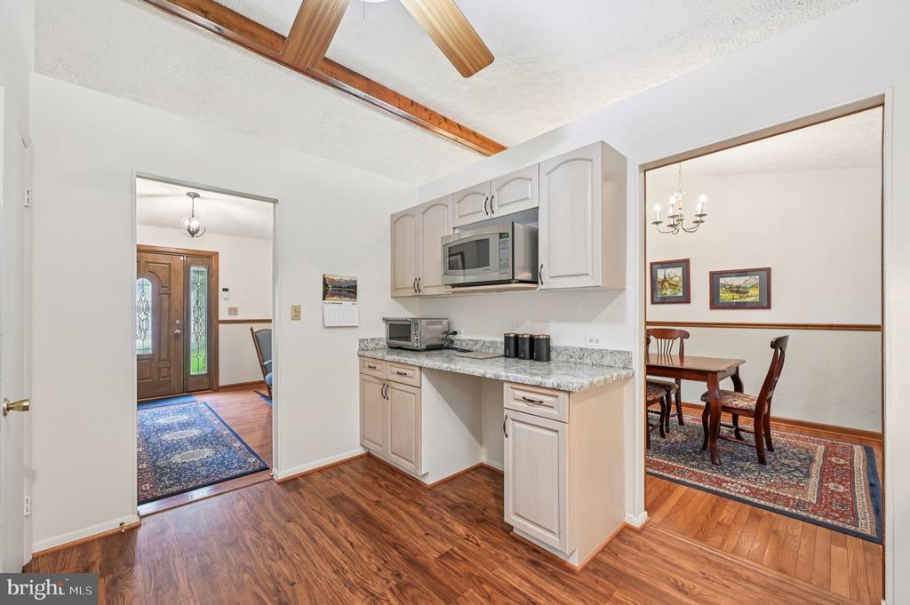 Bathroom - Walk-In Shower, CeilngFan(s), Pantry, Master Bath(s), Chair Railing, Exposed Beams, Recessed Lighting, Wood Floors, Stove - Pellet