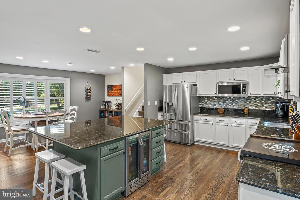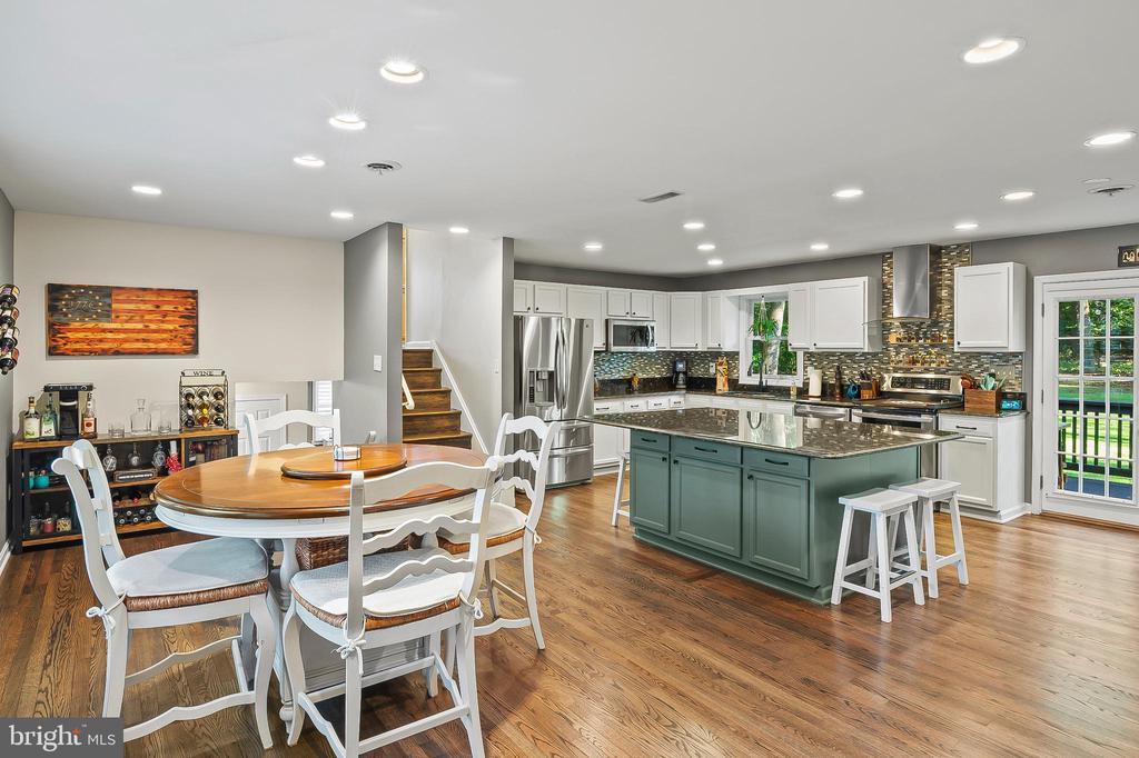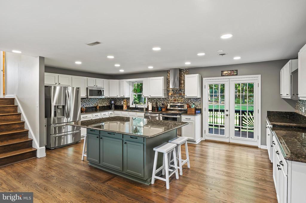 This well-cared-for split-level home sits on a peaceful 2-acre lot with woods along the back; offering both space and privacy. The welcoming foyer opens to the family room, featuring luxury vinyl plank flooring and access to the lower deck and backyard. The highlight of the home is the amazing kitchen that spans the entire main level; about 42' x 24'. It features white cabinetry; granite countertops; a beautiful glass tile backsplash; and stainless-steel appliances. There’s a spacious dining area plus a huge center island that can seat four, with storage on all sides and a recessed beverage refrigerator. The kitchen flooring is wood; and a door leads to the upper deck; perfect for morning coffee or outdoor dining. Upstairs are three bedrooms and two updated bathrooms. The lower level includes a comfortable rec room; laundry area; and plenty of storage space. Two decks—a smaller one off the kitchen and a larger one off the family room; offer great options for relaxing and enjoying the peaceful yard and tree line beyond. Lovingly maintained with many updates; this Gambrills home offers inviting spaces inside and out in a beautiful setting.