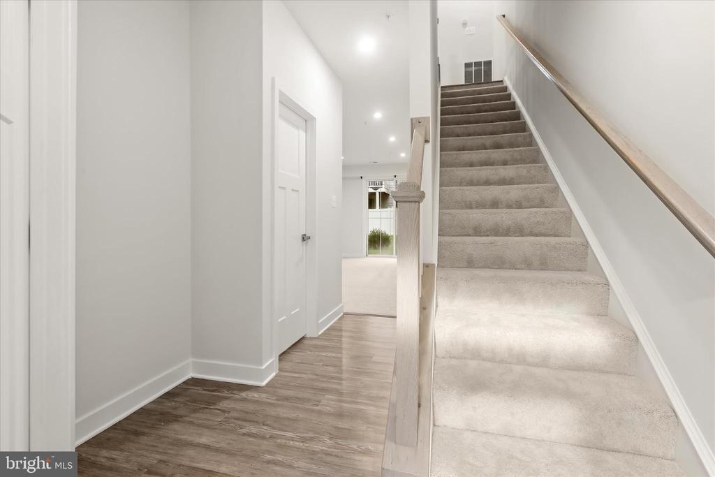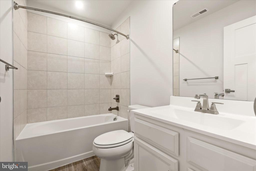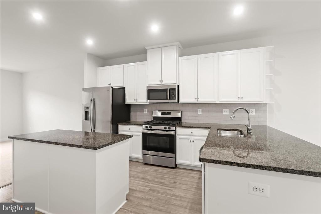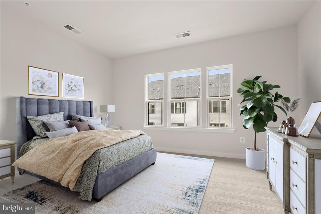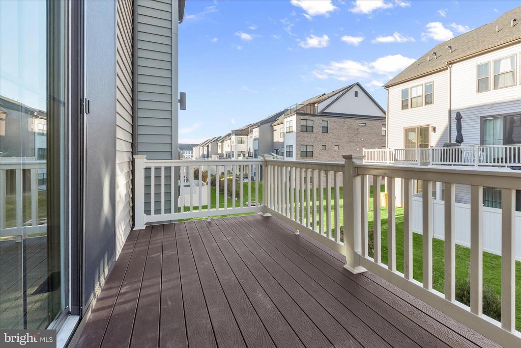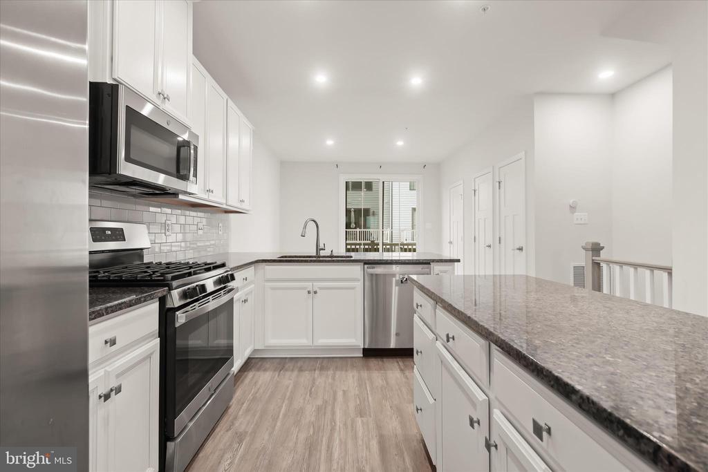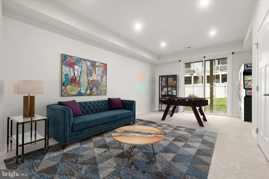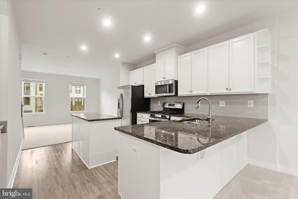This stylish and thoughtfully designed 3-level townhome in the water-privileged Tanyard Shores community offers clean lines, open spaces, and tasteful updates throughout. Fresh paint and new carpeting create a bright, move-in-ready interior. The main level features an open-concept layout with the kitchen positioned between the living and dining areas. The kitchen is equipped with white 42-inch cabinetry, an island, granite counters, a timeless subway tile backsplash, a pantry, and stainless steel appliances including a gas range. The dining area opens through a sliding glass door to the deck, while a spacious living area on the opposite side provides a comfortable gathering space. A convenient half bath completes the main level. Upstairs, the primary bedroom offers a walk-in closet and an en suite bath with a double sink vanity and tiled shower. A second bedroom with its own en suite bath and the laundry closet are also located on this level, providing convenience and privacy. The lower entry level includes a private third bedroom, a full bath, and a family room that opens to the backyard through a sliding glass door. A tankless water heater provides efficient, on-demand hot water for added peace of mind. Residents enjoy two reserved parking spaces with additional visitor parking available at the end of the street. Tanyard Shores provides a true resort-style lifestyle, featuring a waterfront park with beach access, kayaking and dock facilities, a private marina, and miles of nature trails. The clubhouse offers a fitness center, yoga studio, indoor and outdoor dining areas, and social spaces, while outdoor amenities include a pool, dog park, bike pump track, and expansive green spaces for recreation. This home combines modern living with an unparalleled community lifestyle. Please note: photos depicting furniture have utilized virtual staging.