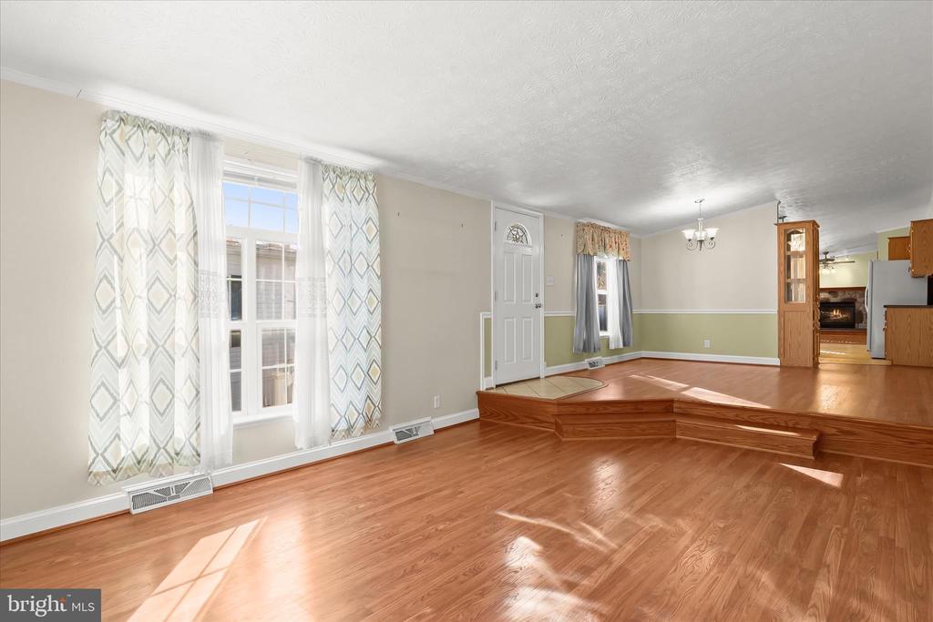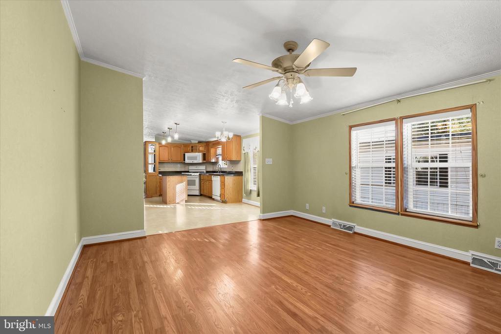 Welcome to this charming three bedroom, two bathroom home in Severn Mobile Home Park. Tall vaulted ceilings, abundant natural light, and elegant crown molding throughout make this move-in ready one-level home a true find. Step inside to an inviting front living room, while the eat-in kitchen features an island and dining area. The family room offers a cozy gas fireplace with a stone surround, and the adjacent laundry room provides access outside to the back deck overlooking woods. The primary bedroom has two closets and a private bathroom with a soaking tub and separate walk-in shower. Two additional bedrooms, one of which has a walk-in closet, and a second full bathroom with a walk-in shower and skylight complete the interior. Outside, enjoy the rear deck or the side porch, while a shed provides extra storage. Additional highlights include a brand new water heater and a roof with a Tamko warranty. Other recent improvements in the last few years include kitchen appliances, hallway bathroom remodel, and heat-wrapped pipes. Conveniently located off Telegraph Road with quick access to routes 100, 97, and 32, along with BWI, Ft. Meade and more. Some images have been virtually staged.
