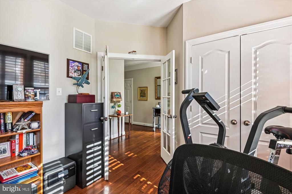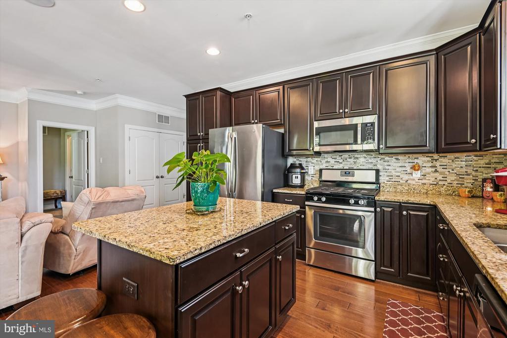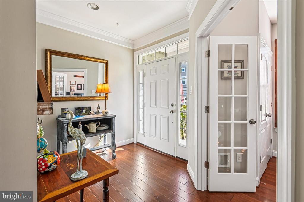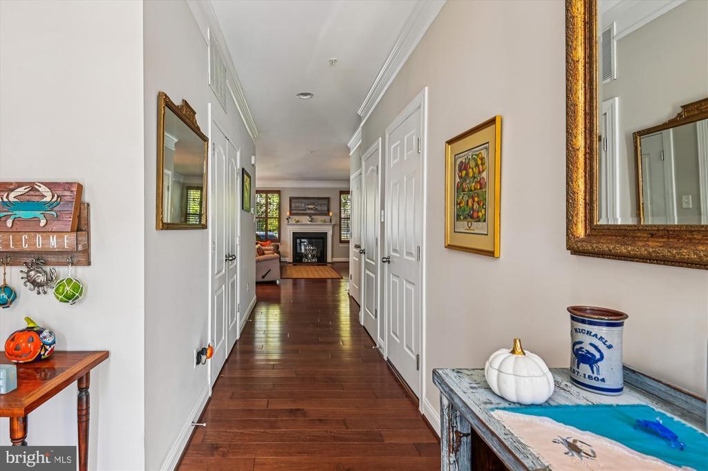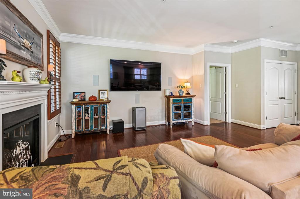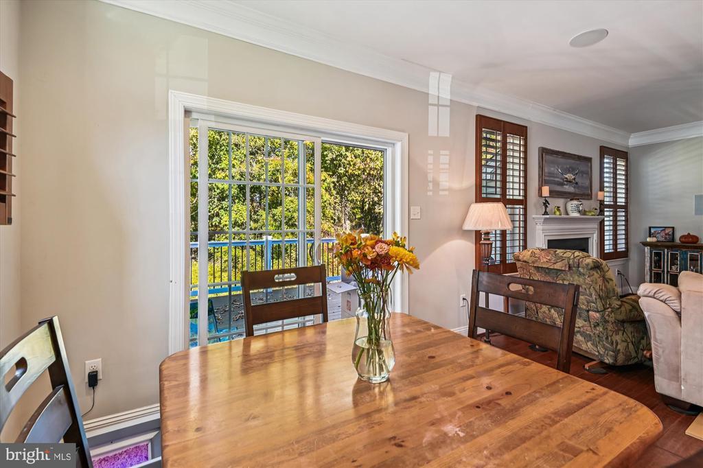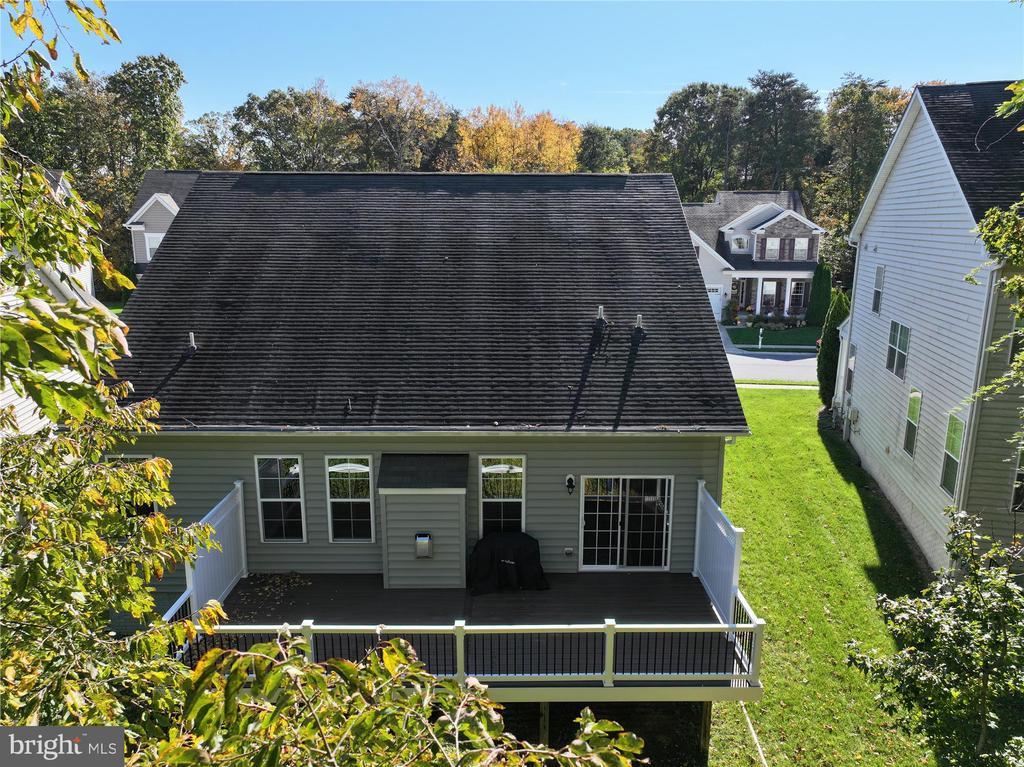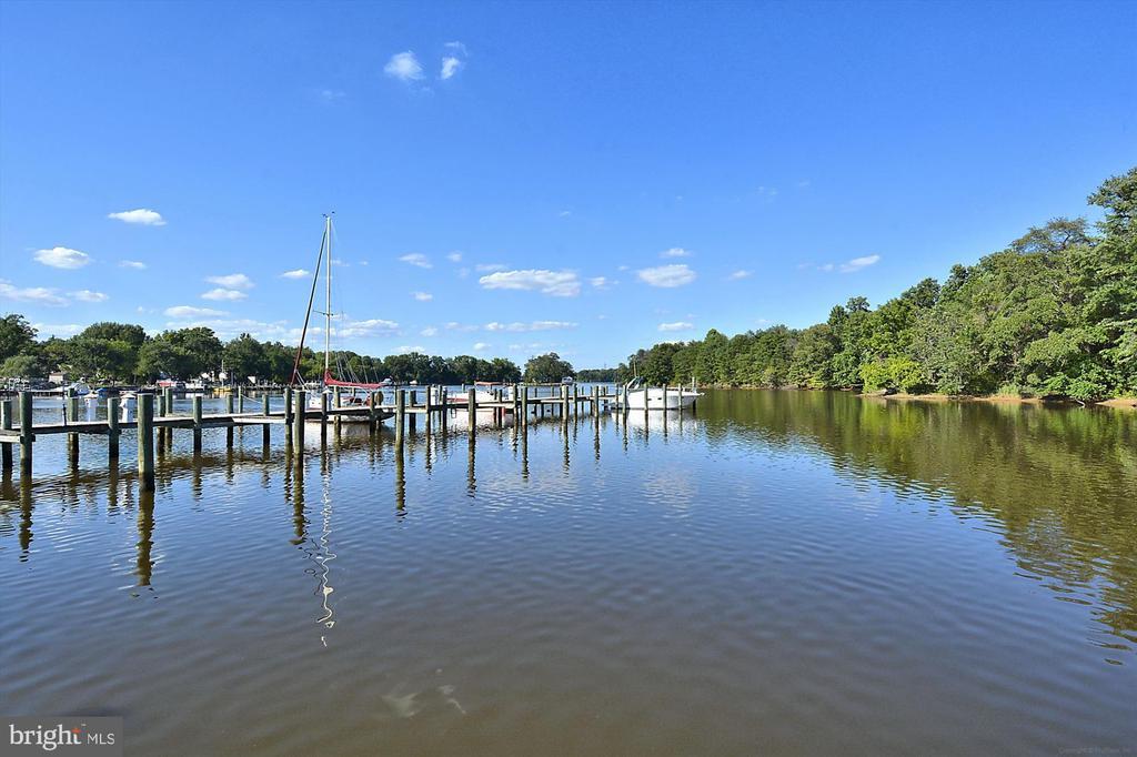 Welcome to this beautifully maintained home in the water-privileged community of Osprey Landing! Step inside to find a spacious living room featuring a cozy gas fireplace, gleaming hardwood floors, and elegant crown molding. The fully equipped kitchen boasts granite countertops, recessed lighting, a tile backsplash, a center island with a breakfast bar, and a bright breakfast area with access to the private Trex rear deck—perfect for morning coffee or outdoor dining. The primary bedroom suite offers neutral carpeting, a walk-in closet, and a luxurious private bath with a dual sink vanity topped with granite, a frameless glass shower, and a relaxing soaking tub. Down the hall, you’ll find a generously sized second bedroom with ample closet space and an additional full bath. A bright private office provides the ideal space for working from home—or can easily serve as a third bedroom, den, or library. The lower level features a huge unfinished space offering endless potential for future expansion or plenty of room for storage. Outside, enjoy a peaceful backyard backing to trees for added privacy and a private, maintenance free Trex deck. Additional upgrades include wood plantation shutters, a 5.1 speaker system with subwoofer and amplifier, CAT5 cabling, and more! Enjoy all that Osprey Landing has to offer, including a community clubhouse, dock, and water access. This home also comes with a deeded boat slip, and its convenient location near major roadways makes commuting a breeze. For those summer days you would like to get out on the water, walk to your private slip at the marina. (Deeded into the property)