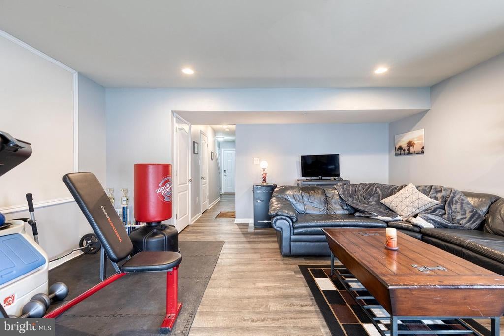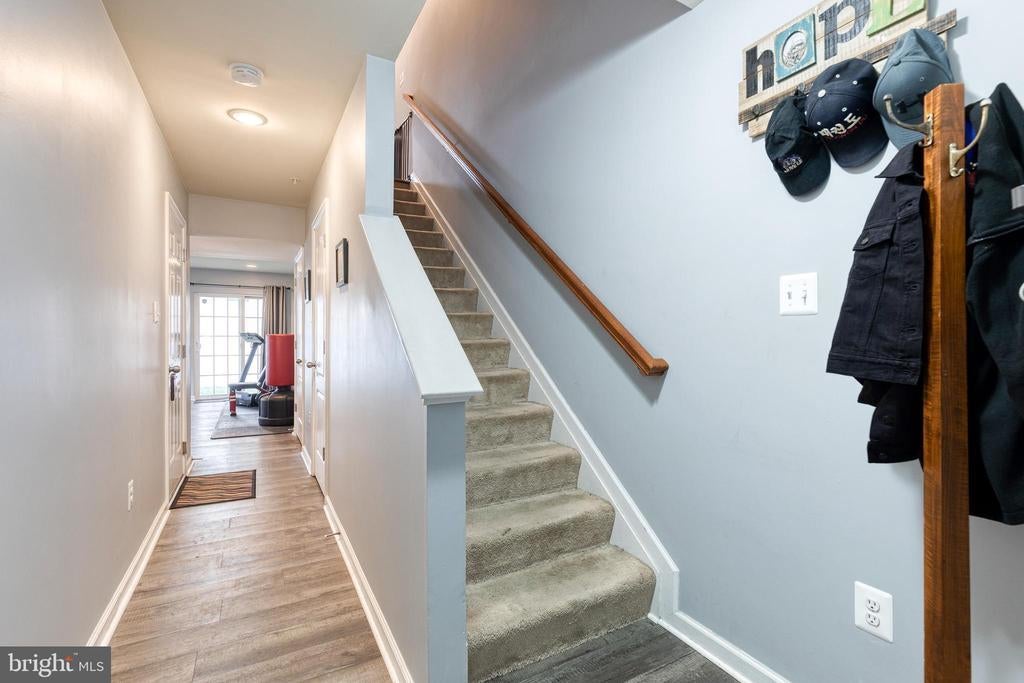 Welcome home to this beautifully maintained end-unit townhome offering comfort, style, and convenience in the sought-after community of The Pointe at Tanyard Springs. Step inside to find luxury vinyl flooring in the entryway, leading to a spacious lower-level flex area—perfect for a second family room, home office, or gym. Sliding glass doors open to a private, fully fenced yard with tall white vinyl fencing—ideal for entertaining or relaxing outdoors. Upstairs, the main living area features a bright, open-concept layout with a modern kitchen, complete with luxury vinyl floors, granite countertops, stainless steel appliances (including a 4- burner gas range), and a large center island with plenty of storage. A Trex deck just off the kitchen invites you to enjoy morning coffee or evening sunsets. The living room’s bay window and end-unit extra windows fill the space with abundant natural light. The upper level boasts two spacious bedrooms and two full bathrooms. The primary suite includes a private ensuite bath with double vanity, while the secondary bedroom has easy access to a full hallway bath with a tub/shower combo. The laundry area is conveniently located on this level with a full-size washer and dryer. Additional highlights include a one-car garage for parking or storage, and proximity to major highways, Fort Meade, and BWI Airport. Enjoy community amenities like pool w/clubhouse and gym as well as walking paths, playgrounds, and even dog parks.