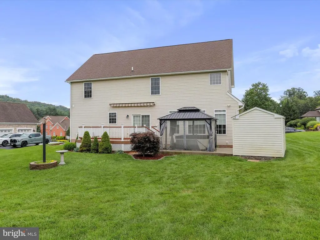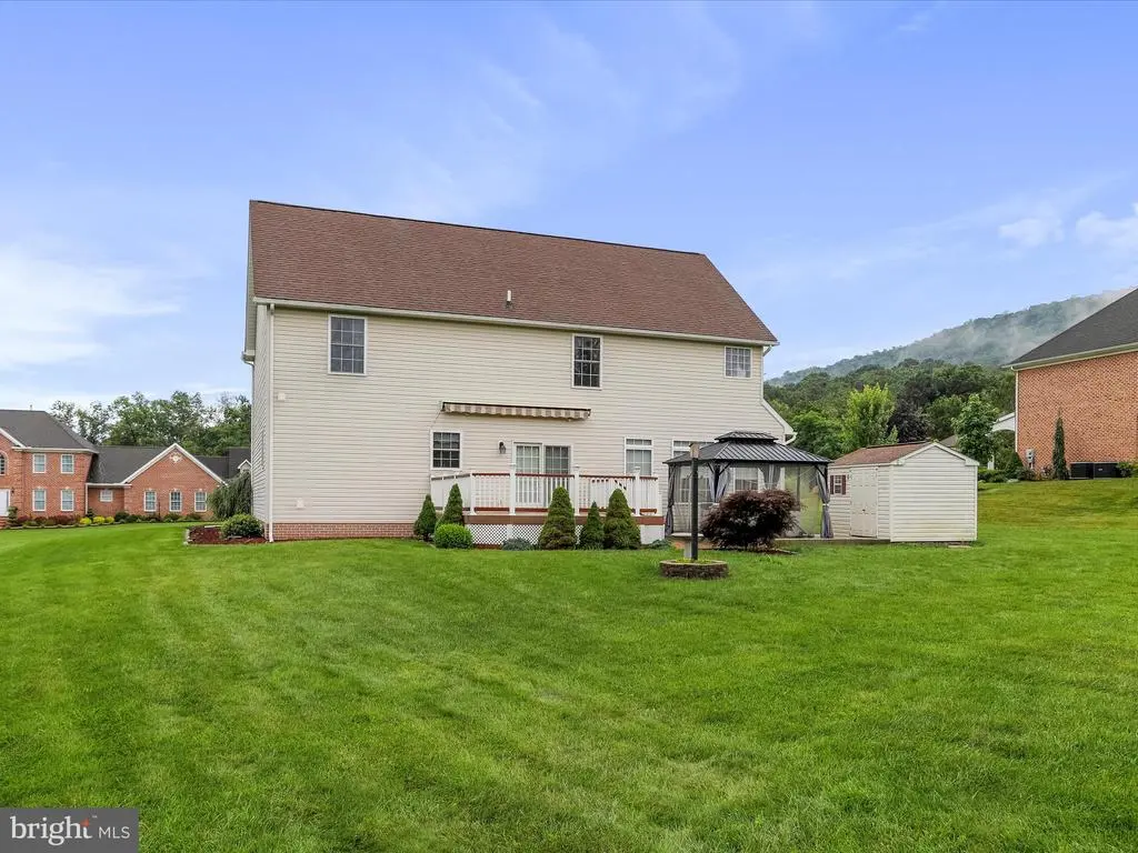 Welcome to Ashleigh Heights (LaVale) - With 3,767 sq ft of finished living space, the Open Floor plan offers modern comfort across three finished levels - With a two story inviting entry and 9 ft ceilings, this home combines luxury and comfort - There are 4 bedrooms and 3 1/2 baths - The beautiful kitchen has Corian surfaces with stainless steel appliances - Breakfast area - Off the kitchen is a sunken family room with a gas fireplace - Also off the kitchen is the rear deck and patio perfect for entertaining - The deck has a retractable awning cover and a hot tub with a gazebo - The owners have decided to include the bird house for your constant entertainment - The mountain views are in every direction - The primary bedroom has a jacuzzi tub, toilet/bidet, and towel drying rack - The laundry room is also on the main floor - The fully finished basement provides even more versatile living space complete with a large rec room and plenty of storage space - Central Air - Storage Shed - Plus Large 2 car garage - The best of convenience and community!