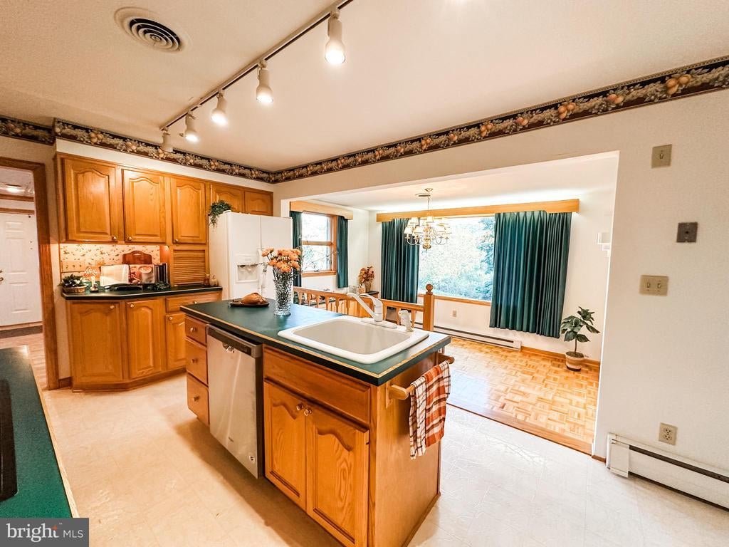 Welcome to your private retreat! This 3 bedroom, 3 bathroom rancher sits on 5 gorgeous acres with breathtaking mountain views. Inside, you’ll find a bright living room with a large bow window, a sunken dining room with huge windows that flood the space with natural light, and beautiful hardwood floors throughout much of the main level. The cozy den features a propane fireplace and a wet bar, perfect for entertaining. The large, sunken primary suite boasts vaulted ceilings and abundant windows, creating a peaceful, airy space. The finished basement offers even more living space with a second kitchen, a spacious family room, and a full bath. Outside is an entertainer’s dream with a massive outdoor entertainment area, complete with an outdoor bar, outdoor bathroom, and an inground swimming pool (in need of restoration, ready for your vision). A huge detached 2-car garage is heated, air conditioned, and includes its own half bath – ideal for a workshop or hobby space. This property combines comfort, space, and endless potential in a serene setting – don’t miss your chance to make it yours!
