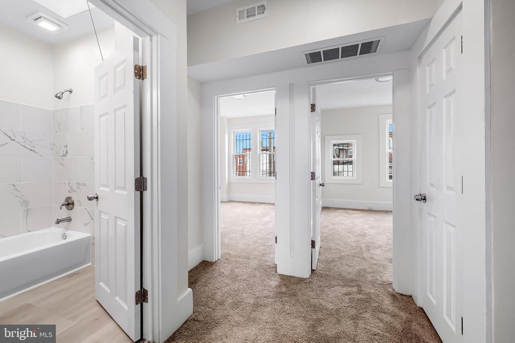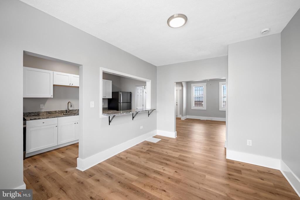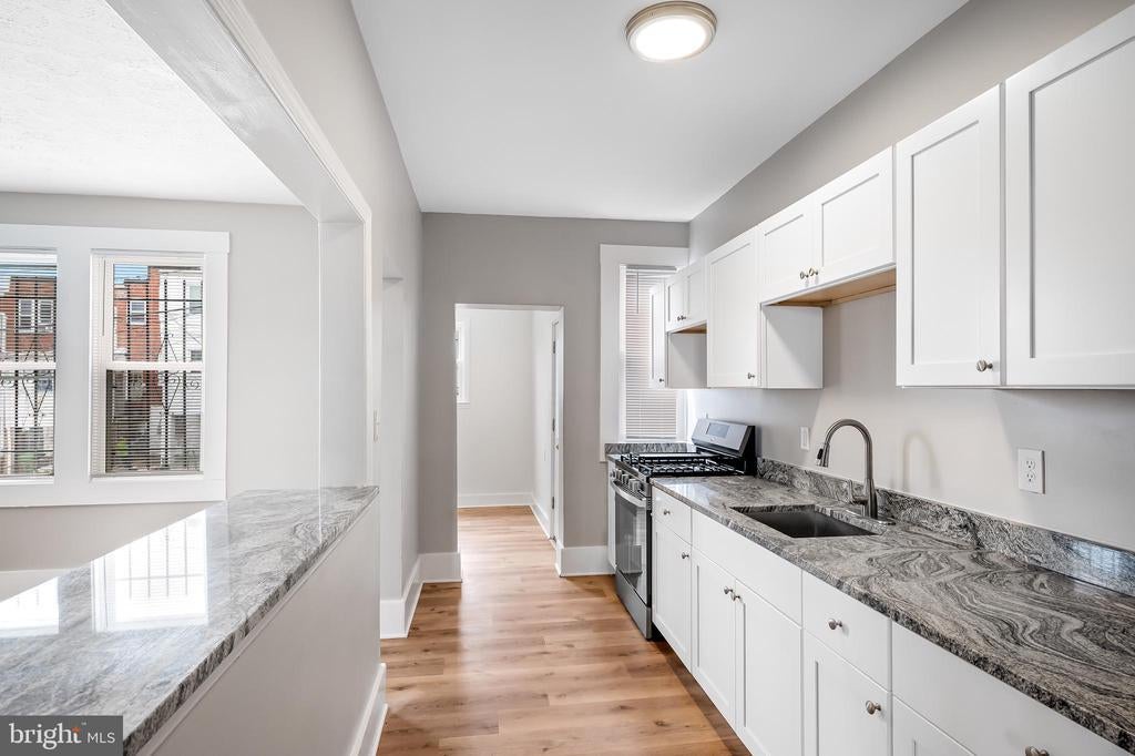 Welcome to this fully renovated 3 bedroom, 1 bath townhouse in Baltimore City! This home offers modern amenities and a spacious, open floor plan ideal for comfortable living and entertaining. Notable updates include central A/C, newer kitchen cabinets, granite countertops, bar-height seating in the dining area, a GE stainless steel range with griddle, GE refrigerator/freezer combo, stainless steel sink, and a beautifully updated full bathroom with stylish tilework, contemporary vanity, and luxury vinyl plank flooring. The main level features an inviting open layout, seamlessly connecting the living room, kitchen, and dining areas. A dedicated mudroom with a private rear entrance provides convenient access to the backyard. Upstairs, you'll find a spacious primary bedroom filled with natural light, a stainless steel ceiling fan, and a large closet with ample shelving and hanging space. The fully carpeted second floor also includes a newly renovated full bath and two additional generously sized bedrooms, each with their own closet and storage options. The tall ceilings in the basement offer excellent potential to create a finished living space tailored to your needs. A newer washer and dryer are also conveniently located downstairs. Outside, the concrete patio is perfect for entertaining or can be converted into a parking pad for added convenience. Located near major travel routes and downtown Baltimore, this home is also just minutes from Morgan State University, Johns Hopkins Hospital, Lake Montebello, Herring Run Park, and Mount Pleasant Golf Course. Don't miss your chance to tour this well-maintained and move-in-ready home, schedule your tour today!