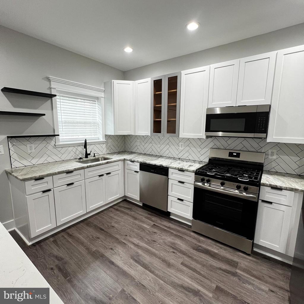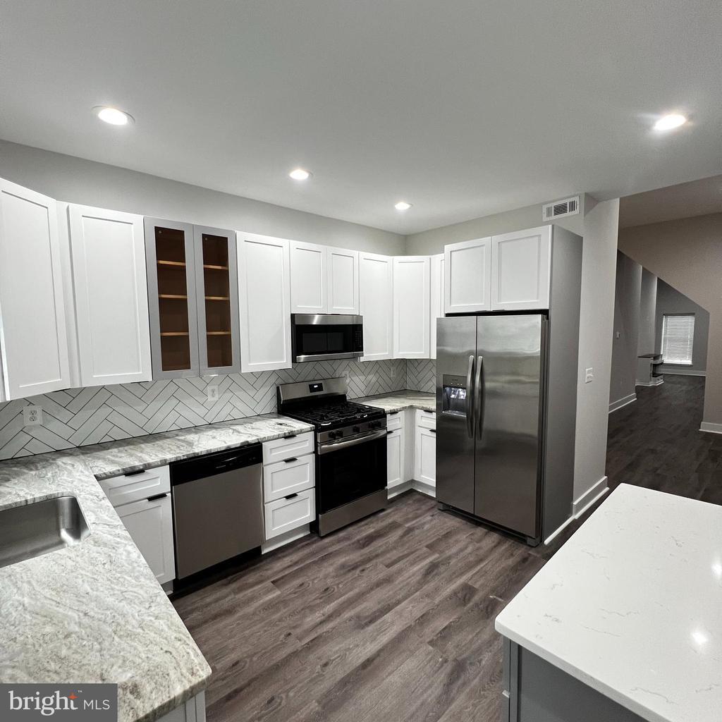 Stunning Fully Renovated 4-Story Rowhome in the Heart of Baltimore! This spacious 5-bedroom, 4-bathroom end unit row home blends classic charm with modern luxury. Renovated completely in 2025, it features a beautifully preserved original staircase, extra high ceilings, and thoughtful upgrades throughout. No detail was left behind and the primary suite features a large attached bathroom with a walk in closet perfect for your imagination. The open-concept kitchen boasts a rollaway island—perfect for entertaining or everyday flexibility. A wet bar and recreation space in the basement offer excellent potential for a 6th bedroom or in-law suite with its own exit. Enjoy the convenience of two separate thermostats for optimal comfort on all four levels. Step outside to a newly enclosed backyard—ideal for pets, gatherings, or relaxation. Just minutes from downtown, Penn Station, and major commuter routes. Ideal for homebuyers seeking space, style, and city convenience. Move-in ready and available now—schedule your showing today!