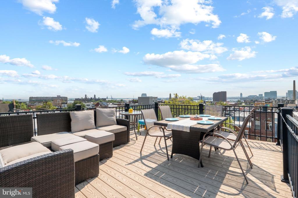 Educational Systems FCU perk: up to $2,500 toward closing costs and programs with as little as 3% down. Subject to credit approval and eligibility. -- Welcome to this exceptional three-level home located in the heart of Baltimore's vibrant Canton neighborhood. Offering 2,160 square feet of meticulously updated living space, this property perfectly blends contemporary style with historic charm. Enjoy all the modern amenities you could desire, including a gourmet kitchen equipped with stainless steel appliances, elegant granite countertops, exposed brick accents, fireplace, hardwood floors throughout, and custom lighting complemented by abundant natural light from skylights. This spacious residence boasts four bedrooms and two and a half bathrooms making it great for a family or rental income. The custom-designed staircase railing adds a sophisticated touch, leading you to an inviting roof deck, perfect for gatherings or quiet evenings, with stunning panoramic city, sunsets and water views. Situated on a charming street only three blocks from the waterfront and 1 block from Canton Square.