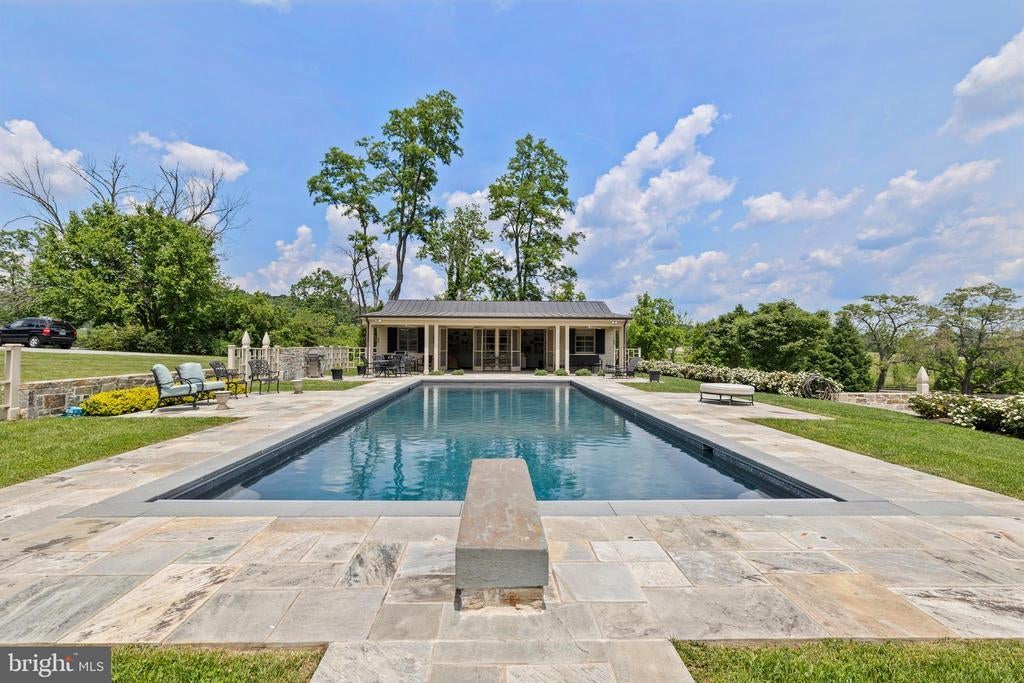 Iconic Goose Green Farm on one of Baltimore County's most bucolic and sought-after lanes, at the confluence of Mantua Mill Rd and Green Rd, this lovely Charles Nes designed stone 5+ BR estate farm is a once in a generation opportunity to own one of the finest, iconic equestrian farms in the region. Owning both banks of a long stretch of the Western Run with picturesque swimming holes and storybook picnic/fishing hide-aways, this 183 acre farm enjoys breathtaking, gently rolling land with literally miles of protected, open views and riding trails. Gorgeous gardens, magnificent old growth trees commanding spectacular views of sweeping meadows, fields, paddocks and incredible, best in class equestrian farm complex. Bank Barn with silo observatory & 11 stalls, Stable with 5 stalls, 2nd Stable with 4 stalls. All with tack rooms & wash stalls. Amish built post & beam Tractor Shed/Workshop. Riding ring, 6 run-in sheds, many acres of fenced paddock, shooting clay facility. An 18th century stone Guest House, Garage Apartment and fabulous new Pool/ Pool House complex are just a few of the amenities on this beautiful maintained and impeccably updated fabled retreat.
