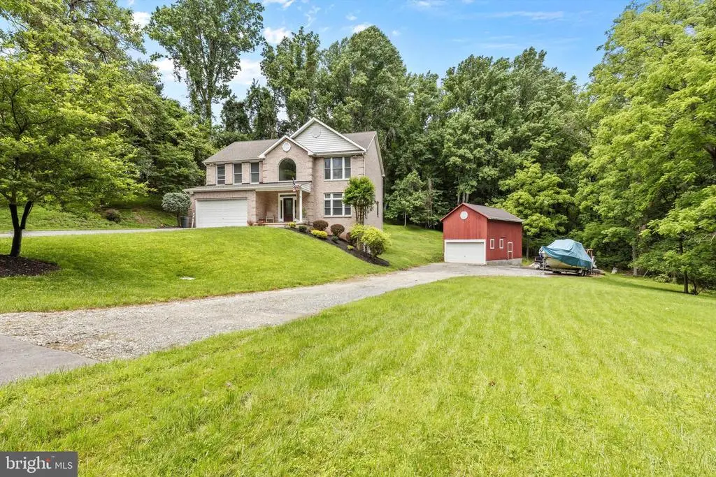 Classic all brick colonial in Glyndon on 2.52 secluded wooded acres! The open concept main level offers 9' ceilings and a contemporary look with ceramic tile floors throughout, a sophisticated kitchen with large center island, concrete counters, recessed lighting, updated stainless steel appliances and gas cooking open to an inviting family room with a gas fireplace. The upper level primary bedroom has vaulted ceilings, huge walk-in closet, a spa-like primary bathroom. 3 additional bedrooms occupy this level and another full bathroom. A bright finished lower level that is in pristine condition, game room/recreation room and 3rd full bathroom, walk-out to side yard. 9' ceilings on all 3 levels. oversized 2 car attached garage with built-in shelving plus a barn that has 2 levels, and there is plenty of additional parking for RV or a boat! No HOA! The address is Central Ave but you will need to turn on Glyndon Mews and take the 2nd driveway on the right, this is the next driveway after the school drive. Actual zip code is Glyndon 21071