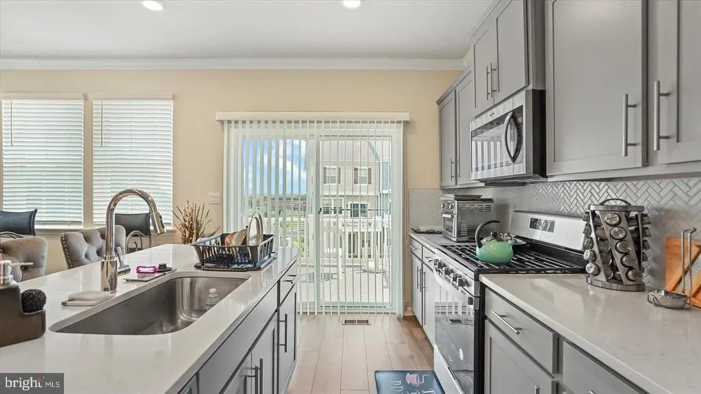 Beautifully maintained and move-in ready 4BR/3.5BA end of row Townhome located in the quiet community in Rosedal. Park in front of the one-car garage and make your way to the front door into your new home. This home offers three floors of living space beginning with the ground floor offering access to the garage, the first of four bedrooms, a full bath with a walk-in shower with bench seating, storage, and sliding doors to the large fenced yard. The main floor living space features crown moldings, easy care flooring throughout. On this floor are a large living room, a half bath, and kitchen with a breakfast area. The kitchen features plenty of cabinets finished with crown moldings, a separate pantry closet, stainless steel appliances, sleek quartz countertops with a complementing herringbone patterned tiled backsplash, and an island with a deep sink and breakfast seating for four. Sliding doors from the main floor open onto a spacious deck that overlooks the yard. On the second floor is the convenience of laundry, two sizable bedrooms, a full bath, and a primary suite. The primary features a large walk-in closet and private en suite boasting a double sink vanity and a large walk-in shower. This home is move-in ready, ideal for any new homeowner, and is located in close proximity to shopping, restaurants, and commuter routes.