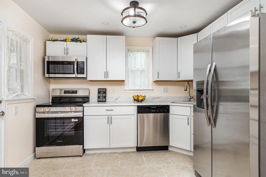 Welcome to one of the sweetest spots in Rosedale—this charming and updated brick rancher sits on a spacious corner lot with beautiful views. Move-in ready, the home offers nearly 2,200 sq ft of living space across the main and lower levels, featuring an additional bedroom, large rec room, and backyard walk-up, along with the convenience of traditional rancher living on the first floor. An enclosed side porch off the kitchen adds flexibility for relaxing or entertaining. The bright, modern kitchen includes updated cabinets, granite countertops, stainless steel appliances, ceramic tile flooring, and recessed lighting. The open living-dining area features refinished hardwood floors, recessed lights, and a large bay window for natural light. The main level offers three true bedrooms with updated laminate flooring and ceiling fans, plus a full bath with ceramic tile tub surround, updated flooring, and a newer vanity. A partially floored, insulated attic provides excellent storage. The finished lower level includes a fourth bedroom, full bath with shower, rec room, and a laundry area with washer/dryer, storage cabinets, and walk-up backyard access. A separate utility room adds more storage. Outdoor features include a front porch, enclosed side porch, and a flat backyard perfect for entertaining or relaxing. System upgrades include a Goodman HVAC (2018), 74-gallon water heater (2021), vinyl double-hung windows, electrical improvements, architectural shingled roof, reinforced retaining wall, sump pump with battery backup, and a one-year home warranty for peace of mind. This home has it all—space, comfort, and modern updates. No HOA. Schedule your showing today!