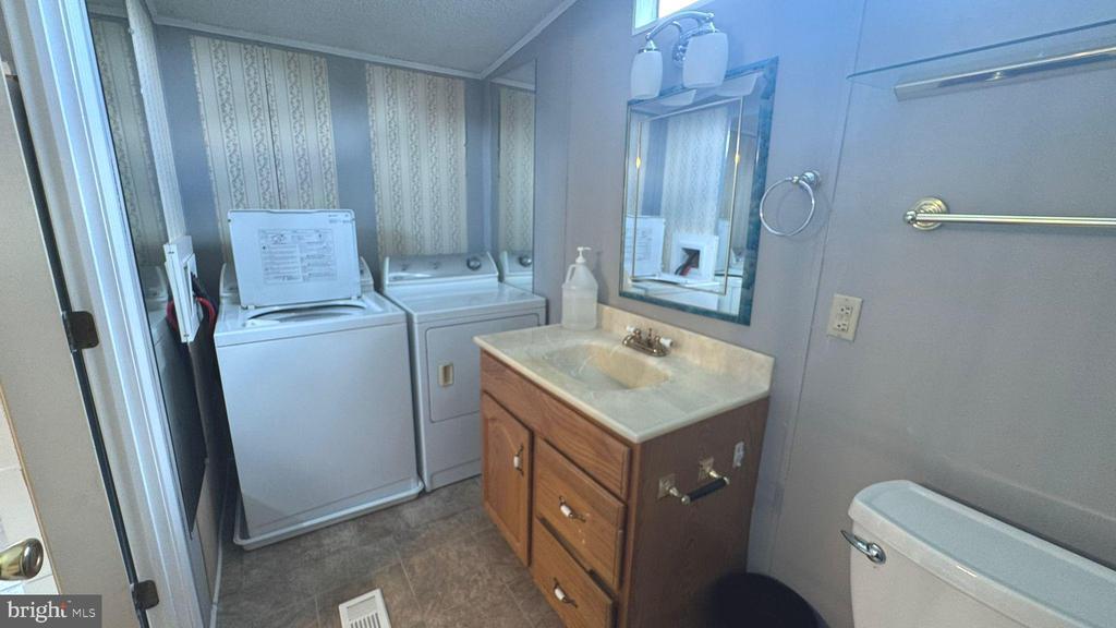 Looking for space, style, and convenience? This beautifully updated 2-bedroom, 2-bath home checks all the boxes! Relax on the cozy front porch, or entertain in the bright, open-concept living and dining area. The eat-in kitchen offers plenty of counter space and tons of storage—perfect for cooking and gathering. The spacious primary suite features a walk-in closet and a private bathroom with an updated sink and shower. one additional bedroom share a full bath, and the separate laundry room includes a full-size washer and dryer. Outside, you’ll find a side entrance and handy storage shed. . Located just minutes from I-95 and I-695, commuting, shopping, and local attractions are a breeze. Ground rent is $750/month. Park approval required for all buyers. Don’t miss this one—schedule your tour today!