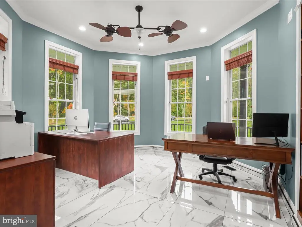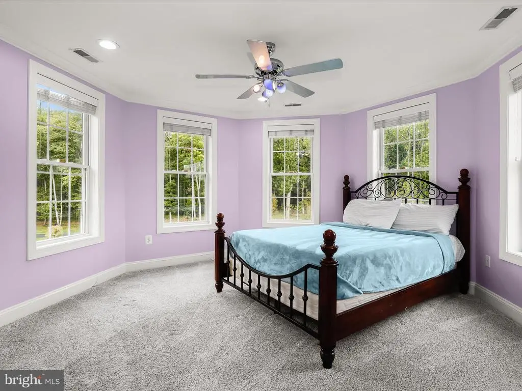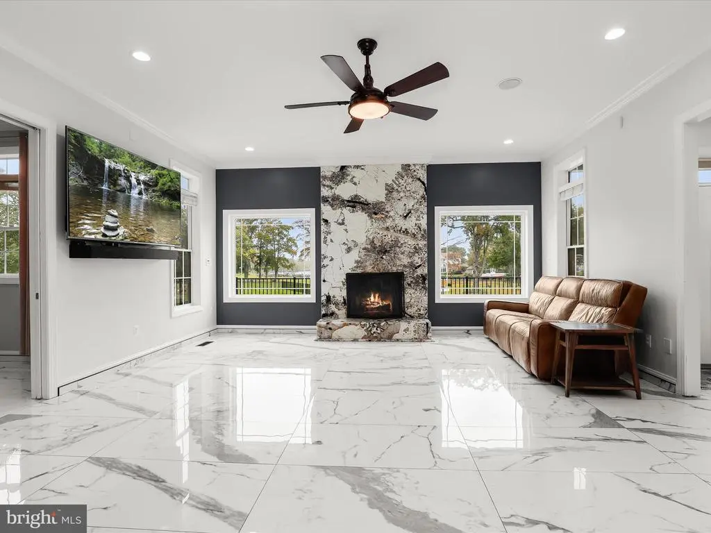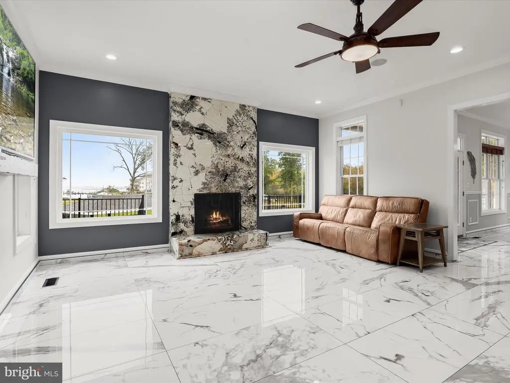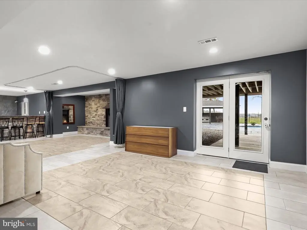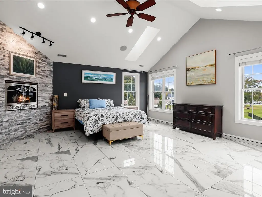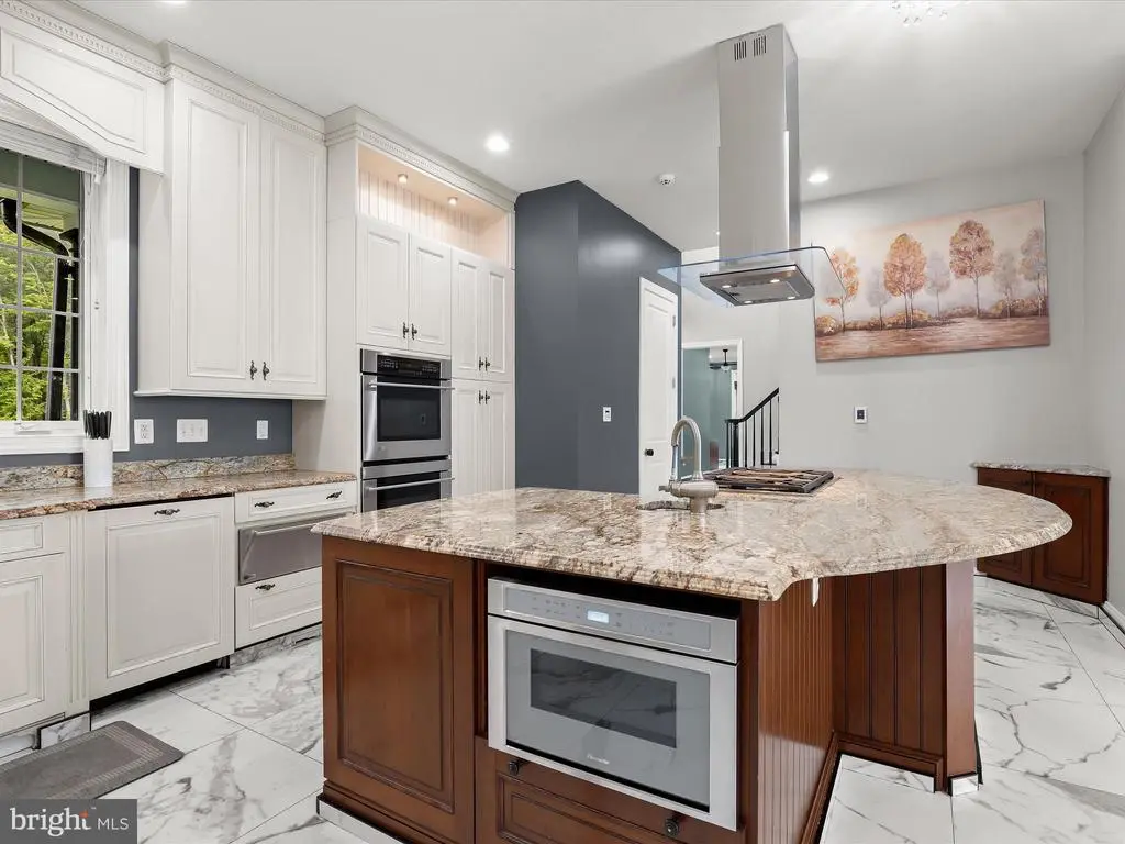 Welcome to your private waterfront retreat, an extraordinary estate set on over 20 acres of beautifully landscaped grounds and over 800 feet of waterfront, offering a harmonious blend of elegance, comfort, and resort-style living. Mature trees frame the property’s serene setting, complete with water access, a private dock with two boat slips, a 10,000 lb lift, a jetski lift, and captivating outdoor amenities, including a custom pavilion, a goldfish pond, a patio, a circular driveway with two electric charging stations, and a fire pit. The in-ground pool features a waterfall and a covered patio with electric outlets, creating an entertainer’s paradise perfect for gatherings of all sizes. The inviting semi-wraparound porch leads into a grand foyer adorned with heated porcelain tile flooring that continues throughout the main level, with individual climate controls for personalized comfort. The living room impresses with soaring ceilings, crown molding, recessed lighting, and a granite-surround wood-burning fireplace that frames spectacular panoramic views. The formal dining area exudes sophistication with box wainscoting, medallion ceiling accents, brass fixtures, and access to the expansive new composite deck. A chef’s kitchen stands at the heart of the home, equipped with industrial-grade Monogram stainless steel appliances, double ovens, a center island with breakfast bar, custom 42” cabinetry, granite counters, and soft-close drawers, all complemented by a convenient mudroom. The guest wing offers privacy and comfort with a full bath, a bedroom with a walk-in closet, and access to an oversized three-car garage with a loft for storage or recreation. The family/game room offers the ultimate leisure space, featuring a billiards area, a wet bar with a beverage cooler and ice machine, crown molding, soaring ceilings, a powder room, surround sound, and direct access to the front porch. The primary suite is a true sanctuary featuring a cathedral ceiling, stone gas fireplace, skylights, heated porcelain tile flooring, double walk-in closets, an electric fireplace, a private balcony, and a spa-inspired en suite with dual vanities, lighted mirrors, a soaking tub with scenic views, and a steam shower with triple shower heads. Three additional bedroom suites each offer their own charm with walk-in closets, custom built-ins, and designer finishes. The fully finished lower level expands the living space with a private wine room, a large recreation area with a stone wall fireplace, a kitchenette with a breakfast bar and a built-in microwave, a full bath, a bedroom, and a second laundry area. An additional bedroom suite features luxury flooring, a custom walk-in closet, and a breathtaking en suite with a freestanding tub, walk-in shower, hexagon tile accents, and a double vanity with illuminated mirrors. A rare combination of craftsmanship, privacy, and luxury, this exceptional property offers a lifestyle beyond compare, with easy access to major commuter routes, including I-695 and I-95. Updates: New Composite Deck 2025, Extensive Hardscape with pond, retaining walls, and spill overs 2023, New Driveway with Landscaping and lights 2021, 2-Car Charging Stations 2021, Exterior House painted 2025, Radiant Tile flooring throughout with independent controls 2021, New gutter system 2024, Water Filtration system 2021, House generator 2023, Loft above the garage 2023, New Primary bath with steam shower and fireplace 2022, New secondary bath 2023, Updated lower-level bath 2022, Upstairs Laundry room 2022, Lower Level Laundry room 2022, New Kitchen refrigerator