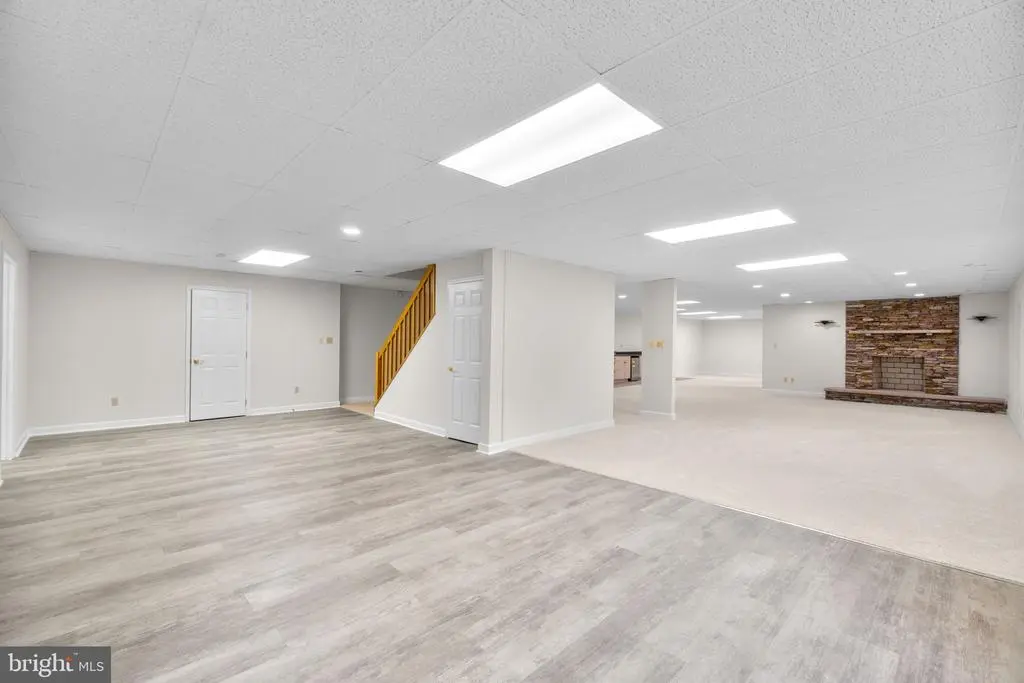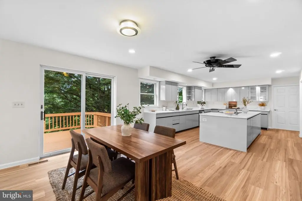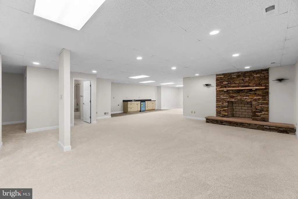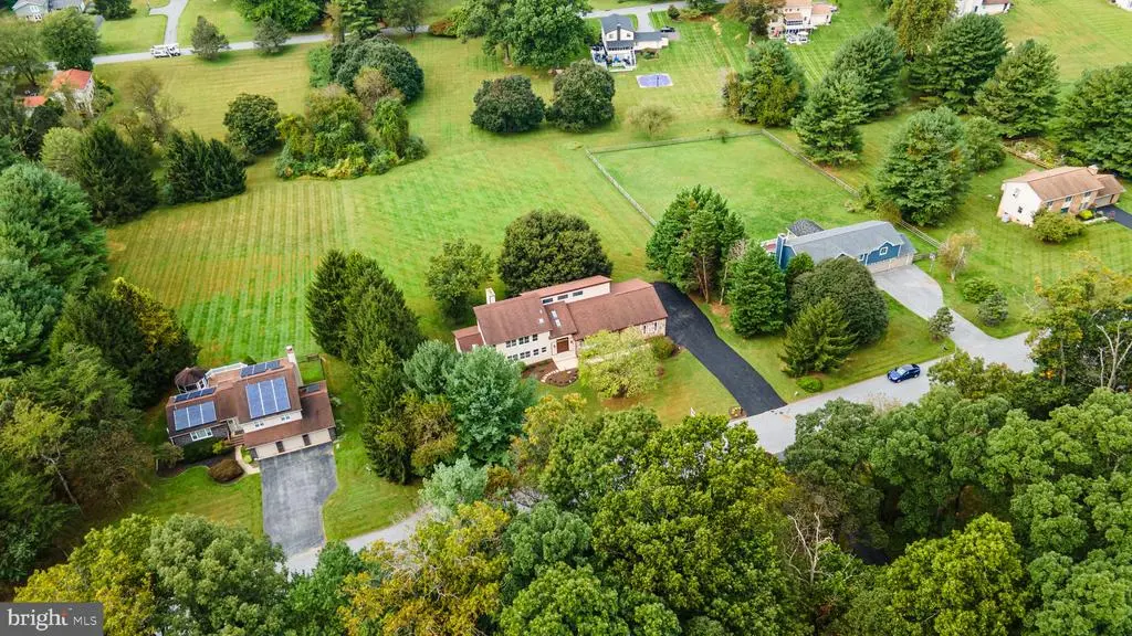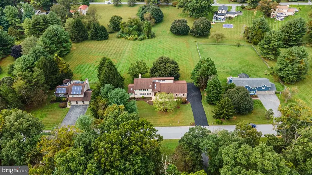 Stately stone-accented Transitional residence offering 6,107 square feet, 5 bedrooms, 4 full baths, 1 half bath, and a 3-car side-loading garage, set on 1.35 tranquil acres in desirable Delight Meadows. A bright two-story foyer with gleaming marble floors welcomes you in, offering access to a powder room and a private office. The formal living and dining rooms feature hardwood floors, with the living room showcasing soaring two-story vaulted ceilings and a bay window, while the dining room is accented with a chair rail, crown molding, and sparkling crystal chandelier. The modern eat-in kitchen is a chef’s dream with stainless steel appliances, Merlo quartz counters, an oversized island, sleek knobless cabinetry providing ample storage space, and a breakfast area with deck access and a built-in writing station. A nearby laundry room provides garage access for everyday convenience. Off the breakfast area, the two-story family room impresses with hardwood floors, a wood-burning fireplace, vaulted ceilings with skylights, and its own deck access. Down the hallway, the main-level primary suite is ideal for single-level living, offering private deck access, a spacious walk-in closet, and a spa-like bath with skylights and a dual-sink vanity. Upstairs, four carpeted bedrooms provide comfortable retreats, including one with a large attached storage space. A loft with a vaulted ceiling offers gorgeous backyard views, while two full bathrooms—one on each side of the home—serve the secondary bedrooms. The fully finished walk-out lower level expands the living space with an expansive recreation room centered around a stone-surround wood-burning fireplace, a kitchenette area with a newly installed mini fridge, a full bathroom, an open bonus area with LVP flooring, and a versatile bonus room with double closets. Outdoors, enjoy an elevated deck and patio overlooking the huge, open backyard perfect for entertaining.