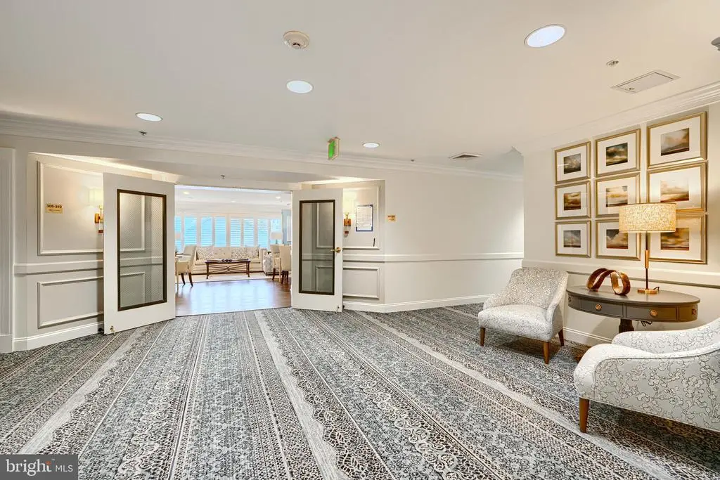 BACK ON MARKET. Discover gracious condo living in this Keelty designed 2-bedroom + den (or 3rd bedroom) home, offering 1,700 square feet of bright, functional space and rear facing wooded vistas. Carefully maintained with hardwood flooring and Corian counters in the kitchen, this home balances ease and practicality. The spacious eat-in kitchen includes an extra wall of cabinets and classic white appliances—perfect for the culinary enthusiast. Enjoy the secure garage parking, plus bonus amenities including secure entry, trash chute, storage locker, and access to a community room conveniently located on the same floor. Located in an ideal location with a freshly renovated lobby and hallways, this condo offers both comfort and style in one of the most sought-after communities—Roundwood Ridge. Stylish, spacious, and turnkey—your new home awaits. Entire unit was just painted. Brand New Water Heater.