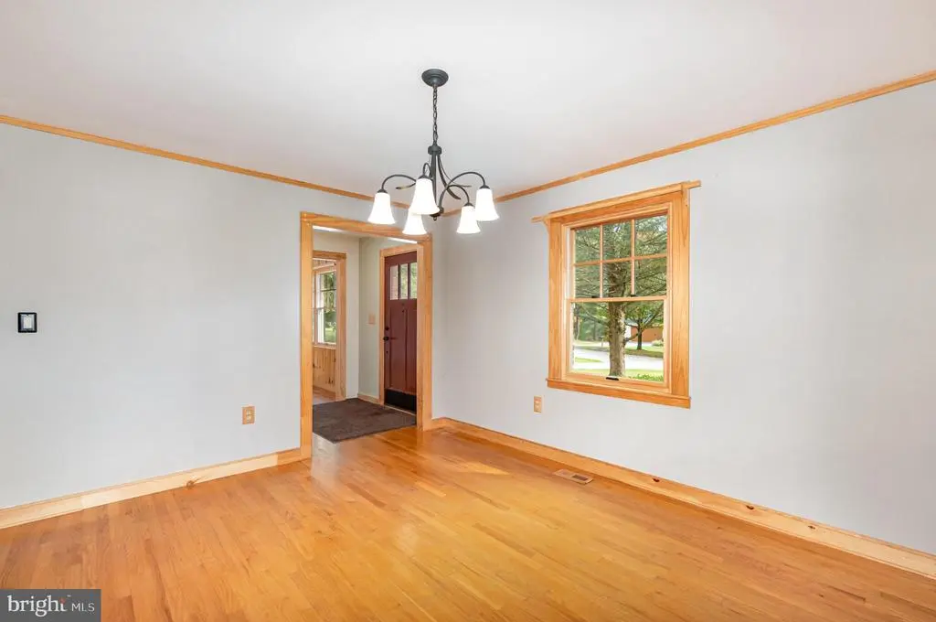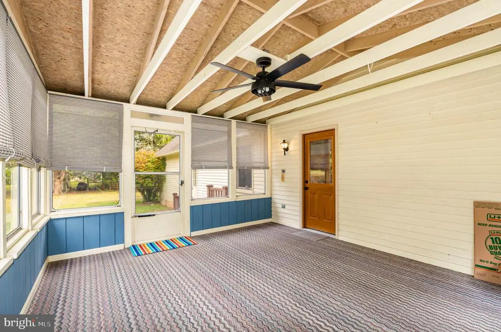 Timeless charm meets modern living! Nestled in a well-established neighborhood with generous lot sizes, the home sits on 1.25 acres and is surrounded by mature trees, creating a beautifully peaceful and private setting. The traditional layout features a spacious living room, formal dining area, hardwood floors, and a charming blend of drywall and knotty pine. The welcoming kitchen opens to the cozy family room with a wood-burning fireplace, creating the perfect space to gather or enjoy casual meals. A main-level bedroom and full bath offer flexible living—perfect for a primary suite, guest retreat, or home office. Upstairs are two generous bedrooms, each 25 feet in length, and a second full bathroom, providing versatile spaces for any lifestyle. The unfinished walkout basement offers tons of additional storage space, along with laundry hookups and laundry tub. A signature feature of the home is the enclosed rear porch with outdoor ceiling fan and wall-to-wall windows, offering picturesque views of the backyard, mature trees, and wildlife. Enjoy sunny afternoons and alfresco dining on the home’s spacious deck. With 220V/120V electrical upgrades and installed shop lights, the garage is perfectly equipped for hobbyists or a fully functional workshop. Other big ticket upgrades include a brand-new roof (2025), Pella windows (2023), water heater (2024), well pump (2025), septic upgrades (2023), repaved driveway (2021), and Leaf Guard gutter system (2024)—offering peace of mind and modern efficiency. Lot backs up to Camp Fretterd National Guard Base. A home this special won’t stay available for long—come see it today!
