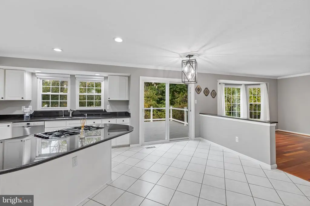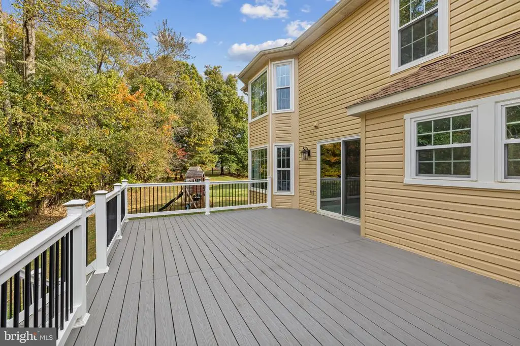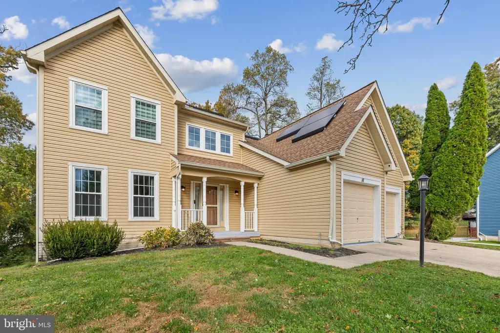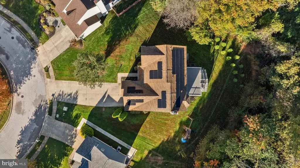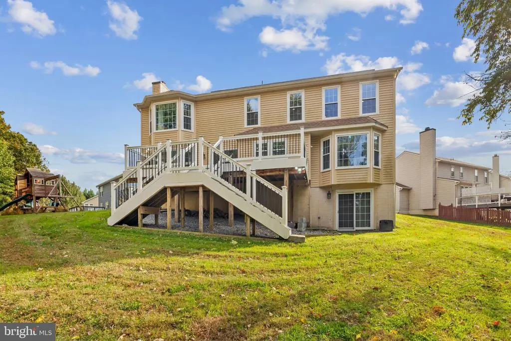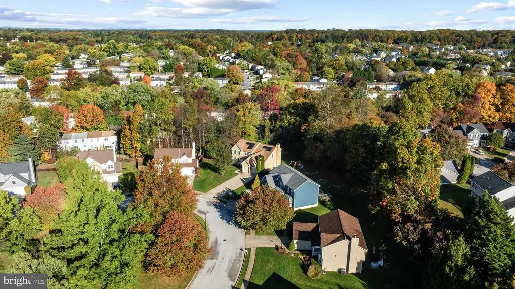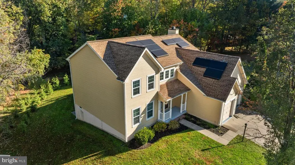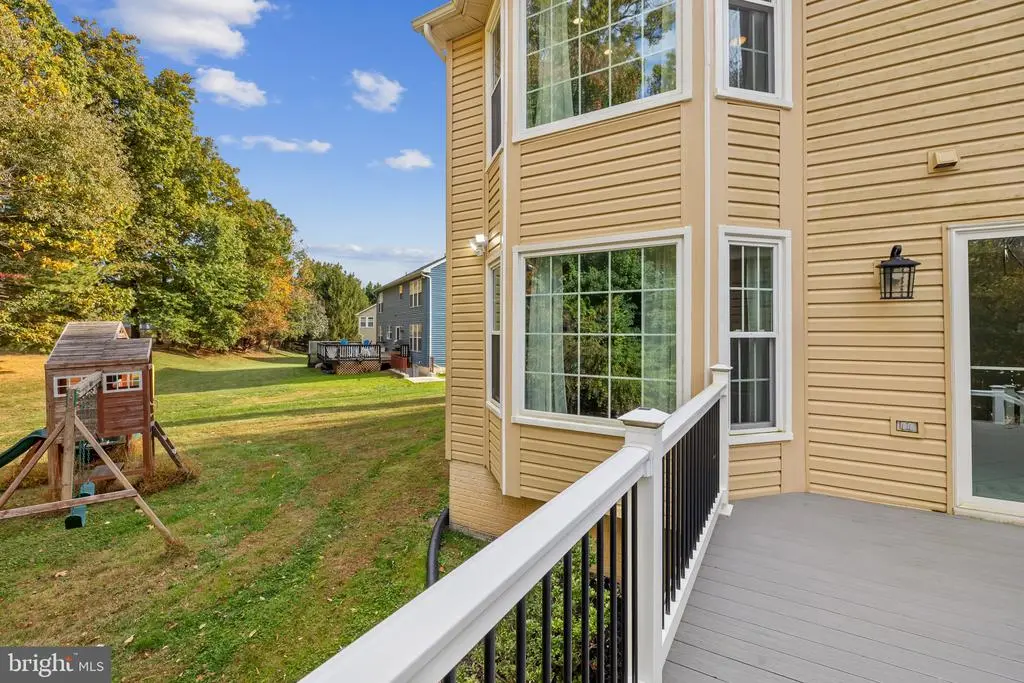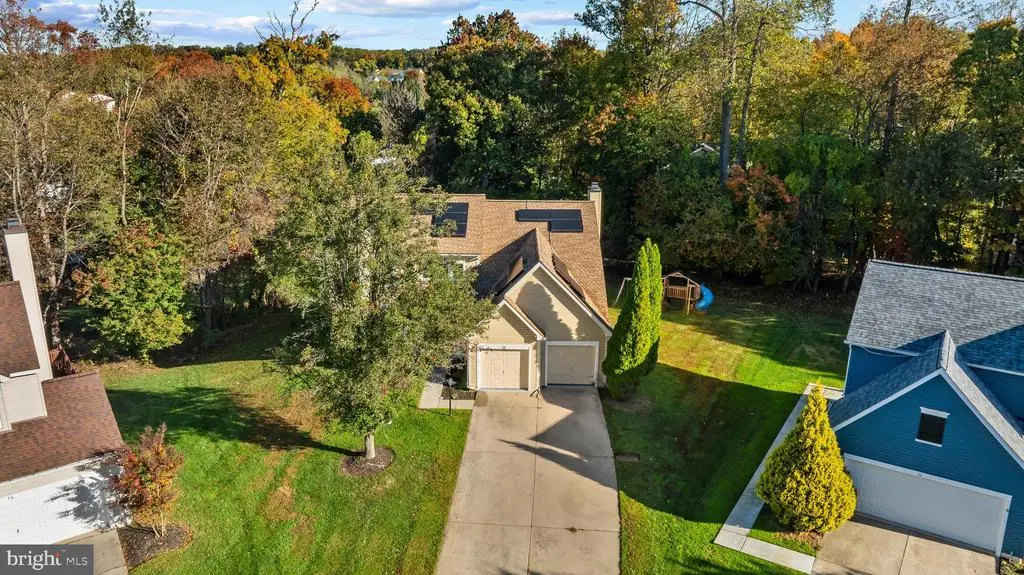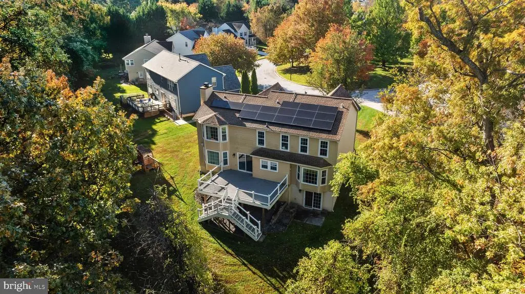 Elegant contemporary residence offering 4 bedrooms, 3.5 bathrooms, and 3,584 finished square feet, ideally situated on a cul-de-sac in desirable Hunters Glen. A grand two-story foyer welcomes you into the traditional main level, where the formal living room flows seamlessly into the formal dining room featuring bay windows, a chair rail molding, and hardwood floors. The spacious family room offers a wood-burning fireplace, bay windows, and a sparkling chandelier, creating a warm and inviting atmosphere for gatherings. The kitchen is both functional and bright, complete with a central island with breakfast bar seating, granite countertops, white cabinetry, a pantry, and a cozy breakfast area with sliding glass doors providing access to the deck. A powder room and a laundry room complete the main level. Upstairs, you'll find four spacious bedrooms with hardwood floors throughout, including the primary suite with a bay window, vaulted ceilings, a walk-in closet, and a spa-inspired en-suite bathroom featuring a dual-sink vanity, a jetted tub, and a separate water closet. A second full hallway bathroom serves the additional bedrooms. The walk-out lower level offers a large wraparound recreation room and two unfinished rooms perfect for storage or future customization. Outdoor highlights include a charming front porch, a 2-car garage, solar panels, and steps leading to a small backyard patio. The backyard backs to mature trees, offering a private and peaceful setting ideal for relaxing or entertaining.Recent updates included: Upper Level Bath Remodel [2023], Basement Bath Full Remodel [2023], New Dishwasher [2022], Roof Replaced [2021], Windows [2021], New Siding [2021] Water Heater [2021]