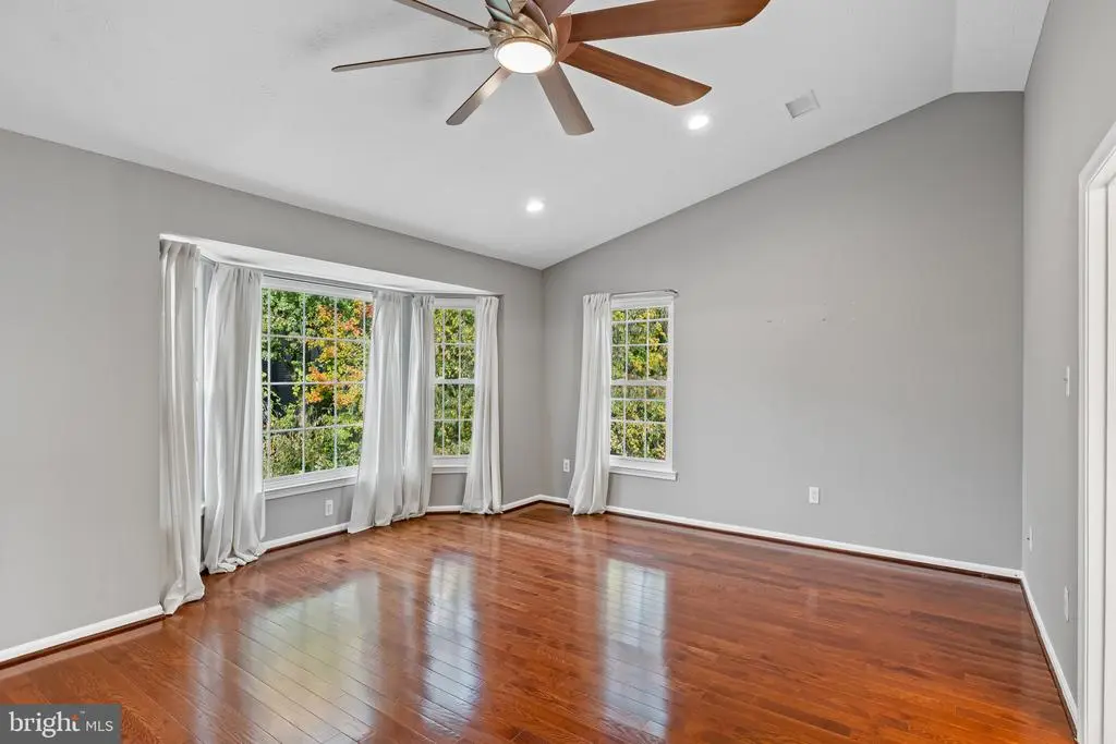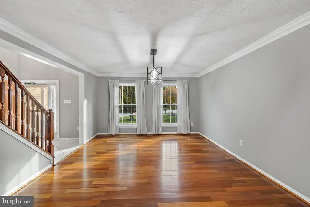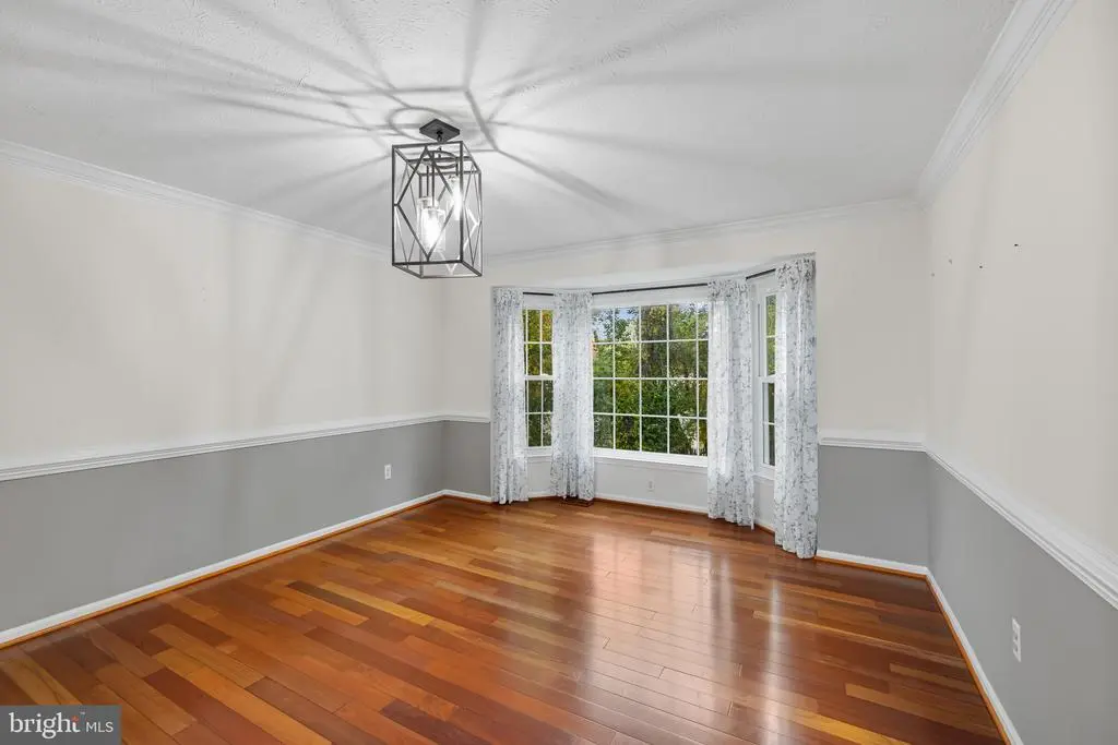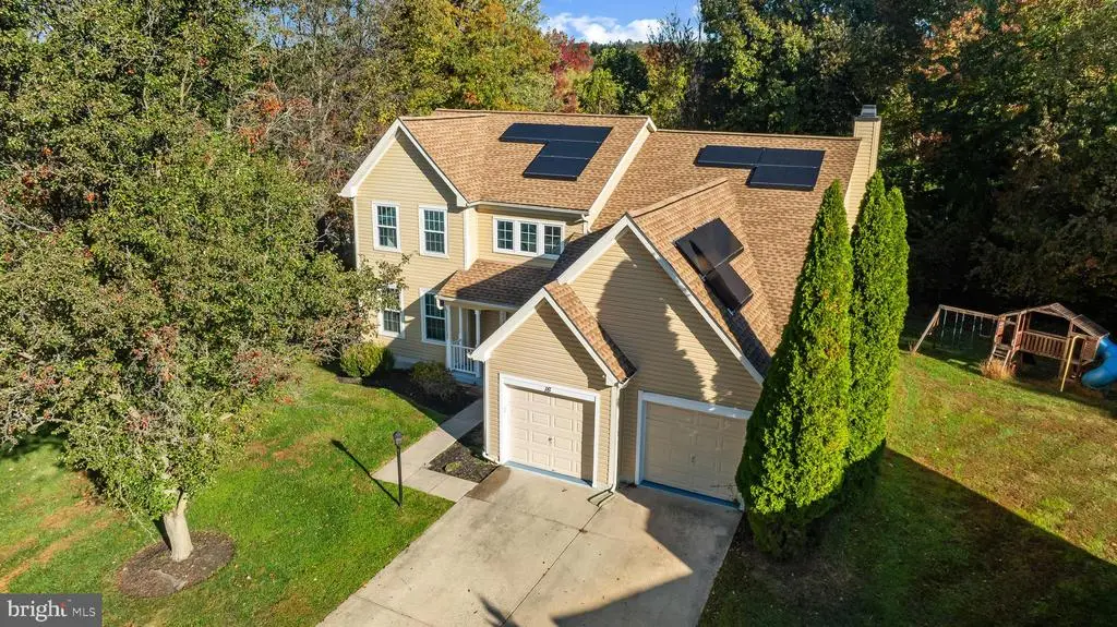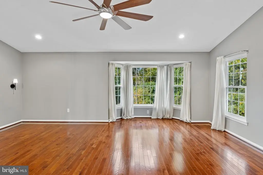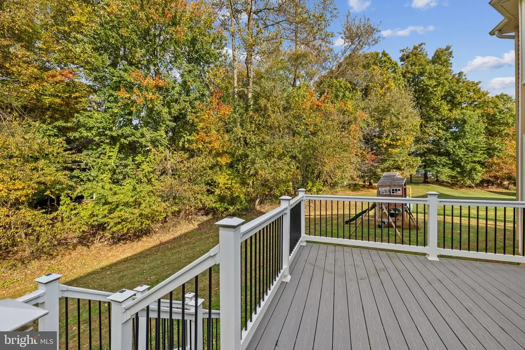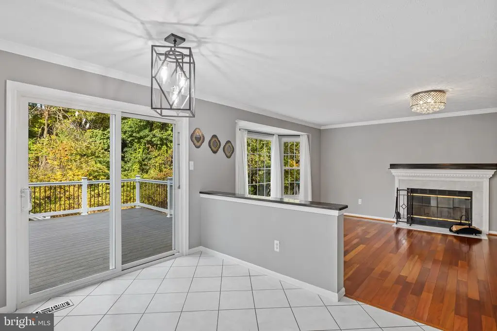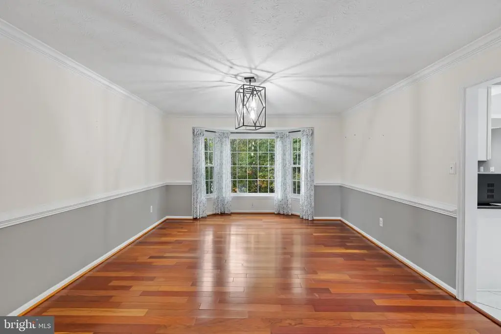 Elegant contemporary residence offering 4 bedrooms, 3.5 bathrooms, and 3,584 finished square feet, ideally situated on a cul-de-sac in desirable Hunters Glen. A grand two-story foyer welcomes you into the traditional main level, where the formal living room flows seamlessly into the formal dining room featuring bay windows, a chair rail molding, and hardwood floors. The spacious family room offers a wood-burning fireplace, bay windows, and a sparkling chandelier, creating a warm and inviting atmosphere for gatherings. The kitchen is both functional and bright, complete with a central island with breakfast bar seating, granite countertops, white cabinetry, a pantry, and a cozy breakfast area with sliding glass doors providing access to the deck. A powder room and a laundry room complete the main level. Upstairs, you'll find four spacious bedrooms with hardwood floors throughout, including the primary suite with a bay window, vaulted ceilings, a walk-in closet, and a spa-inspired en-suite bathroom featuring a dual-sink vanity, a jetted tub, and a separate water closet. A second full hallway bathroom serves the additional bedrooms. The walk-out lower level offers a large wraparound recreation room and two unfinished rooms perfect for storage or future customization. Outdoor highlights include a charming front porch, a 2-car garage, solar panels, and steps leading to a small backyard patio. The backyard backs to mature trees, offering a private and peaceful setting ideal for relaxing or entertaining.Recent updates included: Upper Level Bath Remodel [2023], Basement Bath Full Remodel [2023], New Dishwasher [2022], Roof Replaced [2021], Windows [2021], New Siding [2021] Water Heater [2021]