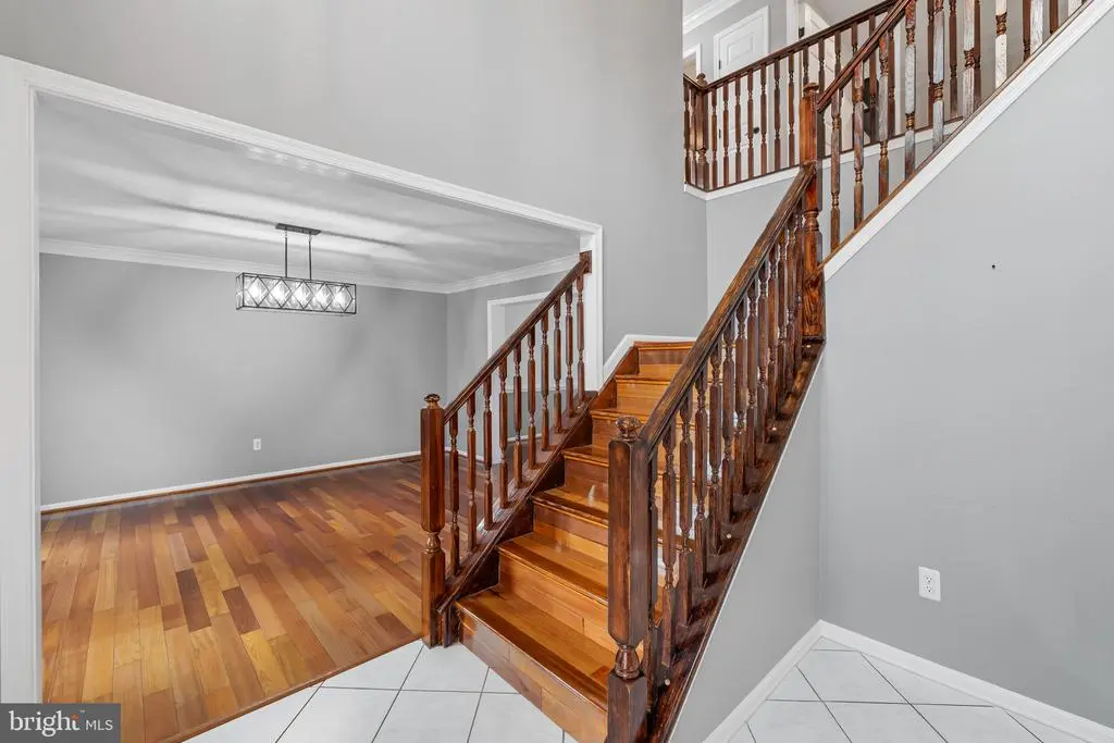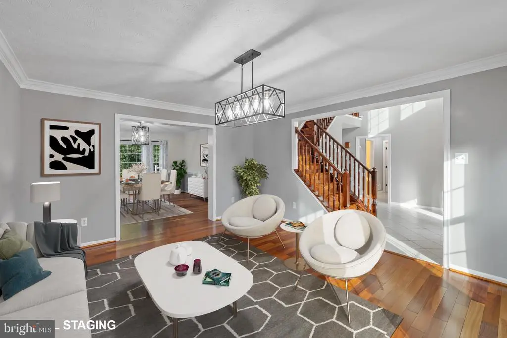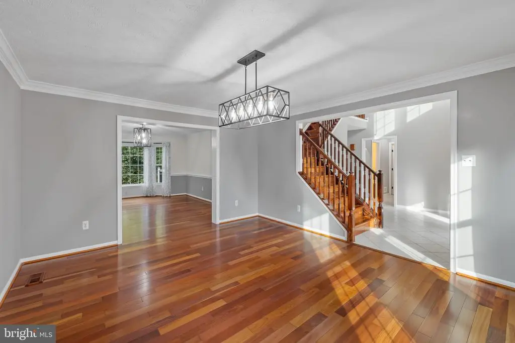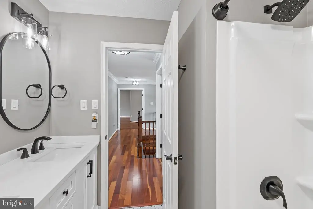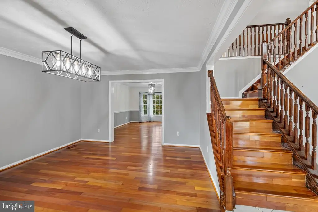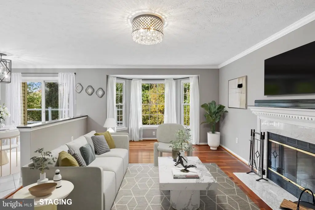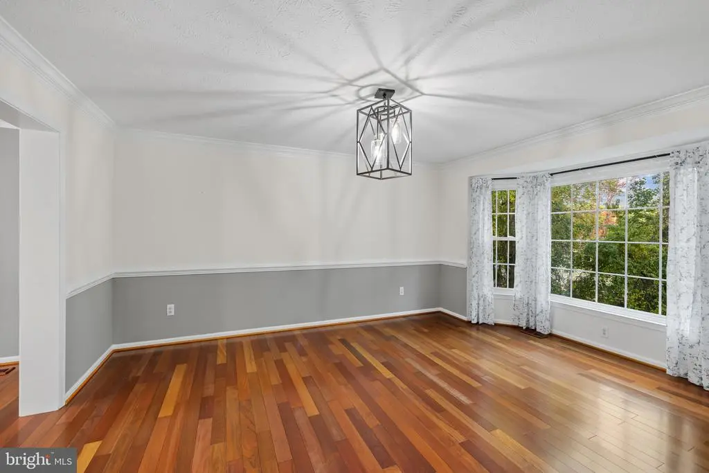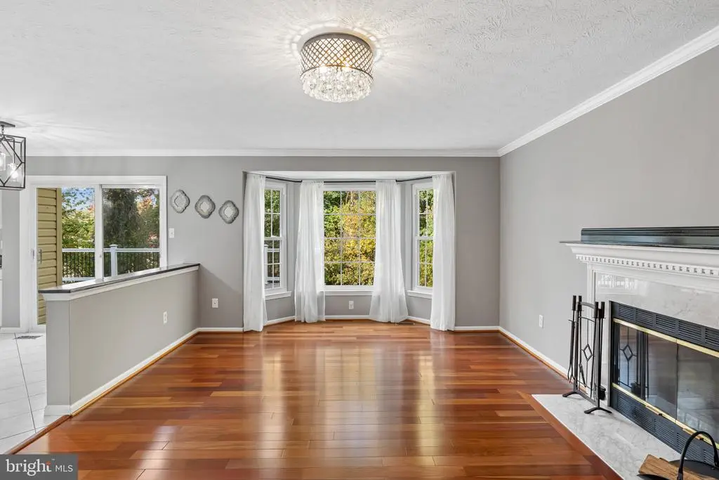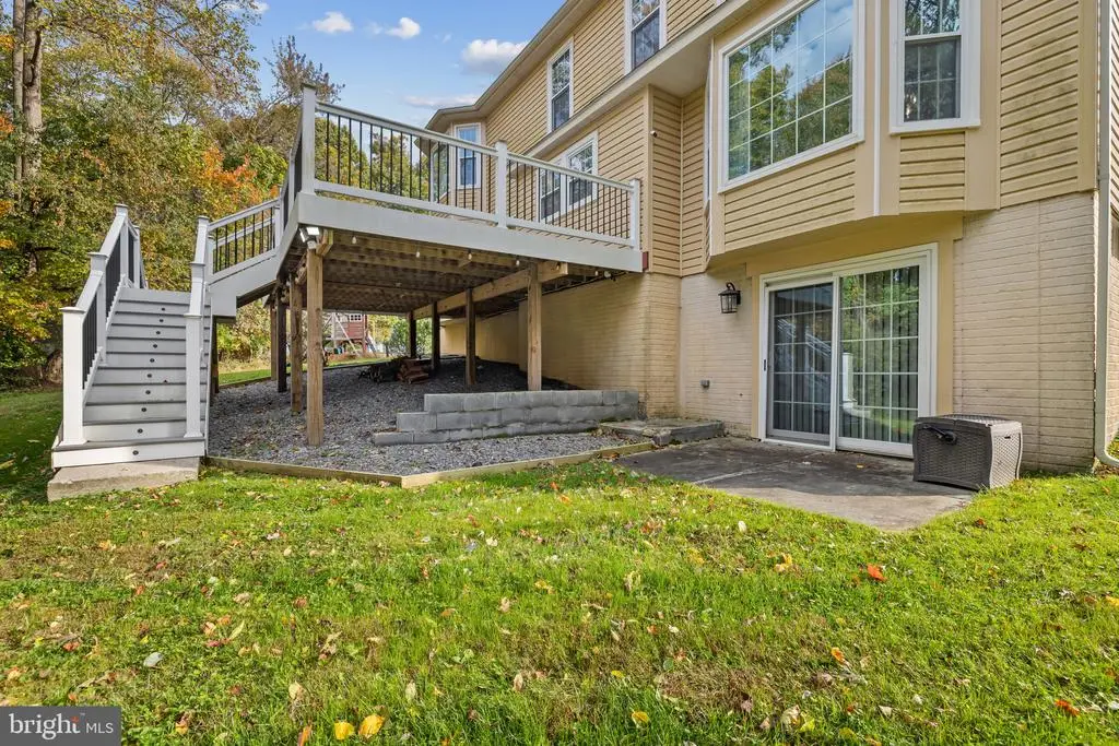 Elegant contemporary residence offering 4 bedrooms, 3.5 bathrooms, and 3,584 finished square feet, ideally situated on a cul-de-sac in desirable Hunters Glen. A grand two-story foyer welcomes you into the traditional main level, where the formal living room flows seamlessly into the formal dining room featuring bay windows, a chair rail molding, and hardwood floors. The spacious family room offers a wood-burning fireplace, bay windows, and a sparkling chandelier, creating a warm and inviting atmosphere for gatherings. The kitchen is both functional and bright, complete with a central island with breakfast bar seating, granite countertops, white cabinetry, a pantry, and a cozy breakfast area with sliding glass doors providing access to the deck. A powder room and a laundry room complete the main level. Upstairs, you'll find four spacious bedrooms with hardwood floors throughout, including the primary suite with a bay window, vaulted ceilings, a walk-in closet, and a spa-inspired en-suite bathroom featuring a dual-sink vanity, a jetted tub, and a separate water closet. A second full hallway bathroom serves the additional bedrooms. The walk-out lower level offers a large wraparound recreation room and two unfinished rooms perfect for storage or future customization. Outdoor highlights include a charming front porch, a 2-car garage, solar panels, and steps leading to a small backyard patio. The backyard backs to mature trees, offering a private and peaceful setting ideal for relaxing or entertaining.Recent updates included: Upper Level Bath Remodel [2023], Basement Bath Full Remodel [2023], New Dishwasher [2022], Roof Replaced [2021], Windows [2021], New Siding [2021] Water Heater [2021]