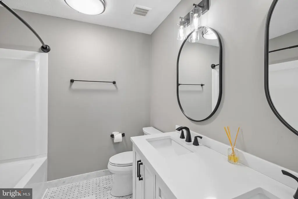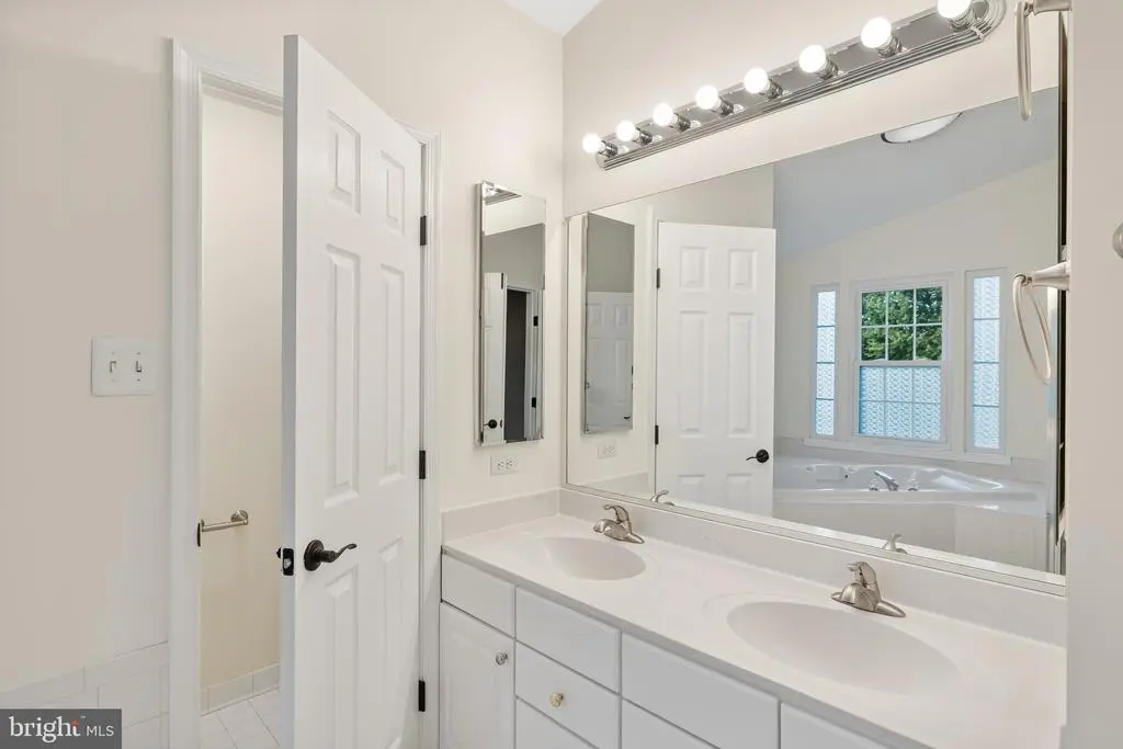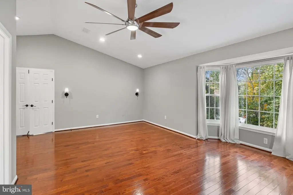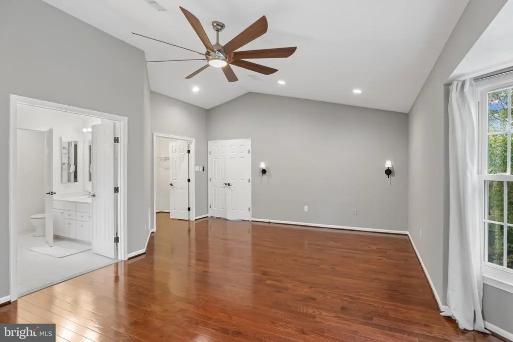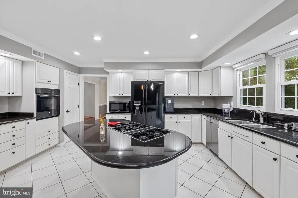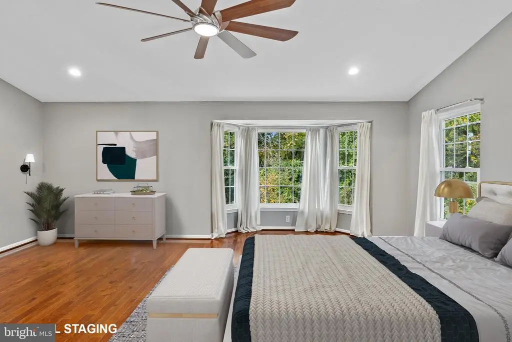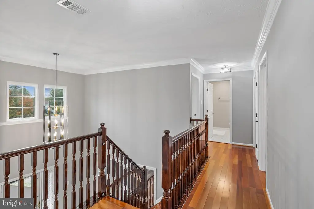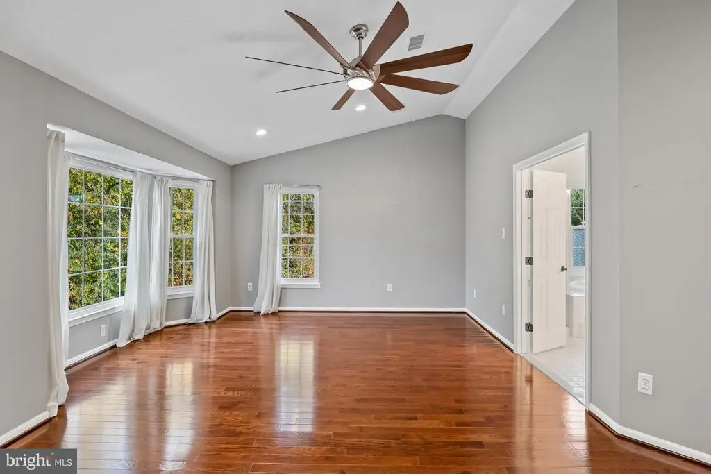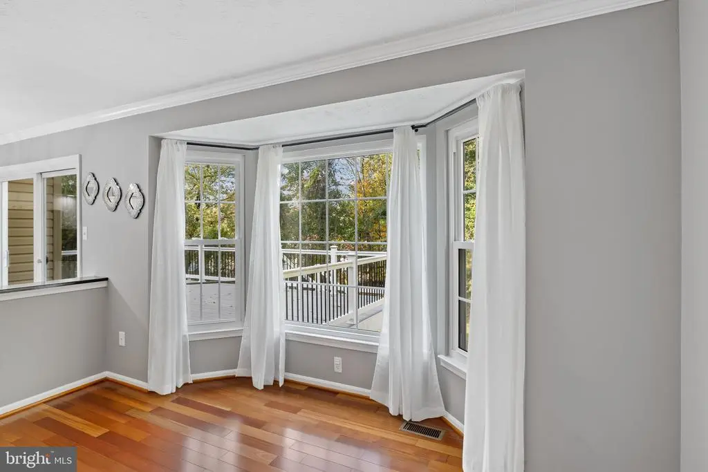 Elegant contemporary residence offering 4 bedrooms, 3.5 bathrooms, and 3,584 finished square feet, ideally situated on a cul-de-sac in desirable Hunters Glen. A grand two-story foyer welcomes you into the traditional main level, where the formal living room flows seamlessly into the formal dining room featuring bay windows, a chair rail molding, and hardwood floors. The spacious family room offers a wood-burning fireplace, bay windows, and a sparkling chandelier, creating a warm and inviting atmosphere for gatherings. The kitchen is both functional and bright, complete with a central island with breakfast bar seating, granite countertops, white cabinetry, a pantry, and a cozy breakfast area with sliding glass doors providing access to the deck. A powder room and a laundry room complete the main level. Upstairs, you'll find four spacious bedrooms with hardwood floors throughout, including the primary suite with a bay window, vaulted ceilings, a walk-in closet, and a spa-inspired en-suite bathroom featuring a dual-sink vanity, a jetted tub, and a separate water closet. A second full hallway bathroom serves the additional bedrooms. The walk-out lower level offers a large wraparound recreation room and two unfinished rooms perfect for storage or future customization. Outdoor highlights include a charming front porch, a 2-car garage, solar panels, and steps leading to a small backyard patio. The backyard backs to mature trees, offering a private and peaceful setting ideal for relaxing or entertaining.Recent updates included: Upper Level Bath Remodel [2023], Basement Bath Full Remodel [2023], New Dishwasher [2022], Roof Replaced [2021], Windows [2021], New Siding [2021] Water Heater [2021]