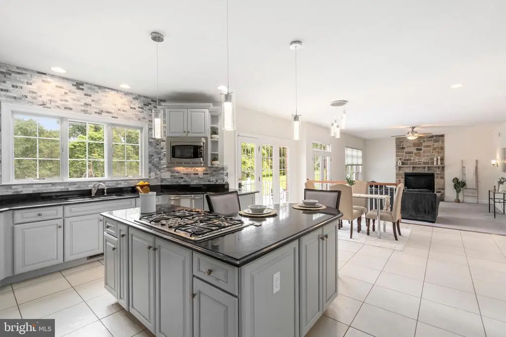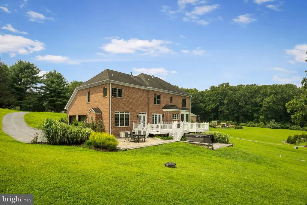 Welcome to 5 Fox Field Court, a timeless all-brick colonial tucked away at the end of a quiet cul-de-sac in one of the area’s most picturesque communities. Set on more than four acres of landscaped grounds, this home blends classic architecture with modern updates, offering over 5,000 square feet of comfortable and stylish living space. The dramatic two-story foyer fills with natural light, highlighting hardwood floors and detailed trim work. A private office sits to one side, while a formal living room on the other provides the perfect space for gatherings. The gourmet kitchen is the heart of the home, featuring stainless steel appliances, granite countertops, gray cabinetry, and a designer backsplash. The sunny breakfast nook flows into a warm family room with a brick fireplace. Hosting special occasions is easy in the formal dining room with crown molding and chair rail accents. A powder room and laundry area complete the main level. Upstairs, the primary suite is a retreat with hardwood floors, dual walk-in closets, a gas fireplace, and a spa-like bath with soaking tub, dual vanities, and glass shower. Three additional bedrooms and two full baths provide generous space for family and guests. The finished lower level offers a second family room, large recreation space with a custom wet bar, a bonus room, full bath, and plenty of storage. Step outside to enjoy a stone patio, freshly painted multi-level deck, and hot tub. A peaceful creek runs along the back of the property, while an oversized two-car garage and spacious driveway provide ample parking. Recent updates include: deck painting (2025), well tank (2024), second-floor AC (2024), refrigerator (2023), hot tub (2022), stone patio and landscaping (2021), radon system (2021), full kitchen renovation (2020), new carpet (2020), Generac generator (2020), and security system (2020). 5 Fox Field Court is more than a home. It is a lifestyle of comfort, privacy, and refined living.