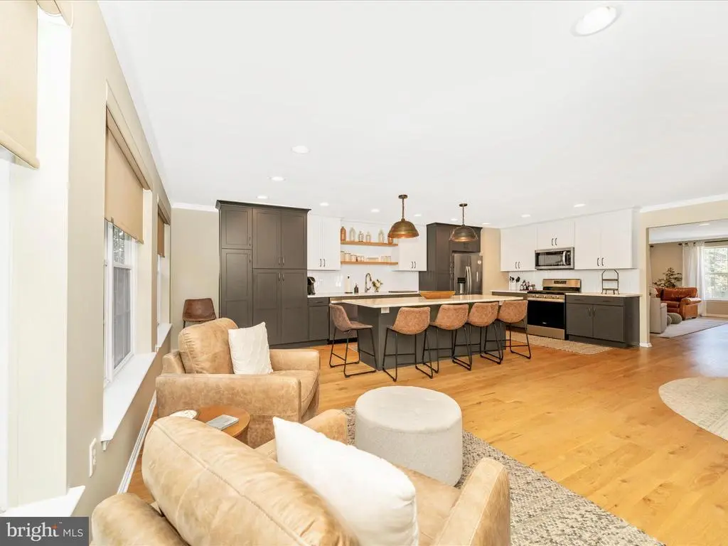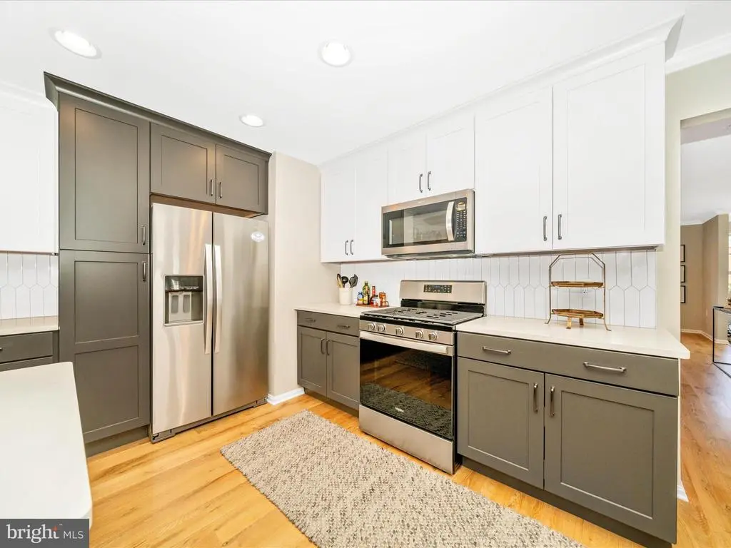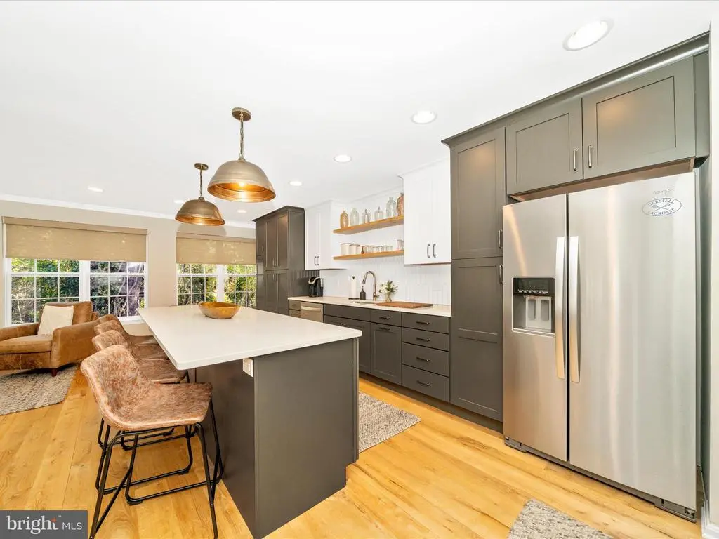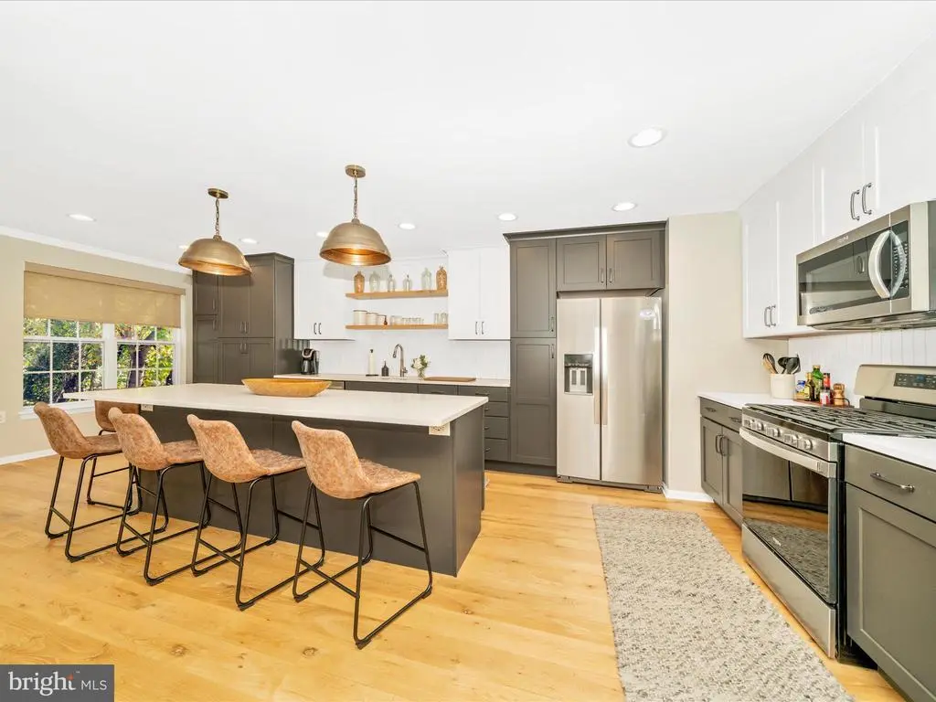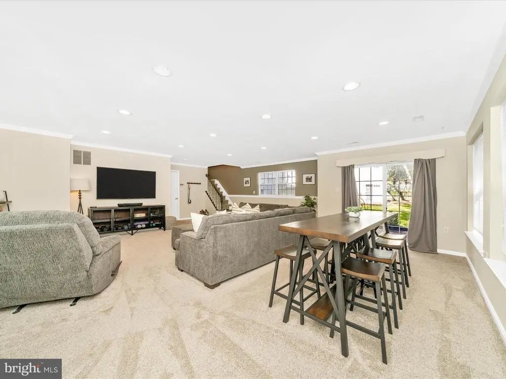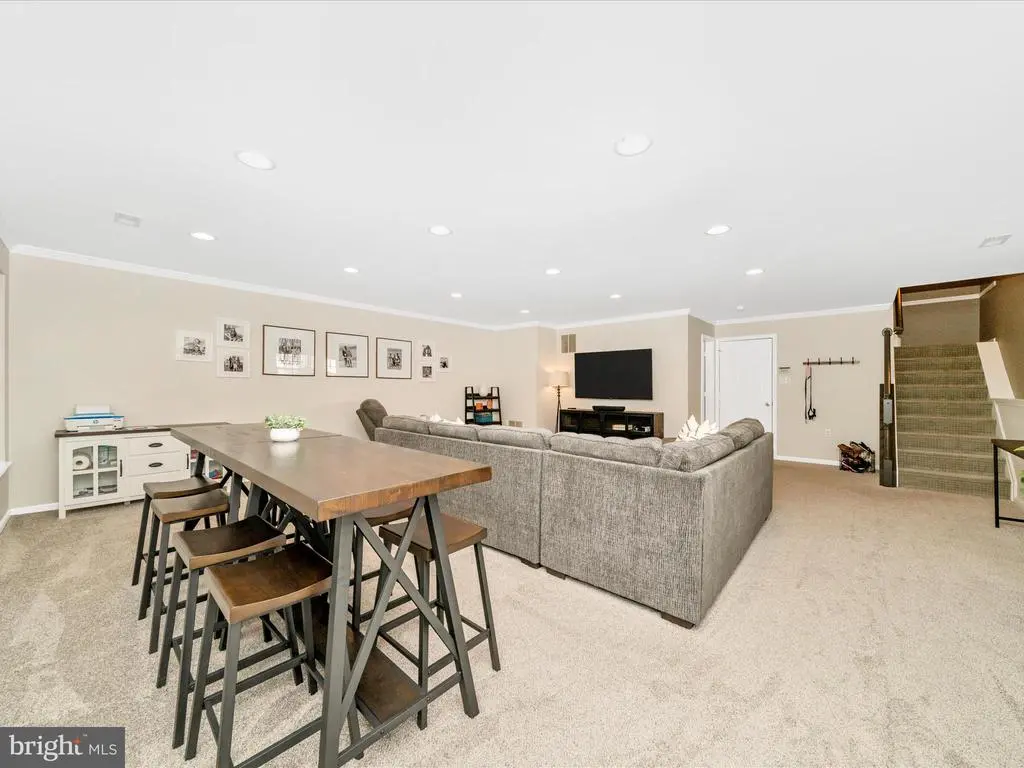 Tucked inside the sought-after gated community of Goldsborough Manor, this beautifully renovated, FULLY furnished, being sold AS IS, and move-in ready three-level end-unit townhome/condo offers 3 bedrooms, 2 full and 2 half baths, and a spacious two-car garage. Perfectly positioned on a quiet cul-de-sac at the back of the community, this home combines privacy, comfort, and modern design. Recent upgrades include a NEW roof, HVAC system, carpet/flooring, stainless steel appliances, and window treatments, ensuring both style and peace of mind. Inside, you’ll find custom Livesawn White Oak hardwood floors by TBM, elegant crown molding, recessed lighting, neutral paint, and plush carpeting on the first and third levels. The main level features an open-concept living room with bright natural light, recessed lighting, and a framed TV, flowing seamlessly into the eat-in gourmet kitchen with gas cooking, stainless steel appliances, premium quartz countertops, a large island with seating, tile backsplash, 42-inch cabinets, and a generous pantry. The kitchen showcases premium quartz countertops, blending high-end design with everyday practicality. A casual dining nook surrounded by bay windows creates a warm, cheerful atmosphere for everyday meals. Upstairs, the oversized primary suite offers a spacious walk-in closet and a private ensuite bath with a soaking tub, walk-in shower, and double vanity. Two additional bedrooms, a full bath, and a convenient laundry closet complete the upper level. The fully finished lower level expands the living space with a large family room, powder room, sliding glass doors leading to the ground-level patio, and direct access to the two-car garage. Condo fees include yard maintenance, common area care, and water service, providing a low-maintenance lifestyle. Set within a private enclave just off Reisterstown’s Main Street, this well-maintained home is moments from shopping, dining, and only minutes to I-795 - offering both convenience and community in one of Reisterstown’s most desirable gated neighborhoods.