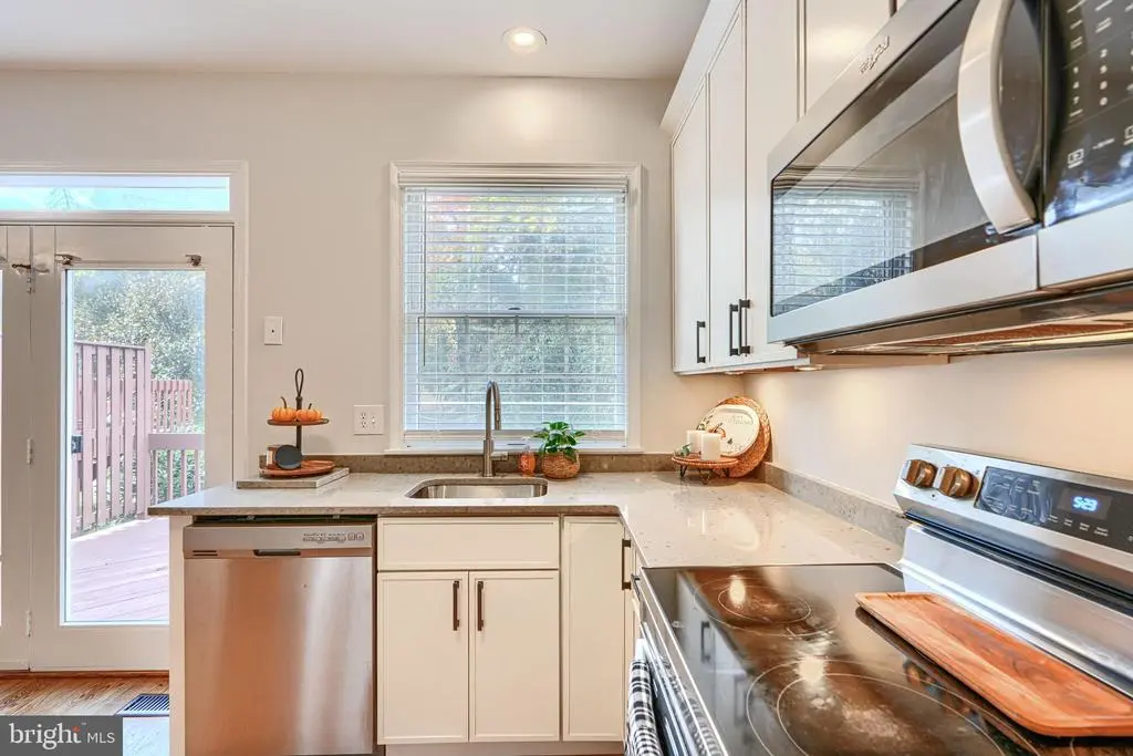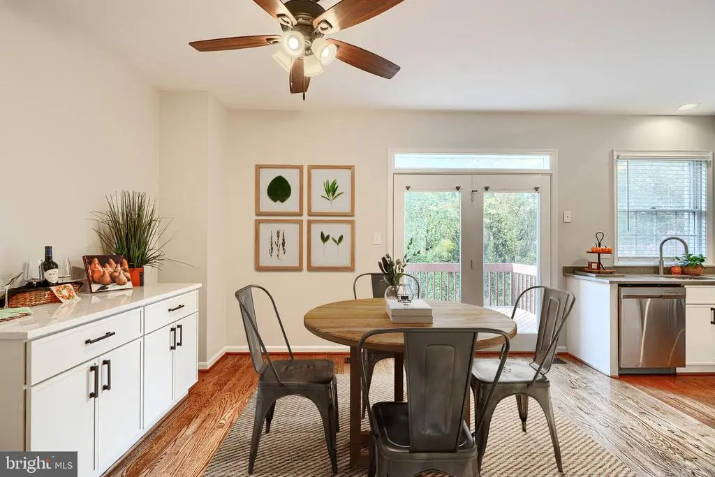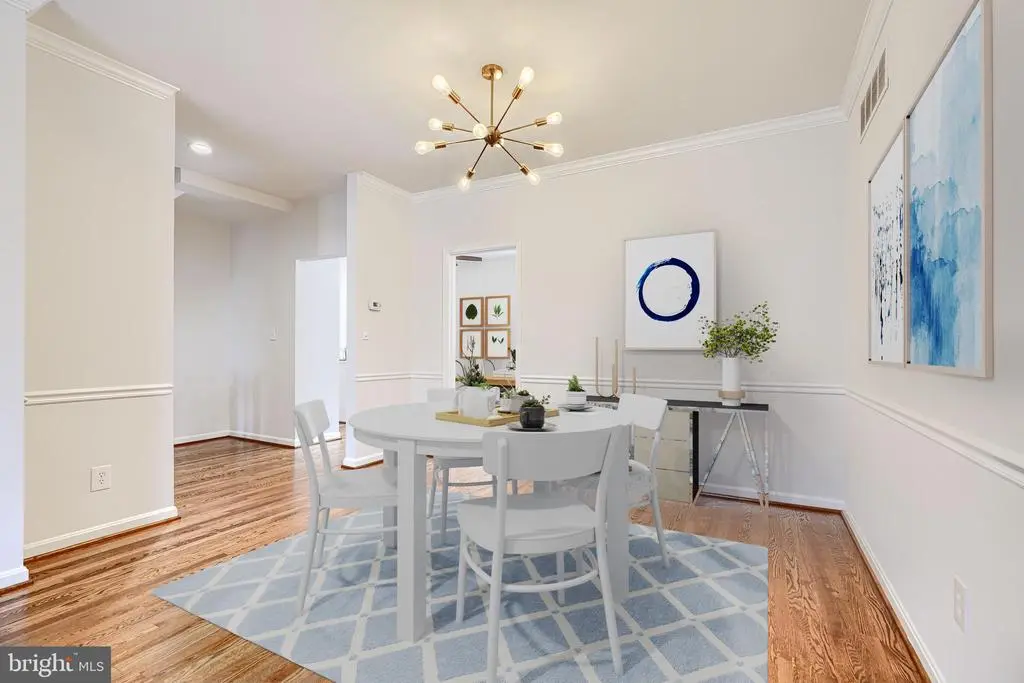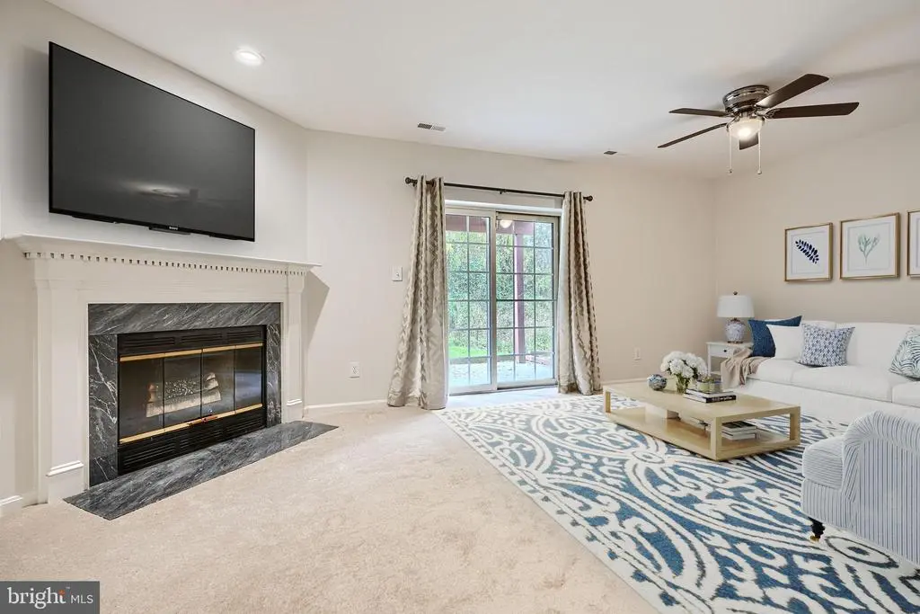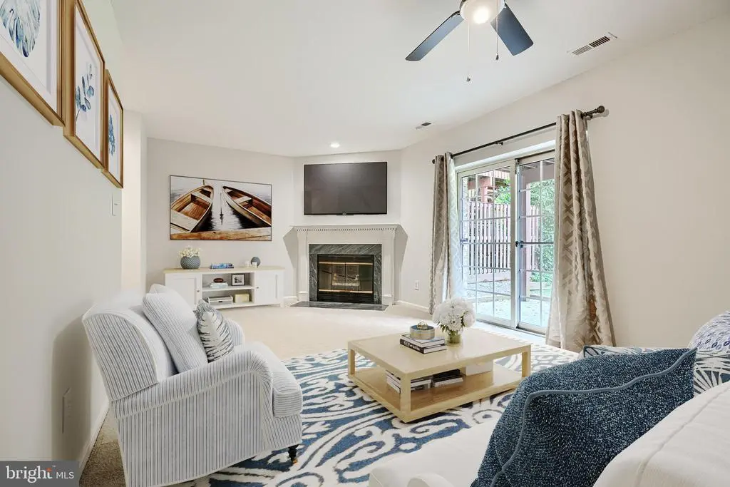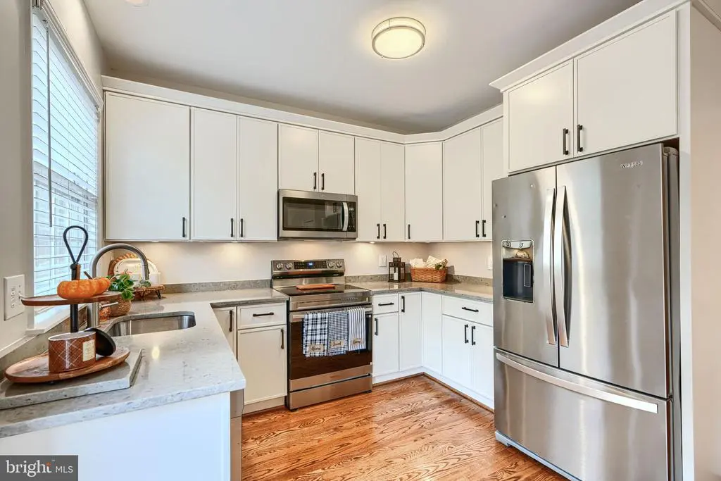 Beautifully maintained and rarely available three story, garage townhome in The Towns at Five Farms, located in Mays Chapel Village. With 2,200 square feet of total living area over 3 finished levels, only one lucky buyer will enjoy its' many features and upgrades. The entry level boasts new luxury 10-year warrantied plush carpet in the family room with a wood burning fireplace and slider to the back patio. An updated powder room, separate laundry room and access to the garage complete this level. The main level features an open floor plan with newly refinished gleaming hardwood flooring and a spacious updated kitchen spanning the entire back of the home, remodeled with new cabinetry, quartz countertops, stainless steel appliances and a sliding glass door leading to a wood deck; a remodeled powder room, dining room and cozy living room with crown moldings defining the 9' ceilings. The top level consists of a generous sized primary bedroom with his and her walk-in closets, a vaulted ceiling, a primary bathroom with vaulted ceilings, skylight, double vanities, Jacuzzi soaking tub and separate shower. Two additional bedrooms with vaulted ceilings and a full bath complete this level. The entire upper level has also been adorned with brand new plush carpet. Note there are four bathrooms, 2 full with either a shower or tub/shower combination and two powder rooms throughout the home for one’s convenience as well as a two-zoned HVAC system for efficiency. Relax on the back deck and enjoy a peaceful and serene location backing to trees and enjoy tons of open space throughout the community. This court has an abundance of auxiliary parking - great for all your guests! The entire interior has been freshly painted to make this home move-in ready for its’ next resident. Other recent updates include: Tesla Electric Vehicle Charger - 2025. This charger can be used on other electric vehicles with the addition of an adapter (not included), Samsung Electric Stove - 2025, Whirlpool Microwave - 2024, Whirlpool Refrigerator - 2023, Whirlpool Dishwasher - 2025, GE Clothes Dryer - 2023, LG Clothes Washer - 2025, Carrier HVAC - 2012, Roof - Approx 2013. Our self-managed HOA takes pride in the beautification of this neighborhood gem to ensure it continues to thrive. A rare find!