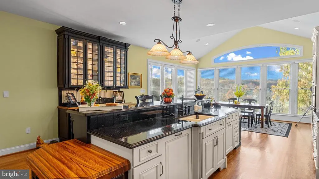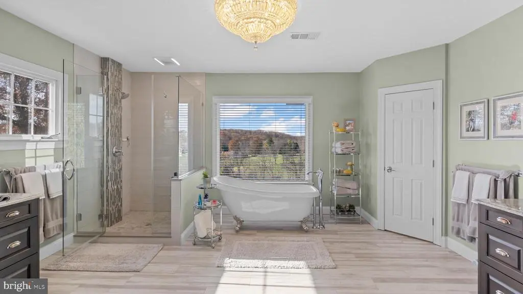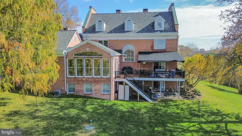 Stately all-brick colonial in the prestigious Lambourne Downs / Western Run Valley community, offering approximately 8,500± sq. ft. of finished living space on 4.6± scenic acres. Boasting exquisite curb appeal with professional landscaping, brick paver walkways and patios, covered front porch, side-load 2-car garage, ample off-street parking, updated architectural shingle roof, and sweeping views of the valley. Step inside the grand marble foyer showcasing crown, dentil, and chair rail moldings, wainscoting, wall sconces, fireplace, and a stunning curved staircase. The living room off the foyer offers hardwood floors, dentil crown molding, chair rail, wainscoting, and fireplace, opening to the professional office with hardwood floors, crown and chair rail molding, wainscoting, built-ins, niche, and slider access to a covered rear deck overlooking the tranquil setting. The gourmet eat-in kitchen features hardwood floors, granite countertops, a center island with breakfast bar, recessed and pendant lighting, soft-close cabinetry and drawers, built-in pantry, and a coffee area with glass-paneled cabinetry. Built-in appliances include a side-by-side refrigerator, wall oven, built-in microwave, electric cooktop, and range hood. The adjoining breakfast area with cathedral ceiling provides access to the rear deck, ideal for morning coffee or casual dining. Off the kitchen, the enormous great room impresses with hardwood floors, crown and chair rail moldings, wainscoting, gas fireplace, wet bar, access to the garage, and access through a sliding glass door to one of the beautiful brick paver patios. The formal dining room is equally elegant with hardwood floors, dentil crown molding, wainscoting, fireplace, and a stunning Palladian window. The main level also includes a dual-access powder room and second staircase to the upper level. Ascend the curved staircase illuminated by a chandelier to the luxurious primary suite offering a fireplace, crown molding, carpet flooring, massive walk-in closet with balcony access, and a fully updated ensuite featuring frameless glass shower, clawfoot soaking tub, water closet, and dual granite vanities—one with extra storage and one with dressing area. The upper level continues with a dual-entry full bath, second bedroom with double-door closet, third bedroom with fireplace, crown molding, and double-door closet, laundry room, and fourth bedroom with private ensuite bath. The top level hosts a sprawling bonus room with carpet flooring, dormer windows, ceiling fans, zoned HVAC, walk-in closet, and access to an exercise room—perfect for recreation, hobbies, or studio use. The multipurpose lower level includes fifth and sixth bedrooms (one carpeted, one tile), full bath, utility room, recreation room with fireplace and full stone hearth, recessed lighting, and tile flooring, plus a game room with slider to the covered rear patio. Outdoor living is extraordinary with a composite rear deck with vinyl railings and awning, covered patio with additional storage, three brick paver patios, and a charming covered front porch—all surrounded by tranquil valley scenery. Additional highlights include three-zone HVAC, exceptional craftsmanship, and numerous high-end upgrades throughout. Combining timeless architecture, luxurious finishes, and peaceful surroundings, this remarkable estate offers an unparalleled living experience in one of Baltimore County’s most sought-after locations.