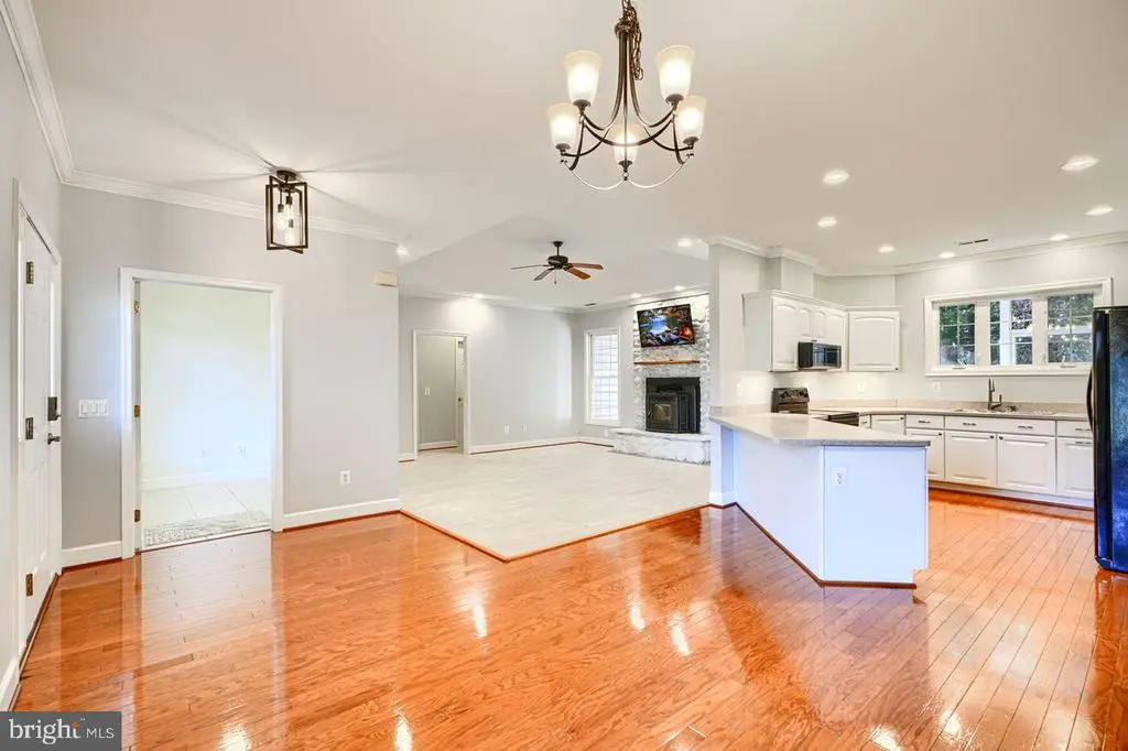 Welcome to this stunning, handicap-accessible rancher on a spacious, private lot. The home’s exceptional curb appeal is highlighted by a high-peaked roof, an oversized two-car garage, and a covered front porch. Inside, an open-concept floor plan with 9-foot+ tray ceilings and a stone fireplace with a pellet insert creates a cozy yet elegant atmosphere. The west wing features two generous bedrooms with custom built-ins and a full bath, while the east wing house a substantial laundry room with a washer and dryer. The owner's suite is a true retreat, boasting tray ceilings and an enormous en-suite bath with dual vanities, a separate soaker tub and shower, and two walk-in closets. Enjoy the outdoors from the screened-in porch, which overlooks a fenced yard, with a private, wooded area extending beyond for added seclusion. An additional office off the foyer is perfect for remote work, and massive storage space is available above the garage. For the avid boater or dinner, numerous marinas and multiple restaurants are within walking distance.