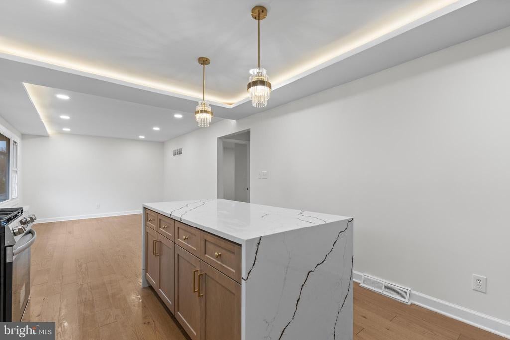 One of a Kind, Elegant, and Beautifully Renovated 3bedroom, 2 Bathroom Rambler in Woodlawn! Step into what feels like new construction. Every detail has been thoughtfully upgraded — featuring a new roof, new HVAC system, new energy-efficient appliances, and high-end finishes throughout. The gourmet kitchen is a showstopper, complete with quartz countertops, soft-close solid wood cabinetry, and premium stainless steel appliances. The upper level offers two spacious bedrooms and a stylishly remodeled full bath, while the fully finished lower level serves as a private retreat. Enjoy a large primary suite with a massive walk-in closet, a luxurious bathroom flooded with natural light from new oversized windows, and a cozy family room with a fireplace and built-in media setup—perfect for relaxing or entertaining. Step outside to a screened-in porch and an expansive deck, ideal for family gatherings or quiet mornings. The backyard offers additional outdoor space for recreation and relaxation.The location is perfect for commuters being right off route 70 and other major highways! With its modern upgrades, spacious layout, and timeless design, this home truly stands out. Don’t miss your chance—this one won’t last long!