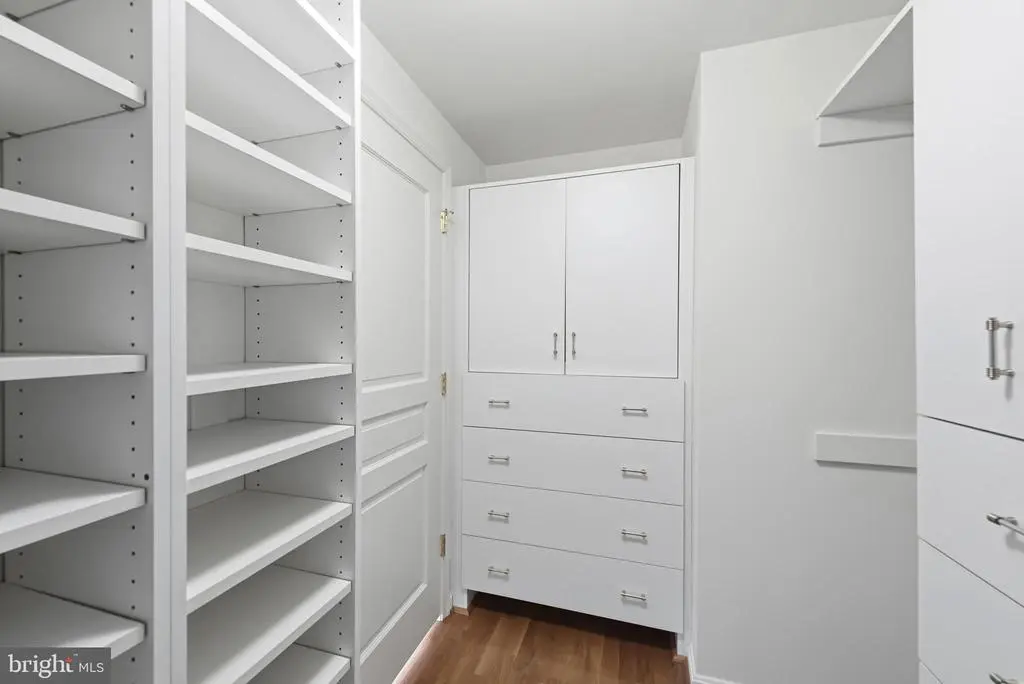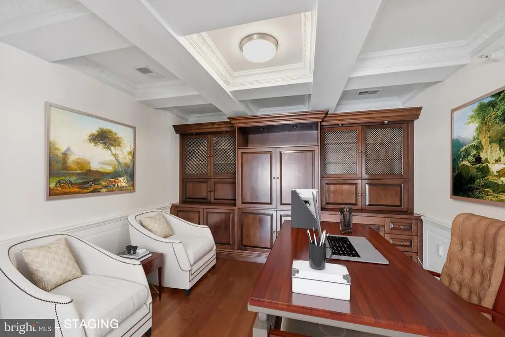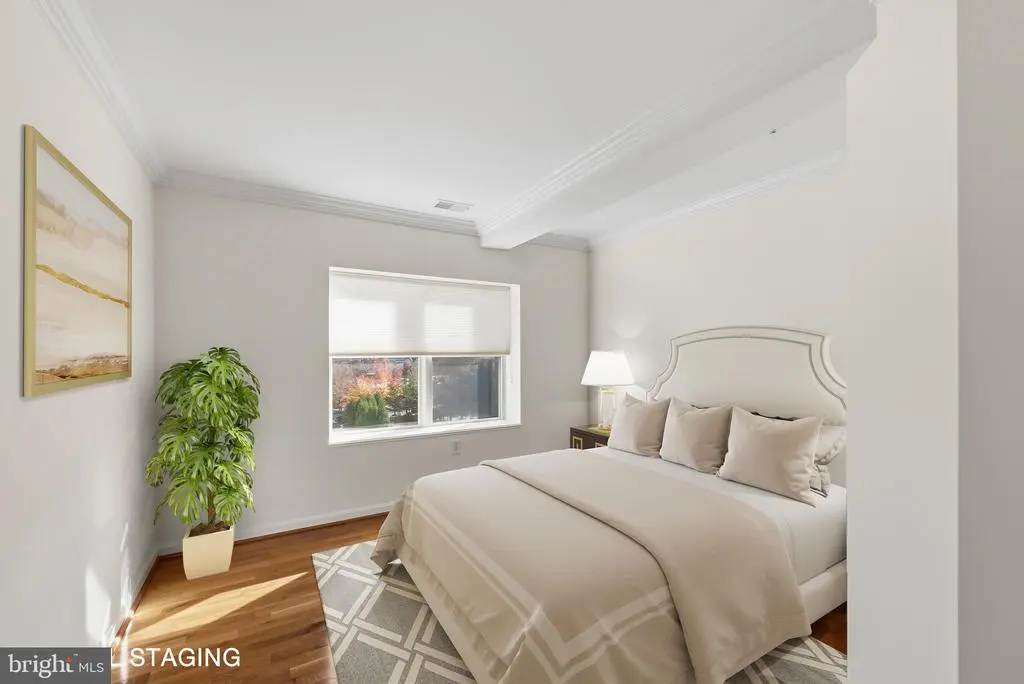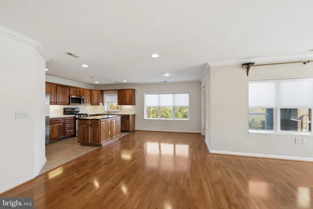 Rarely available, gently used, well maintained, 2 BR 2 BA, 1733 sq. ft. Deluxe end unit with assigned GARAGE PARKING. #44. It has East, South, West exposure, and has been freshly painted. Open foyer reveals gleaming hardwood floors leading to a light-filled living room with a gas fireplace. Expansive crown molding, picture frame molding, solid wood six panel doors and Hunter Douglas blinds are just some of the custom features offered in this unit. The den/office has a coffered ceiling and built-in cabinetry. A large light-infused family room off the kitchen expands the living area. The kitchen with walnut finish cabinets, pull out shelving, stainless steel appliances, granite counter tops, and a central island are a cook’s delight. The laundry/utility room is off the kitchen as is the south-facing balcony. Your clothes will be well organized in the custom California style closets. An additional storage cage is on the same floor thus completing your new residence. This easily accessible condo building provides all the amenities for comfortable carefree living. A shopping center and a community pool are within a short walking distance, plus many walking paths throughout the immediate area are several of the amenities in the Roundwood Ridge Community. A MUST SEE!