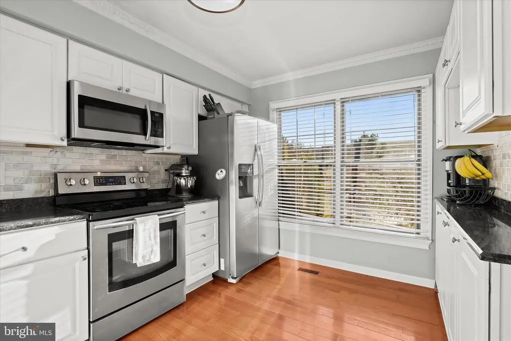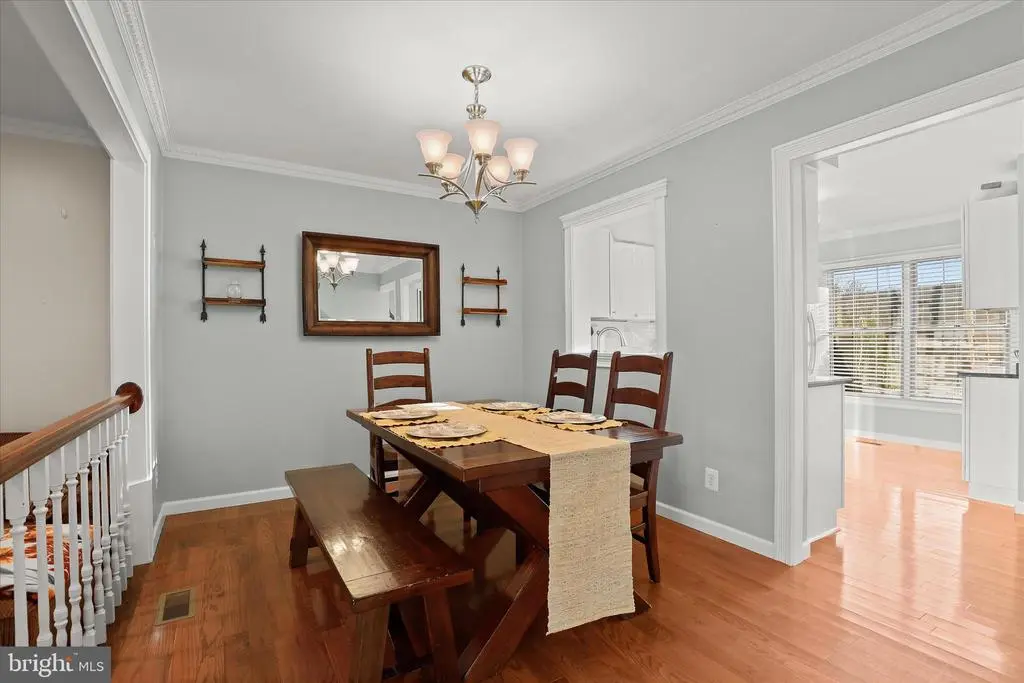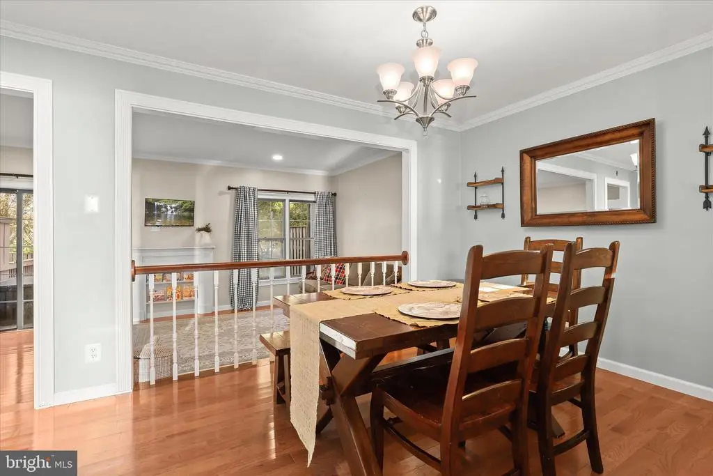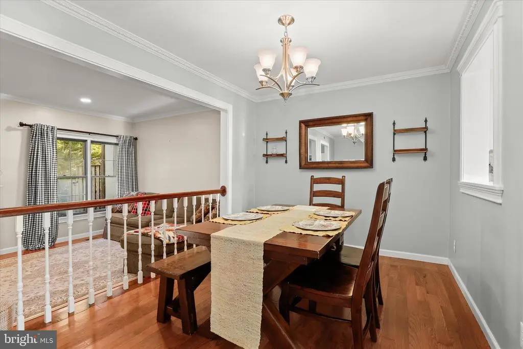 Introducing this sun-filled three bedroom, two and a half bathroom townhome in the desirable Copperfield community tucked away in Mays Chapel Enter inside the foyer where a coat closet and half bathroom add convenience. The kitchen boasts stainless steel appliances, granite countertops, and a tile backsplash. Elegant crown molding and hardwood floors grace the main and upper levels. The dining room offers a place for enjoying meals with loved ones, and the living room features sliding glass doors out to the deck. Upstairs, the primary bedroom has its own private bathroom, while the second and third bedrooms share a hall bathroom. Downstairs, the finished lower level includes a spacious recreation room and access outside to the patio and backyard. A laundry room, utility room and storage room complete the lower level. Enjoy spending time outside in the backyard whether relaxing or entertaining. Backing to the Valley Fields North park with a playground, picnic pavilion and sports field. Recent updates include a brand new roof just replaced in November 2025.