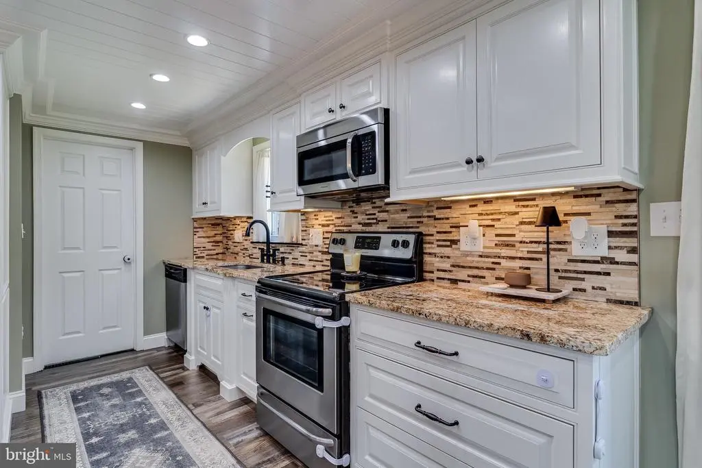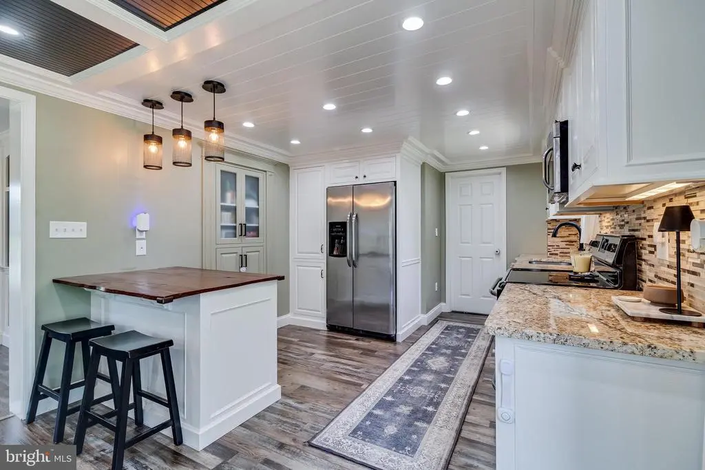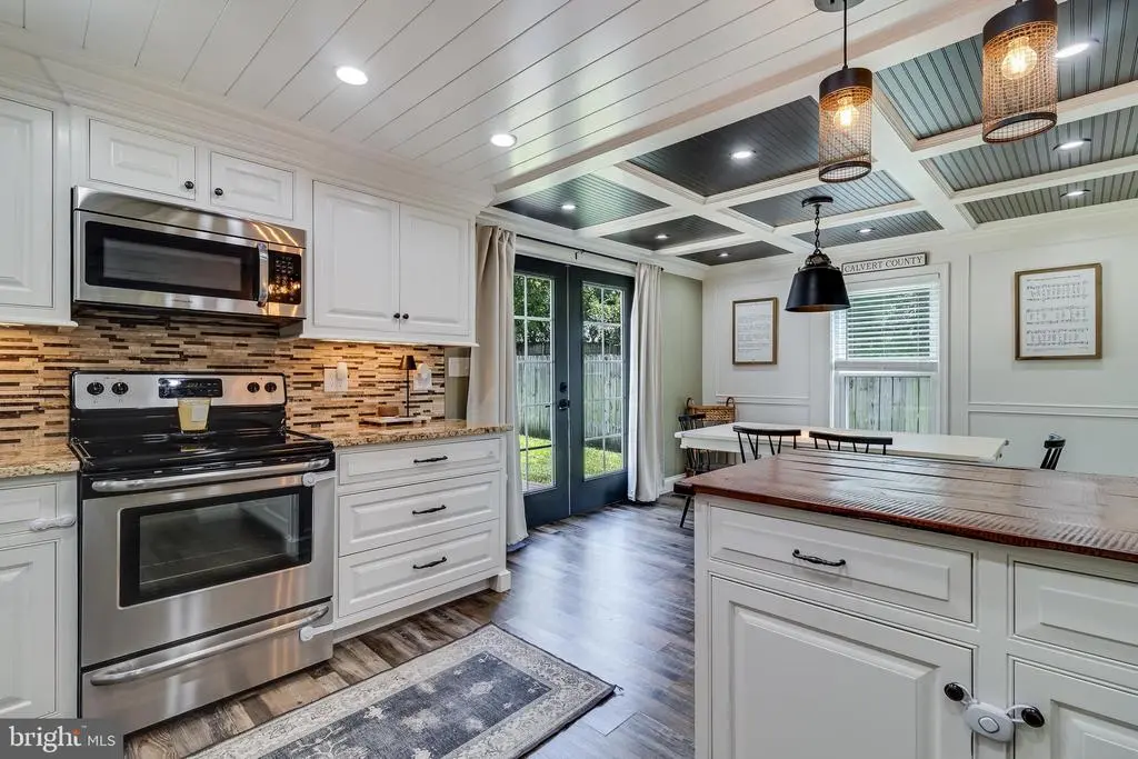 This charming Cape Cod, tucked at the end of a quiet street in Saint Leonard, is full of character and thoughtful upgrades throughout. Custom trim details in every room give the home a refined, luxurious feel. The main level offers a seamless flow from the living room into the dining space and upgraded kitchen, featuring stainless steel appliances, granite countertops, and a stunning live edge wood bar for additional seating. A dedicated laundry room with a new hot water heater adds convenience & peace of mind when purchasing a home. Also on the main level is a spacious bedroom with a private full bath, perfect for a guest suite, home office, or playroom. Upstairs, you'll find two generously sized bedrooms and a beautifully updated full bathroom with a subway tile walk-in shower and continued trim work that adds style and warmth. The fully fenced backyard is ideal for relaxing or entertaining with a deck, stamped concrete patio, and connecting walkway. The crawlspace has been recently been beautifully encapsulated, the HVAC is newer, the windows are newer and it is just steps from a nearby community playground.