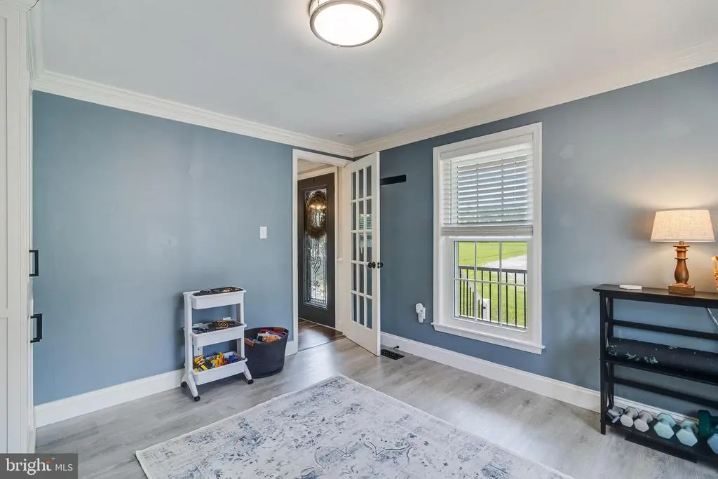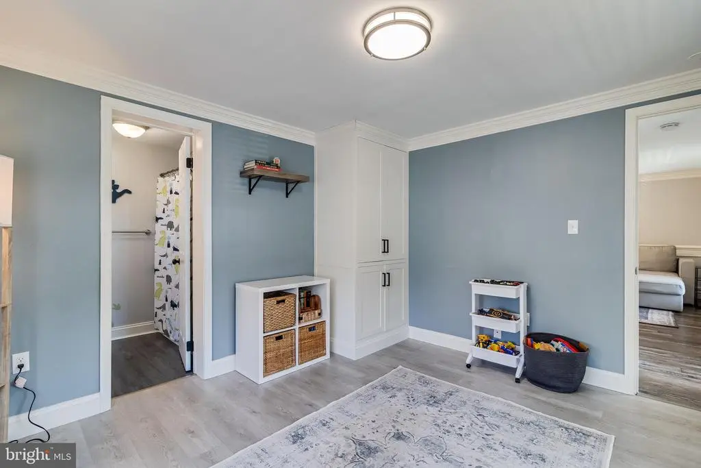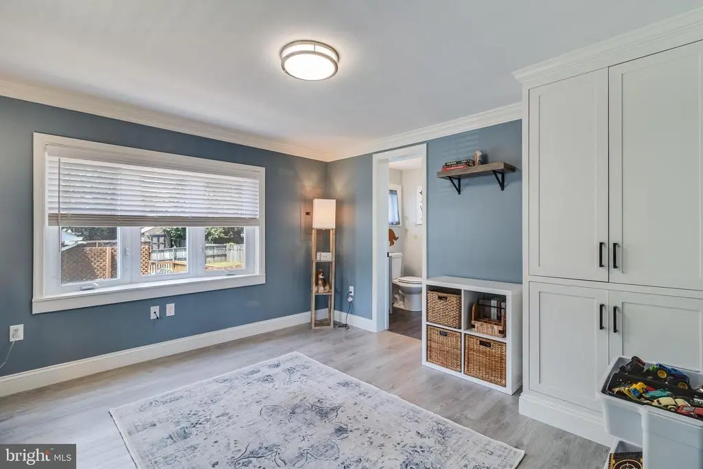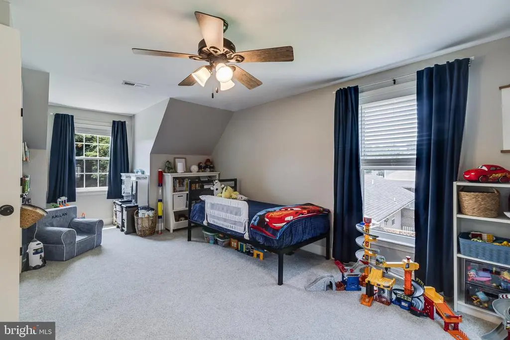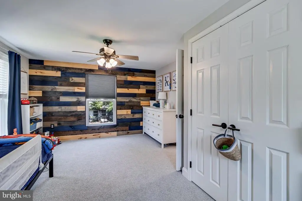 Entry Level Bedroom, Crown Moldings, Ceiling Fan(s), Carpet, Built-Ins