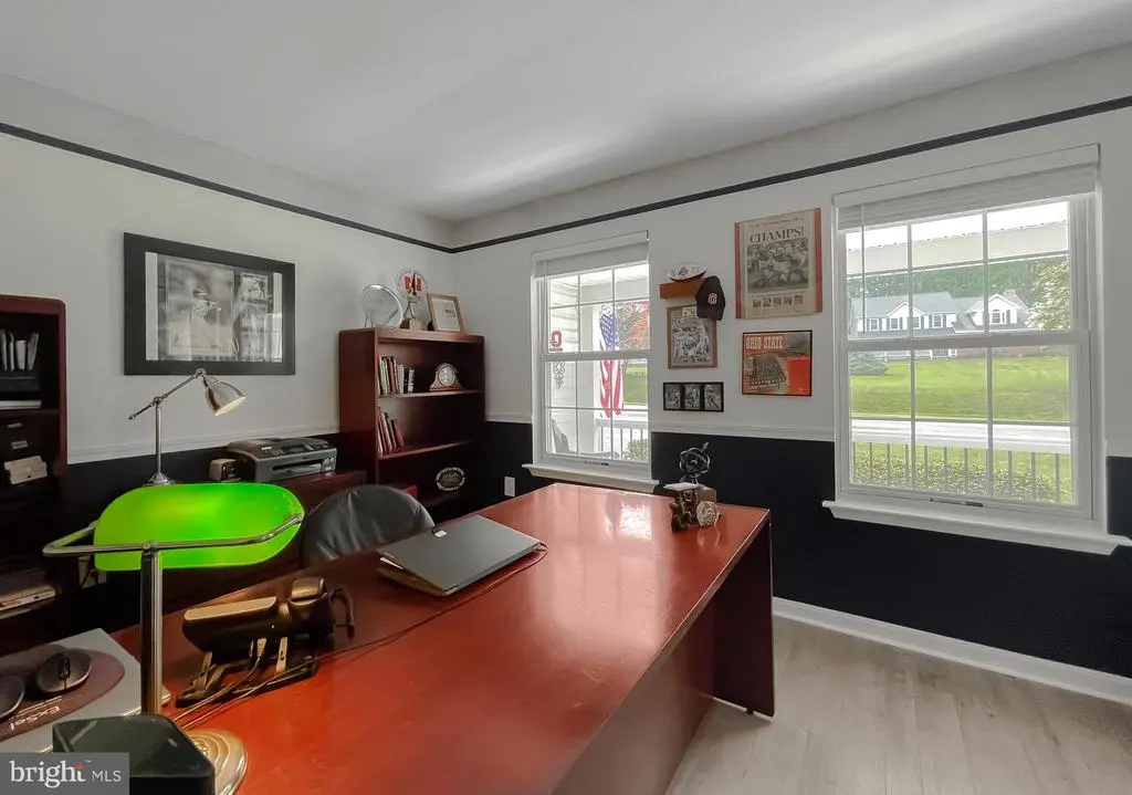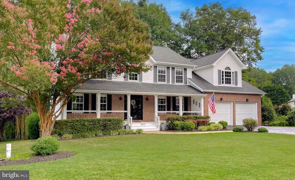 Welcome to 4070 Weeping Willow Lane in the desired Wilburn Estates community. One of Huntingtown’s most desirable neighborhoods that is known for its spacious lots, Huntingtown schools, and being built by Quality Built Homes. This traditional yet open floorplan offers comfort and functionality, starting with the freshly sealed driveway and a welcoming front porch. Step inside to find engineered hardwood floors throughout the main level, updated wrought iron railings, and modern light fixtures. A designated dining and living room combo provides flexibility for formal gatherings or showcasing your favorite furniture, while a private office is ideal for working from home. The updated kitchen with freshly painted cabinets and stainless steel appliances, opens to the breakfast nook and flows seamlessly into the great room, complete with a stone-front fireplace for cozy evenings. Upstairs, you’ll find four bedrooms plus a thoughtful fifth-bedroom conversion into a true laundry room. The expansive owner’s suite offers a sitting area, multiple closets, dual vanities, and a beautifully tiled stand-up shower. The partially finished walkout basement is designed for entertaining, featuring a wet bar and easy access to a paver patio and large backyard. An above-ground pool with newer liner and privacy trees makes this flat lot a standout! Recent updates include dual HVAC units replaced in 2022, a hot water heater and softener in 2020, a roof in 2015, a double oven in 2022, kayak pool liner and water walls in 2023, and garage doors and openers in 2025. This home combines todays updates, space for everyone, and a highly sought-after location - ready for its next chapter!
