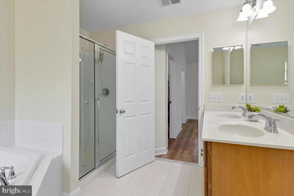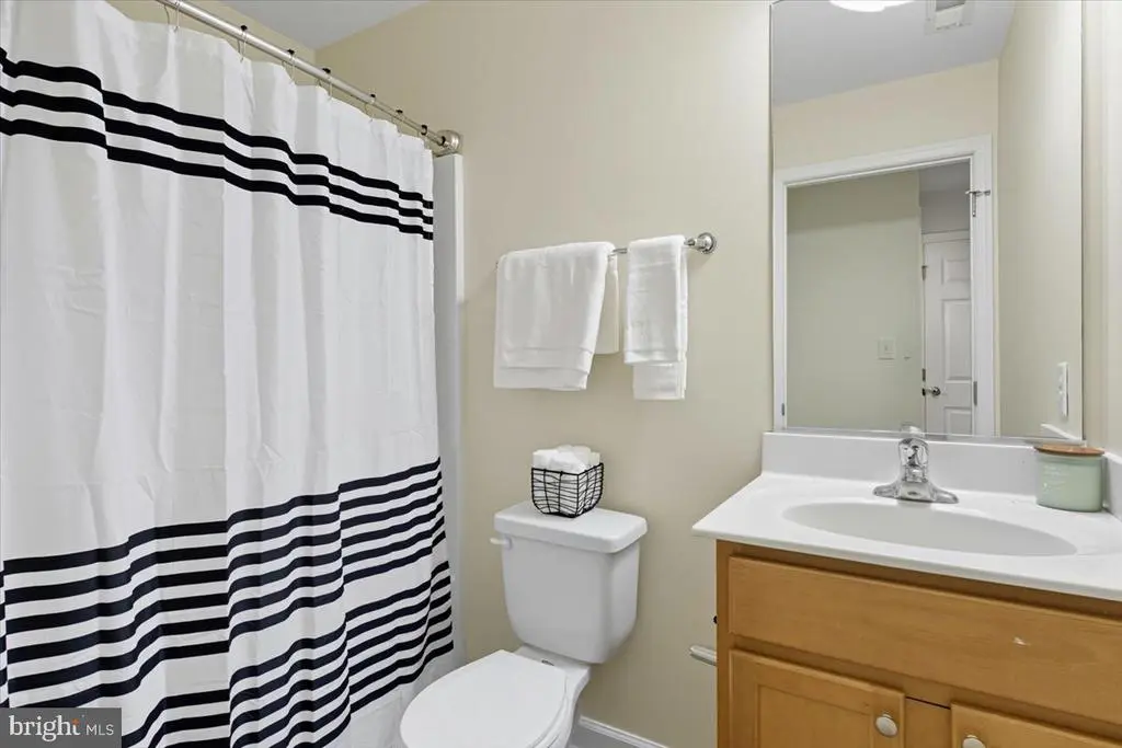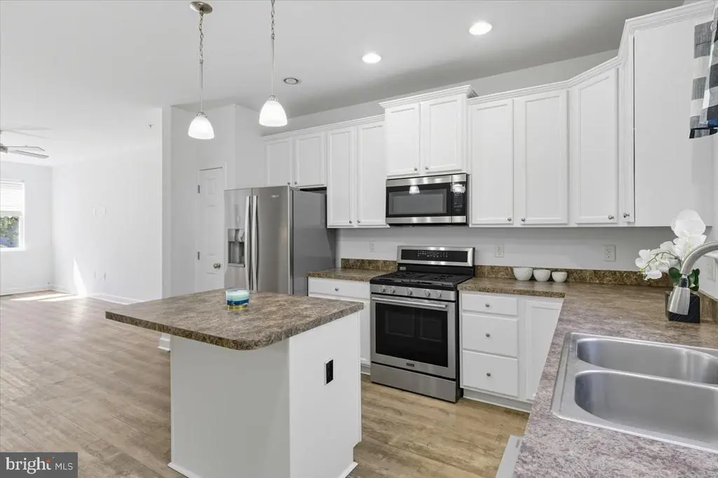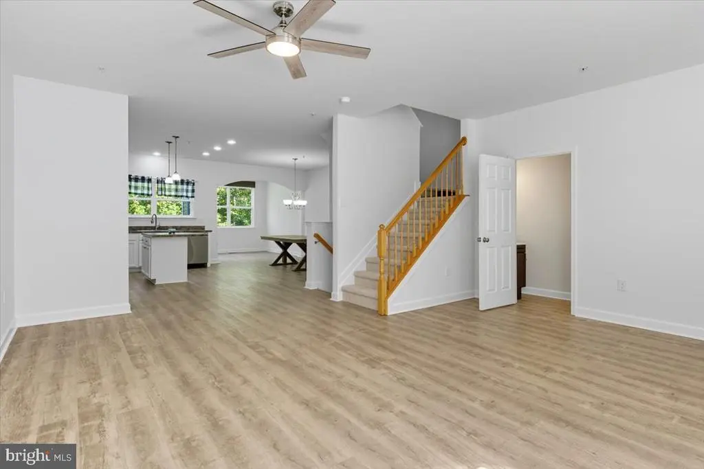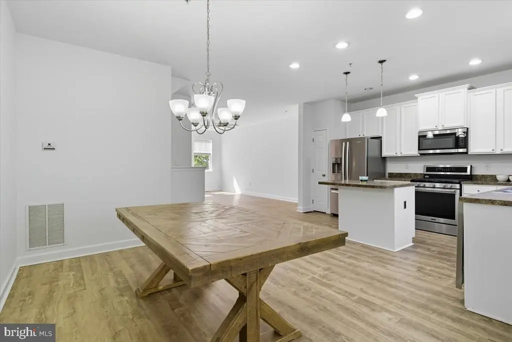 This townhome in the heart of Prince Frederick features an open floor plan on the main level, 3 bedrooms upstairs, and a finished basement with an additional bedroom, exterior entry, and attached kitchenette. The property has been freshly painted from top to bottom with new carpeting on the steps and LVP flooring on all three levels. The property also features a rear patio area with sliding door access to the basement, and a main level deck, accessed through a sliding glass door in the dining area. The lower level offers a variety of uses and offers the possibility of sharing space with long-term visitors. There is a door providing separation from the common spaces on the main level, a full bathroom on the lower level, and a kitchenette area with full-size refrigerator. The primary suite features cathedral ceilings, two walk-in closets, and a spacious en-suite bathroom. There is an additional full bathroom with shower and tub in the upstairs hall, convenient to the two additional bedrooms. The property offers easy access to all the conveniences of Prince Frederick: a five minute walk will get you to Main Street, and a five minute drive will bring you to restaurants, cafes, shopping, grocery stores, parks, and wooded trails. Commuting to DC or other metro areas? The park and ride for commuter buses is less than a five minute walk from the front door.
