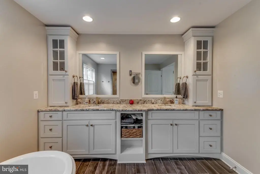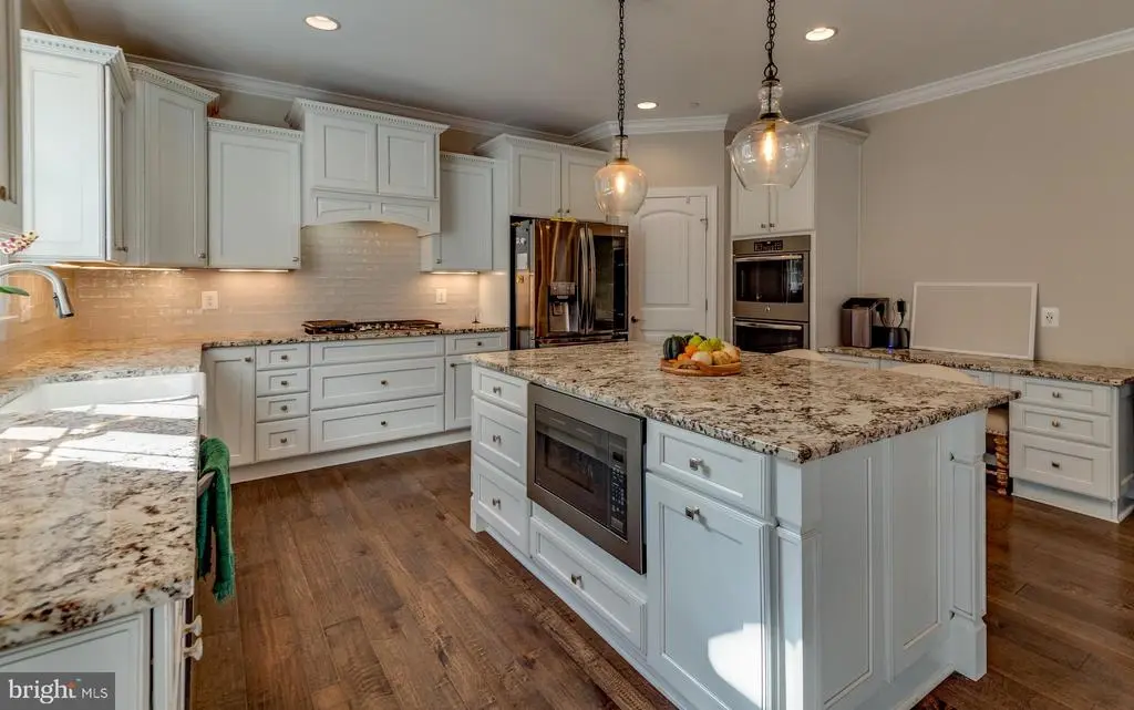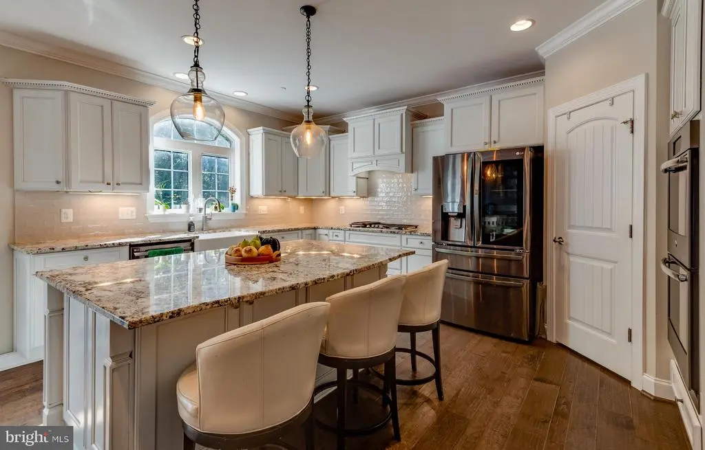 Welcome to 2412 Comptrollers Court, a stunning home that blends elegance, comfort, and modern convenience across more than 4,700 square feet of living space. With five bedrooms and five bathrooms, this property has been thoughtfully designed to fit both everyday living and entertaining. Step into the main floor, where beautiful engineered hardwoods lead you through a bright and open layout. The heart of the home is the chef’s kitchen, featuring upgraded stainless steel appliances, a gas cooktop, under-cabinet lighting, and a spacious walk-in pantry. Whether you’re enjoying a casual breakfast at the island or gathered in the dining area, this kitchen was made to bring people together. The main level also includes a welcoming family room, a formal dining and sitting area, a half bath, and a generously sized home office—perfect for working from home or creating a quiet study space. Built-in speakers extend throughout the main floor, basement, and back deck, all easily controlled by your phone or Alexa. Upstairs, the primary suite feels like a retreat. A full walk-in closet with custom built-in shelving keeps everything organized, while the spa-inspired bathroom offers a custom tiled shower, freestanding bathtub, and dual sinks. The upper floor also features three additional spacious bedrooms, two more full bathrooms, and the convenience of an upstairs laundry room. The finished basement provides even more living space, complete with a massive 86-inch TV that stays with the home, a cozy gaming nook, another full bathroom, and a large bedroom perfect for guests. Sliding glass doors lead directly outside, or take the back stairs to discover your own outdoor oasis. The backyard is designed for relaxation and enjoyment, with a fully functioning hot tub, a hardscaped fire pit for evenings with friends and family, and a roomy shed with storage for all your gardening tools and outdoor gear. From its luxurious finishes to its practical design, 2412 Comptrollers Court offers everything you need to live comfortably and entertain beautifully.