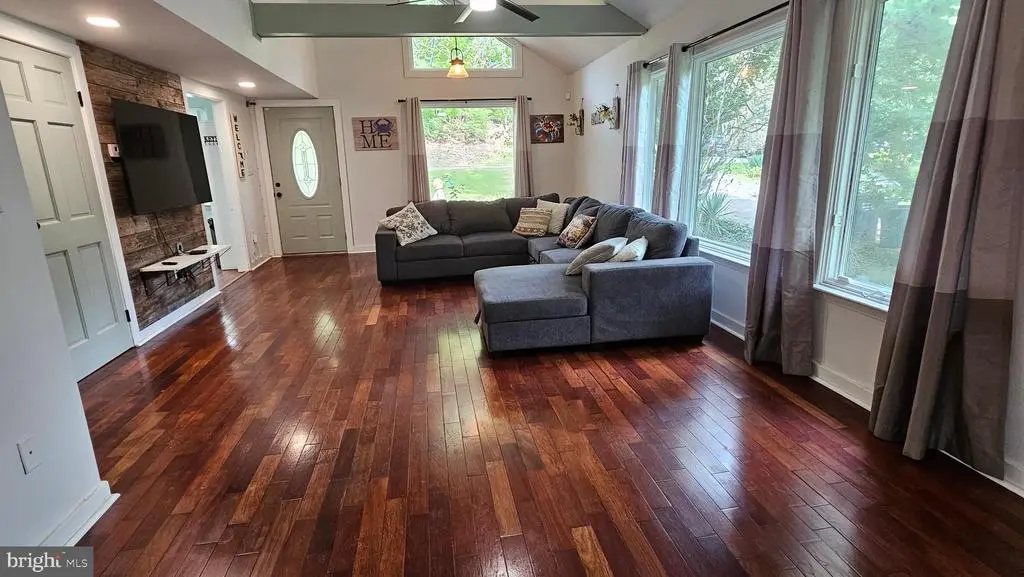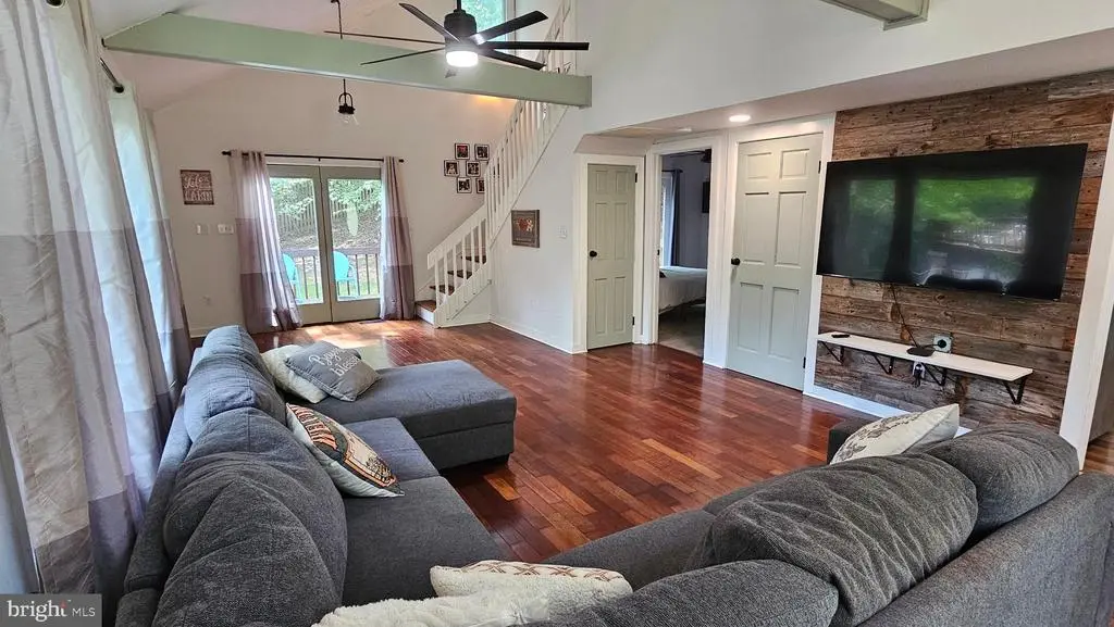 PRICED REDUCED Welcome to a charming blend of comfort and character in this updated 3-bedroom, 2-bath home tucked within a water access community. Step onto a cozy front porch before entering a warm and inviting space accented by striking wood beams in the main living area. The open concept layout connects the living and dining rooms seamlessly, complemented by wood flooring that runs through to the kitchen. The kitchen has been thoughtfully updated, offering modern function with timeless appeal. The spacious living area leads to a nice-sized deck—perfect for morning coffee or evenings under the stars—with access from both the living room and the primary bedroom. Speaking of the primary suite, it’s conveniently located on the main level, boasting an updated bathroom for added privacy and comfort. Upstairs, two additional bedrooms have been refreshed with new flooring and offer peaceful retreats for guests or home office space. Updates throughout the home mean you can move right in and start enjoying the upgraded heating and cooling system, refreshed exterior with new stain and trim, and improved crawl space insulation with moisture control improvements. Whether you’re drawn to the peaceful setting, the smart updates, or the community’s water access perks, this home manages to offer both style and practicality—without taking itself too seriously. Come see how easy living can be when a house feels just like home.