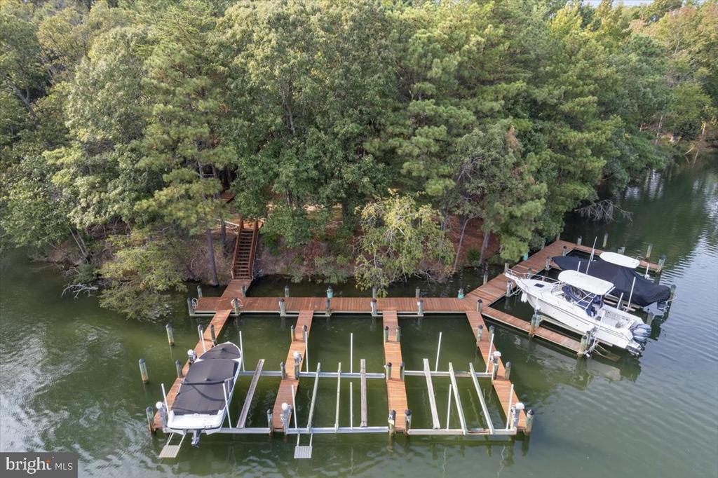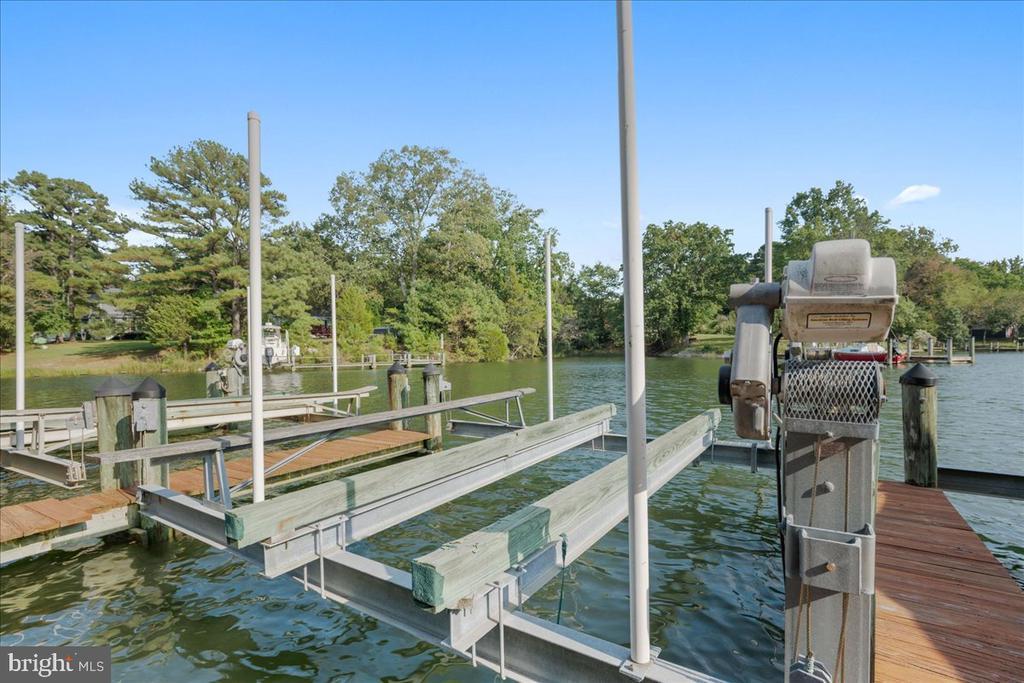 AVAILABLE NOW! Beautifully maintained, move-in ready waterfront colonial home on a quiet cul-de-sac in the Premier Point community of Solomons. The home is beautifully sited on a gorgeous .79 ac lot with 135 ft of shoreline on Back Creek and plenty of parking. The home has 3 finished levels with 4 bedrooms, 3.5 baths, 2 car garage and a total of 5,836 SF under roof. That's 4,852 finished with 984 SF of unfinished storage in the lower level. Assigned 35' x 12' boat slip (HOA owns the pier) with 12,500 lb Magnum boat lift(conveys) is accessed by a private nearby walkway easement. This is a perfect waterfront location, with easy access to Solomons Island action, the Patuxent River and the Chesapeake Bay. Take the boat to dinner, to watch fireworks, to be a part of the July 4th parade and the lighted parade at the holidays! This exciting Oxford model with dual staircase was built in 2005 by Quality Built Homes. It all begins with the welcoming two story foyer and curved stair with hardwood, formal living and dining rooms, perfect for holidays and entertaining. The updated gourmet kitchen with breakfast room includes granite countertops, a large center island with seating, pantry, upgraded 42" solid cherry cabinets. Ceramic tile flooring flows throughout the kitchen and breakfast area, through to the sunroom with vaulted ceilings and views of Back Creek. Enjoy access to your waterside deck for outdoor living, onto the beautiful lawn to the water's edge. Return to the home, move through to the main level family room with two story ceilings, remote controlled blinds for upper windows, gas fireplace and then take the rear stairway to the very large upper level loft. Enjoy gathering in this very large central loft living space for the upper level bedrooms. The large owner's suite on this level has a sitting room as well as an updated spa-like bath with dual sink raised vanity, soaking tub and tiled shower. Two more large bedrooms and a bathroom with tiled tub/shower are also on the upper level. Don't forget to look for the creek and garden views from this level. The basement level is also terrific. There is 1000+ SF of finished space to include bedroom 4 and full bath 3, a game room area plus a 4th living space. There is a walk up with 4 steps, also two large storage areas, perfect for a home of this size. Also good spaces for a home gym. Bring your boat, choose the best, and be ready for a high quality lifestyle at Premier Point in Solomons!!
